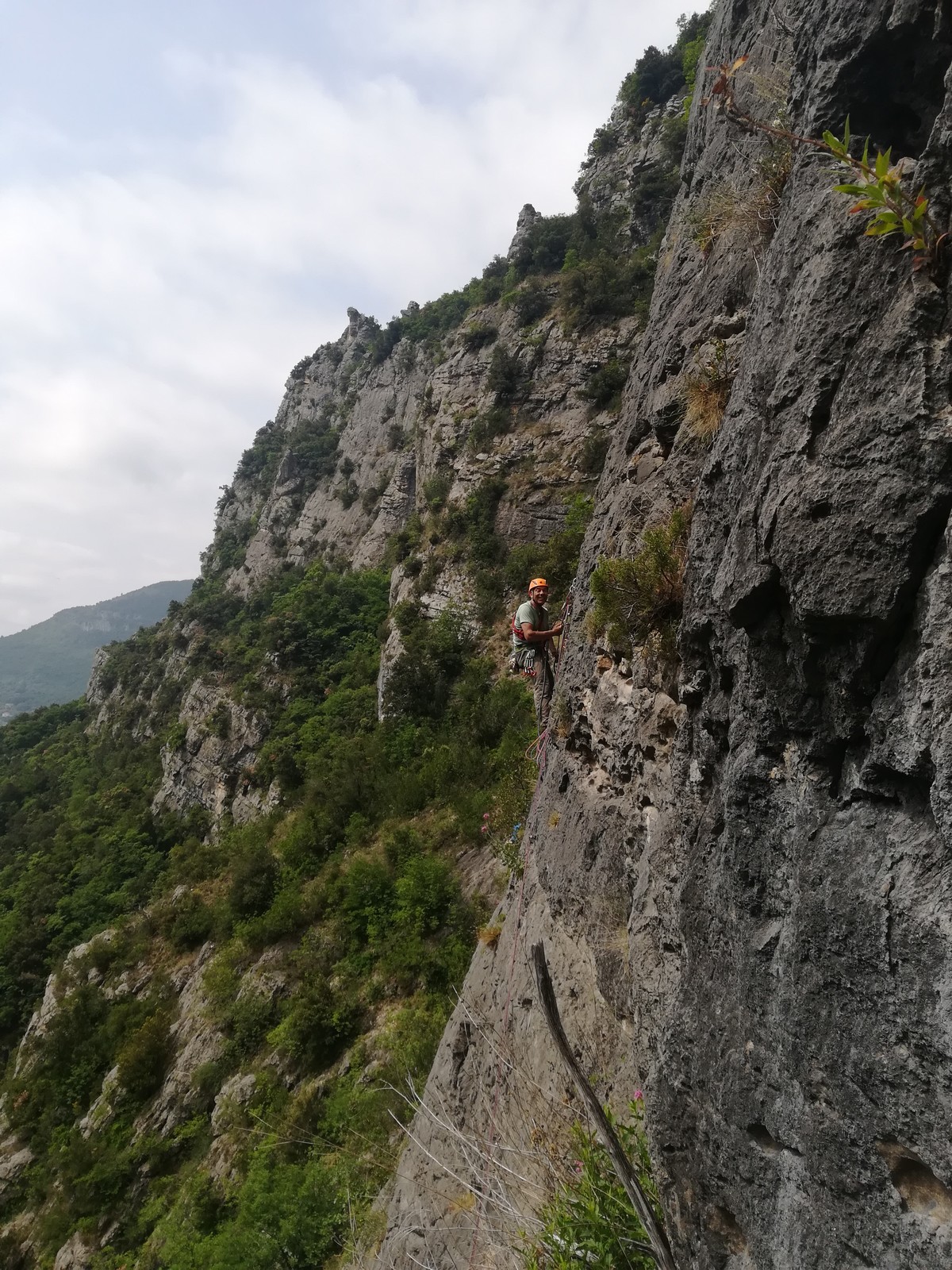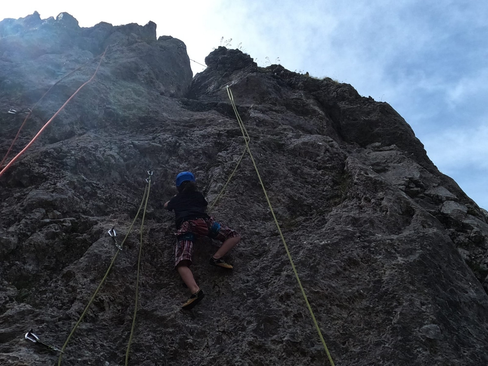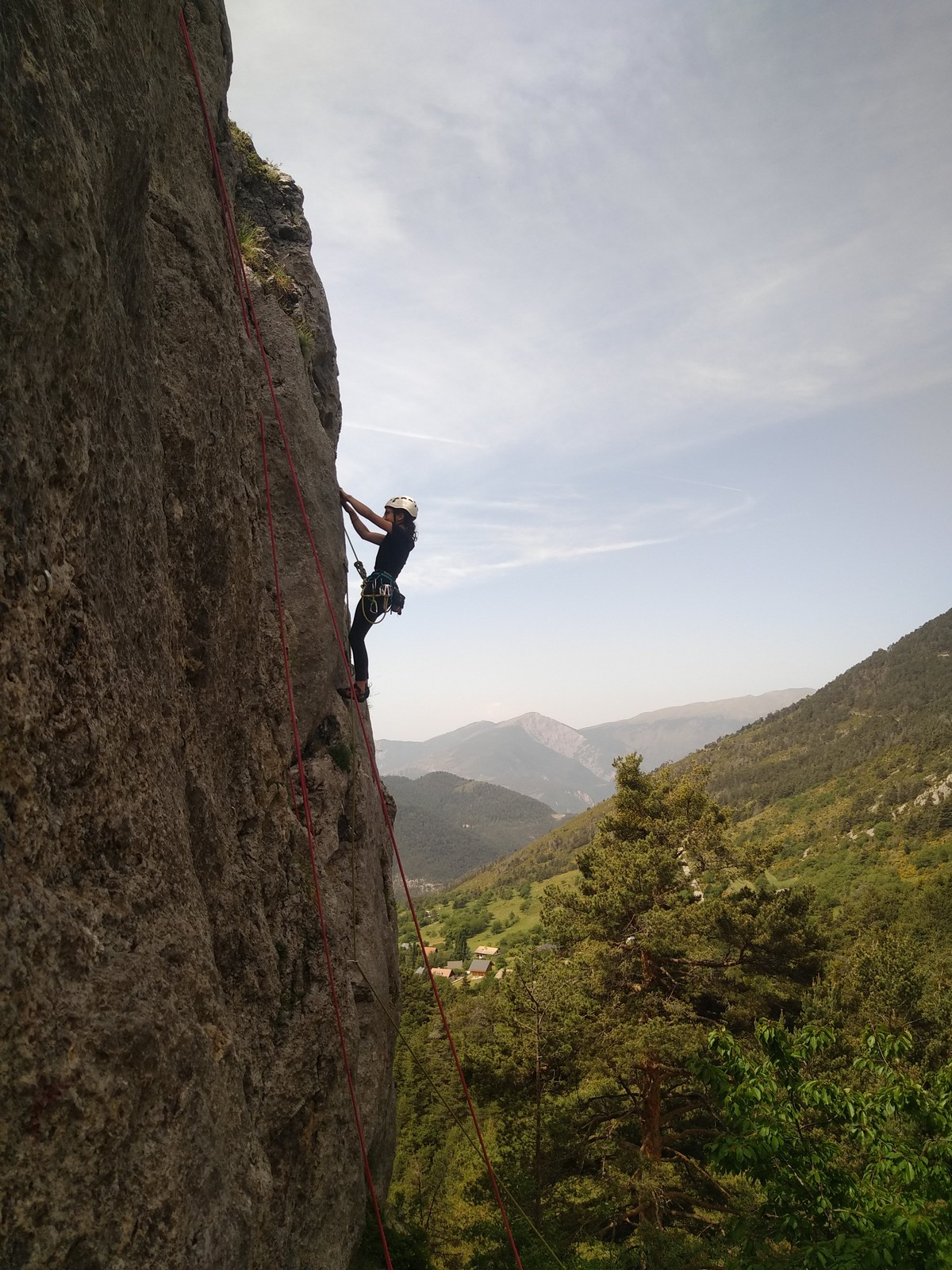Dès les premières longueurs, on se rend vite compte de 3 choses : c’est dalleux, les cotations piquent un peu (on n’a pas trop l’habitude du style), mais c’est très bien équipé (espacement rapproché quand c’est dur, relais chaînés…)