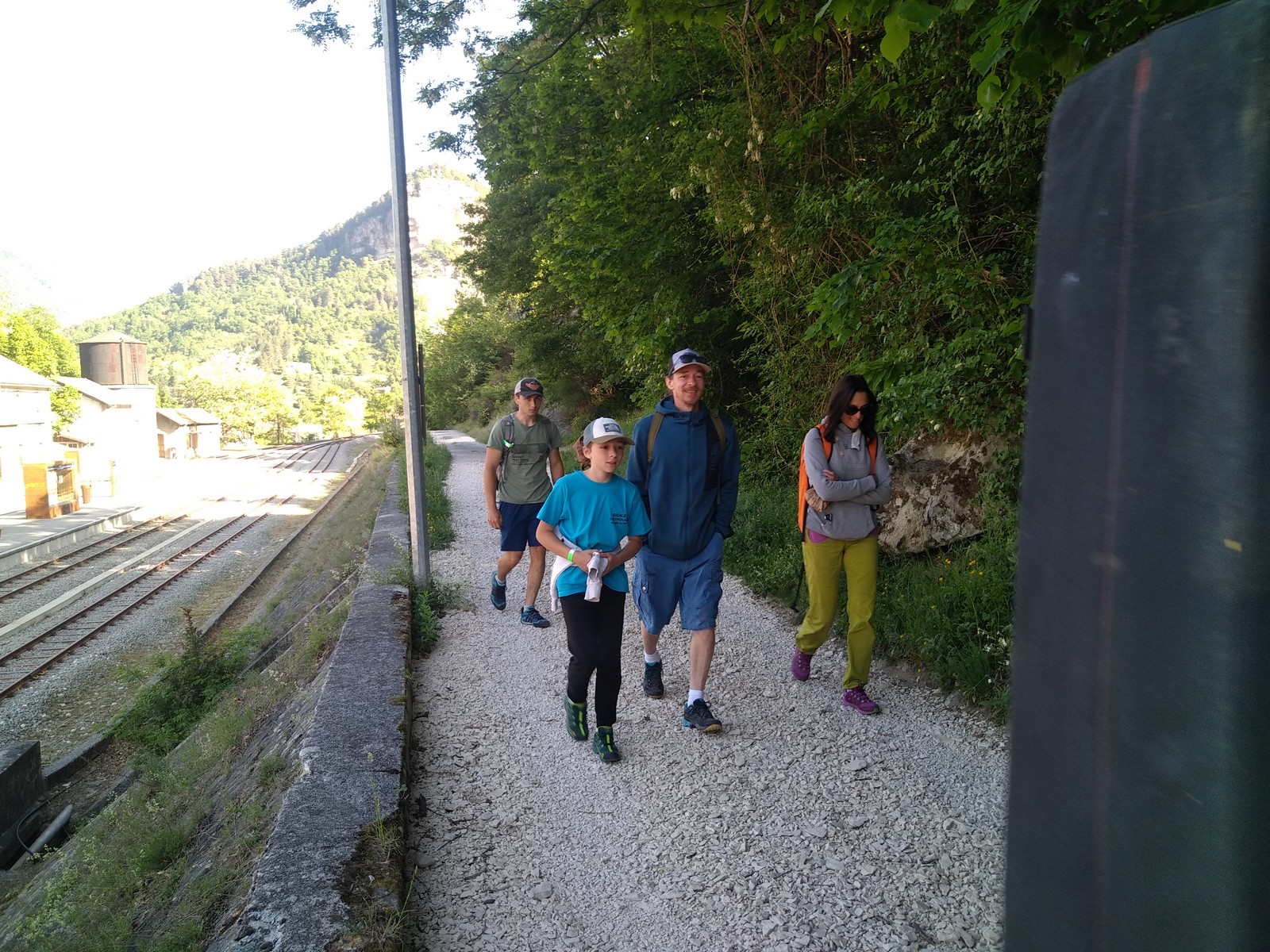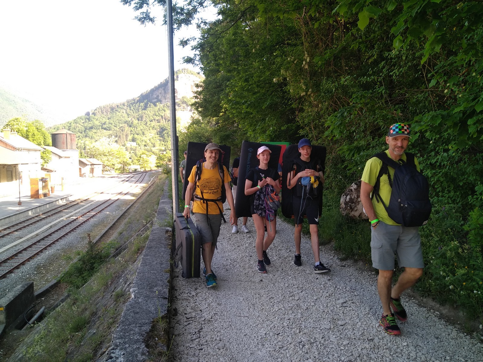 Après un réveil plus ou moins douloureux, nous arrivons à tenir l’horaire prévu et nous voilà à 8h30 au pied des voies. Nous sommes les premiers et nous nous rendons compte que nous avons bien fait car rapidement, d’autres groupes nous rejoignent qui devront s’organiser derrière nous. Le ciel est couvert et ce n’est pas pour nous déplaire.