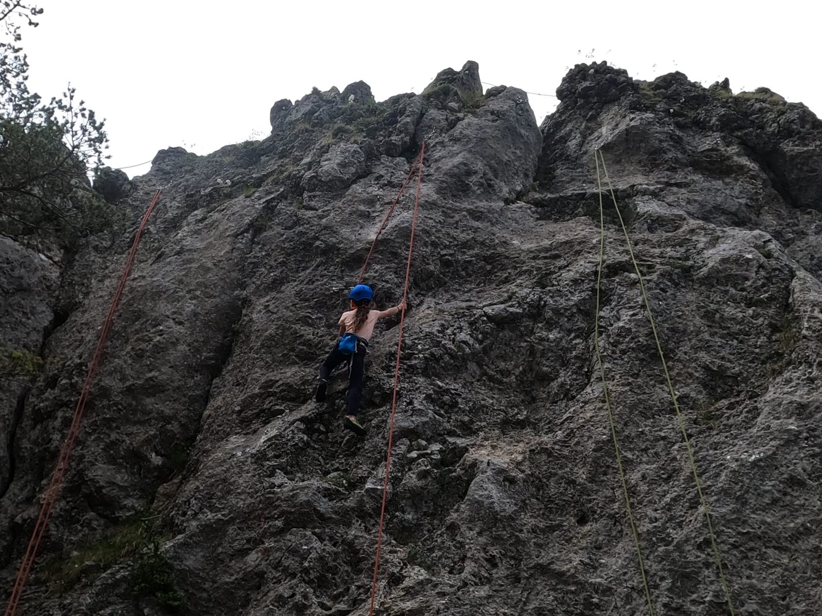 En ce dernier jour, nous sommes presque les premiers devant les voies. Seule la voie de « la grotte » est prise et nous demande une petite réorganisation.