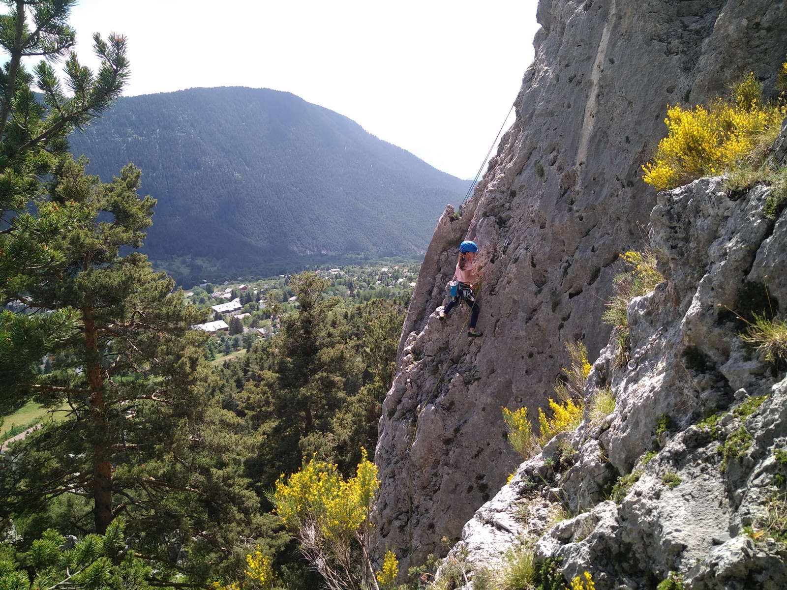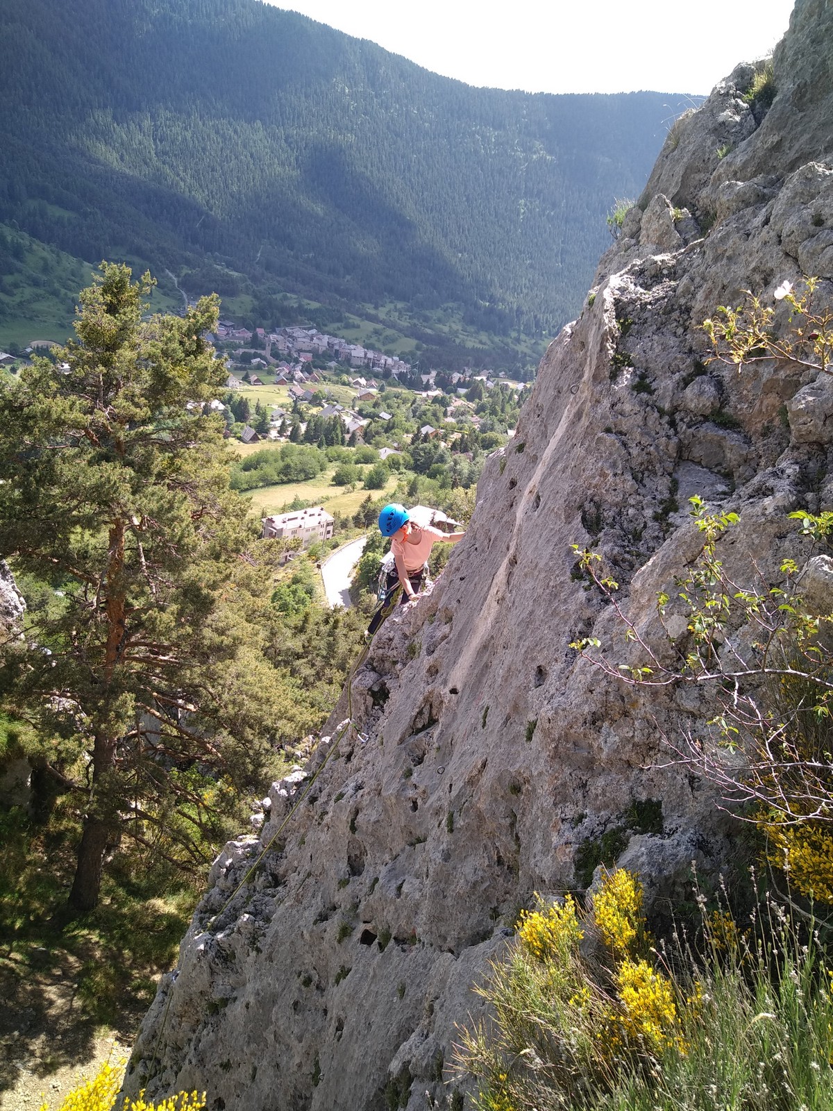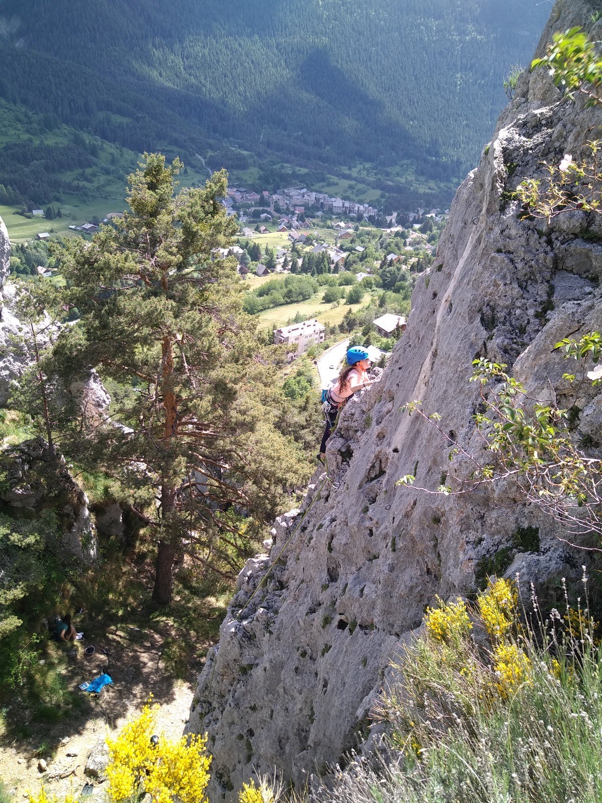 Après un repos plus ou moins long, on décide d’aller explorer un autre secteur pour la suite de la journée. On se rend donc au pied de l’Ascle, un beau pilier de 100m où quelques longueurs nous attendent. Nous patientons jusqu’à environ 15h pour laisser passer les grosses chaleur et prendre un peu d’ombre avant de commencer à grimper.