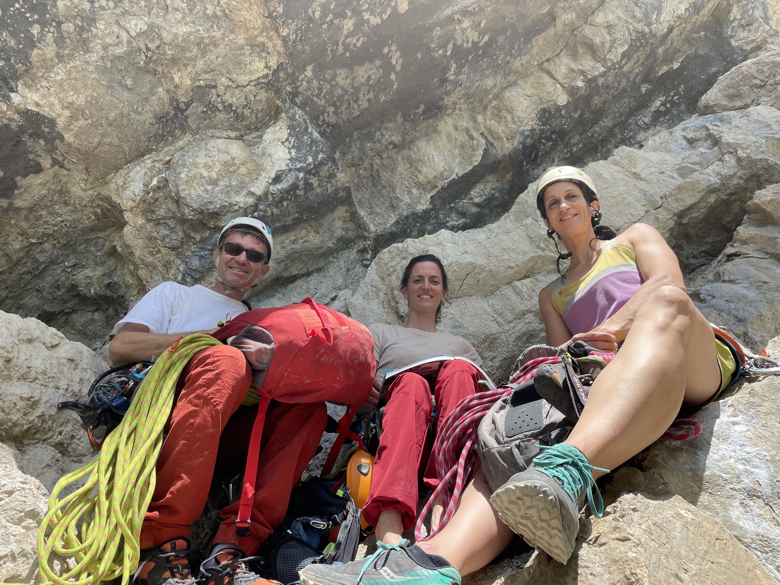 Ce fut un très beau séjour avec un groupe vraiment sympa et une très bonne ambiance. Les difficultés étaient là, surtout le 3ème jour, mais ont été surmontées avec brio. Nous avons pu grimper de très belles voies et l’équipement au top a bien aidé à rester détendu. Seul petit bémol, le camping très moyen. Mais bon, on ne peut pas tout avoir !