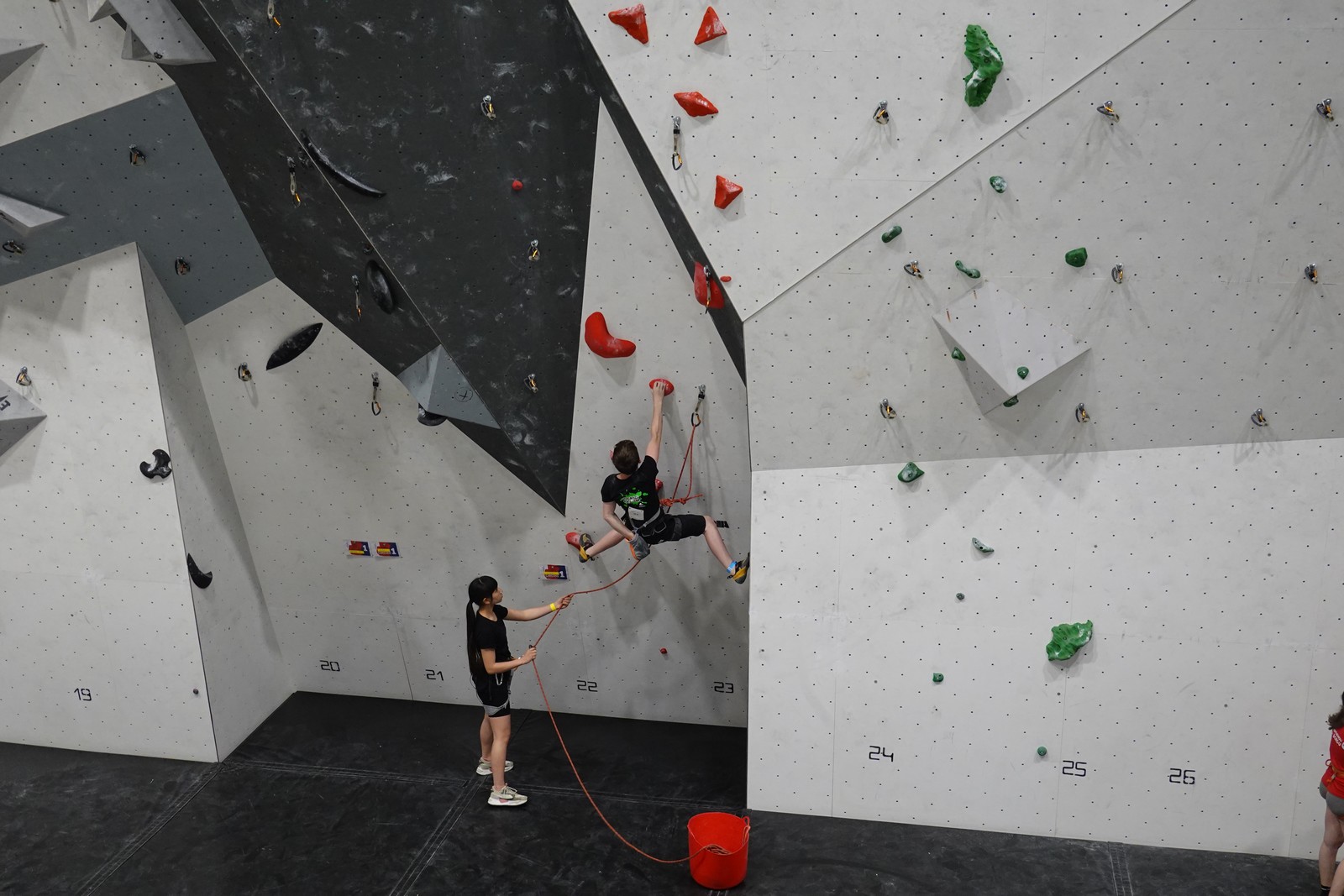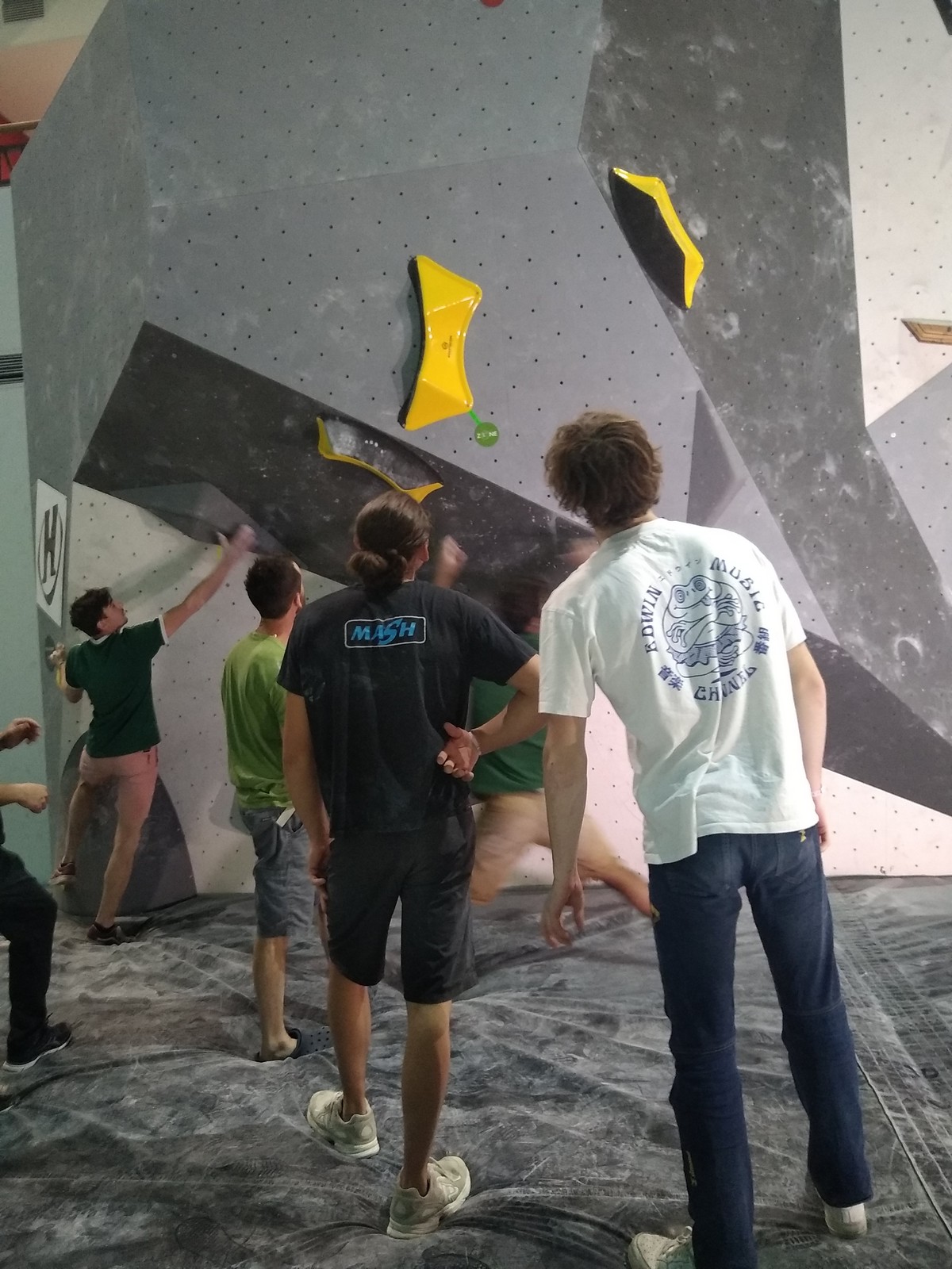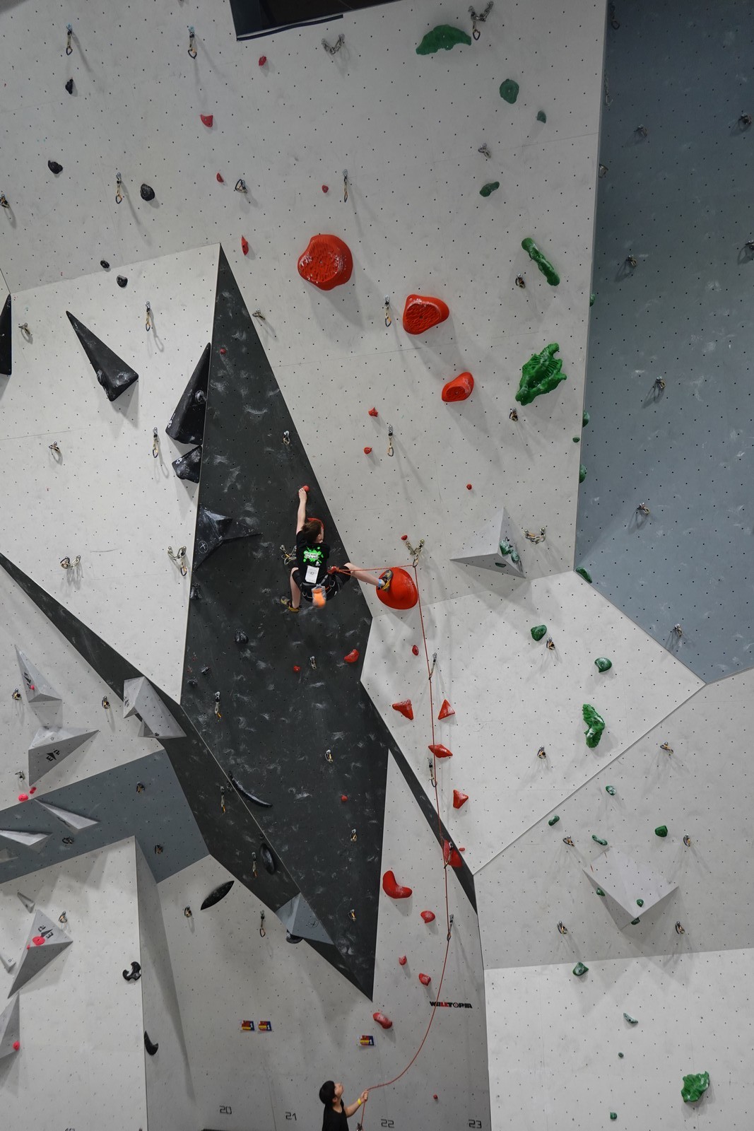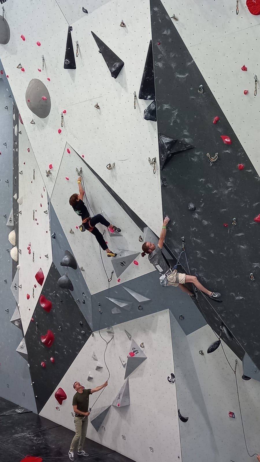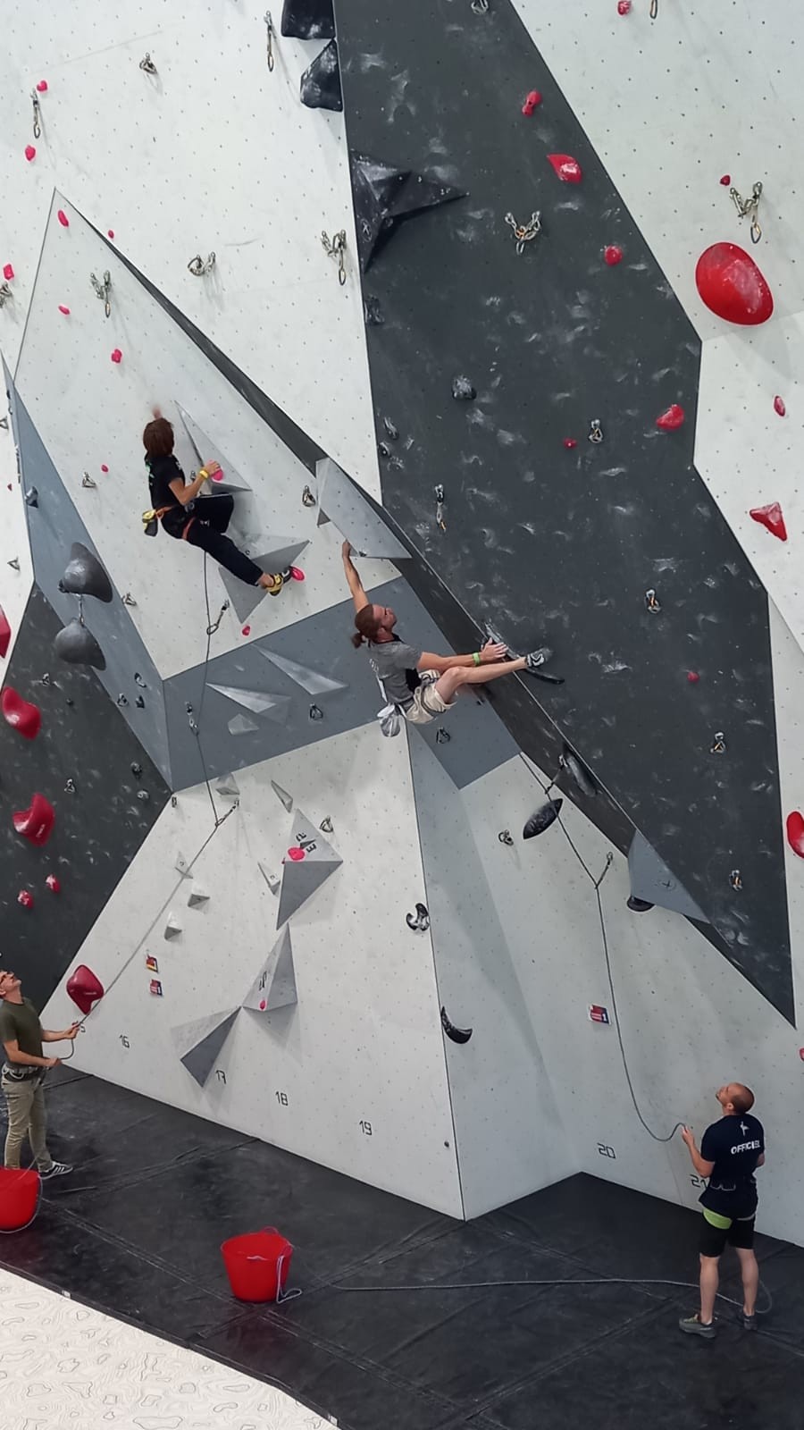 Le scénario est à peu près identique pour Mathis D. en U18. Il parvient sans encombre au sommet de ses 2 premières voies mais tombe un peu prématurément dans sa dernière voie de qualif. Lui aussi fait partie des derniers concurrents qualifiés, mais l’essentiel est que ça passe, et il pourra défendre ses chances lors de la finale.