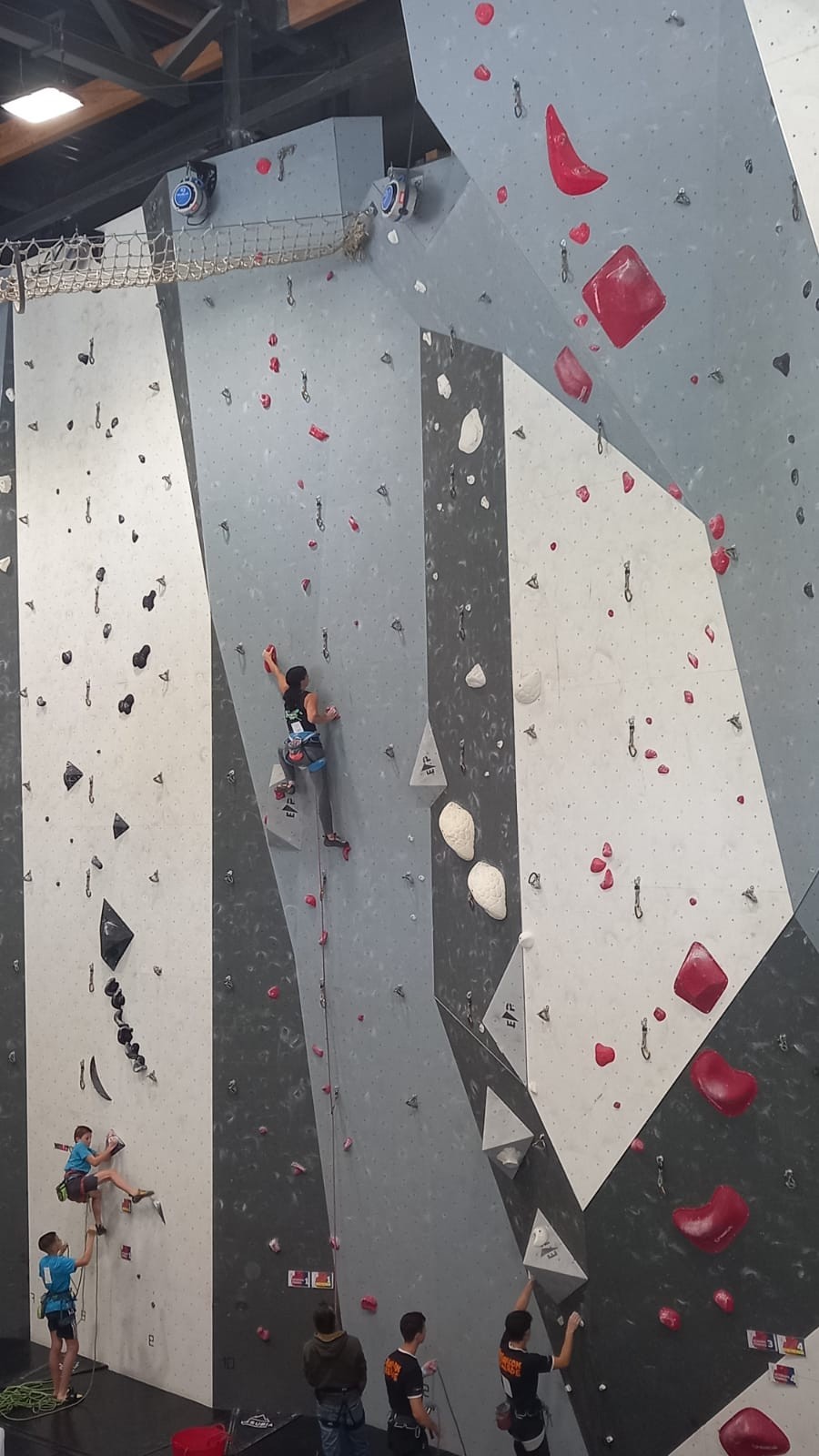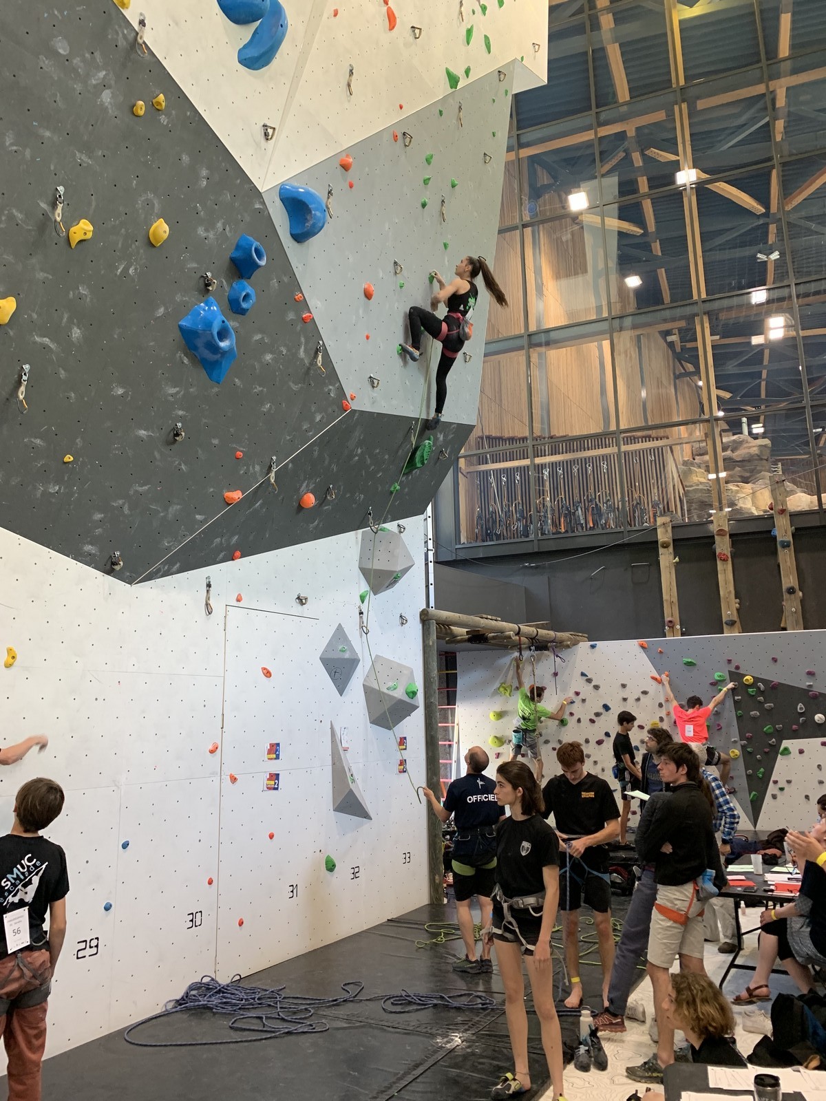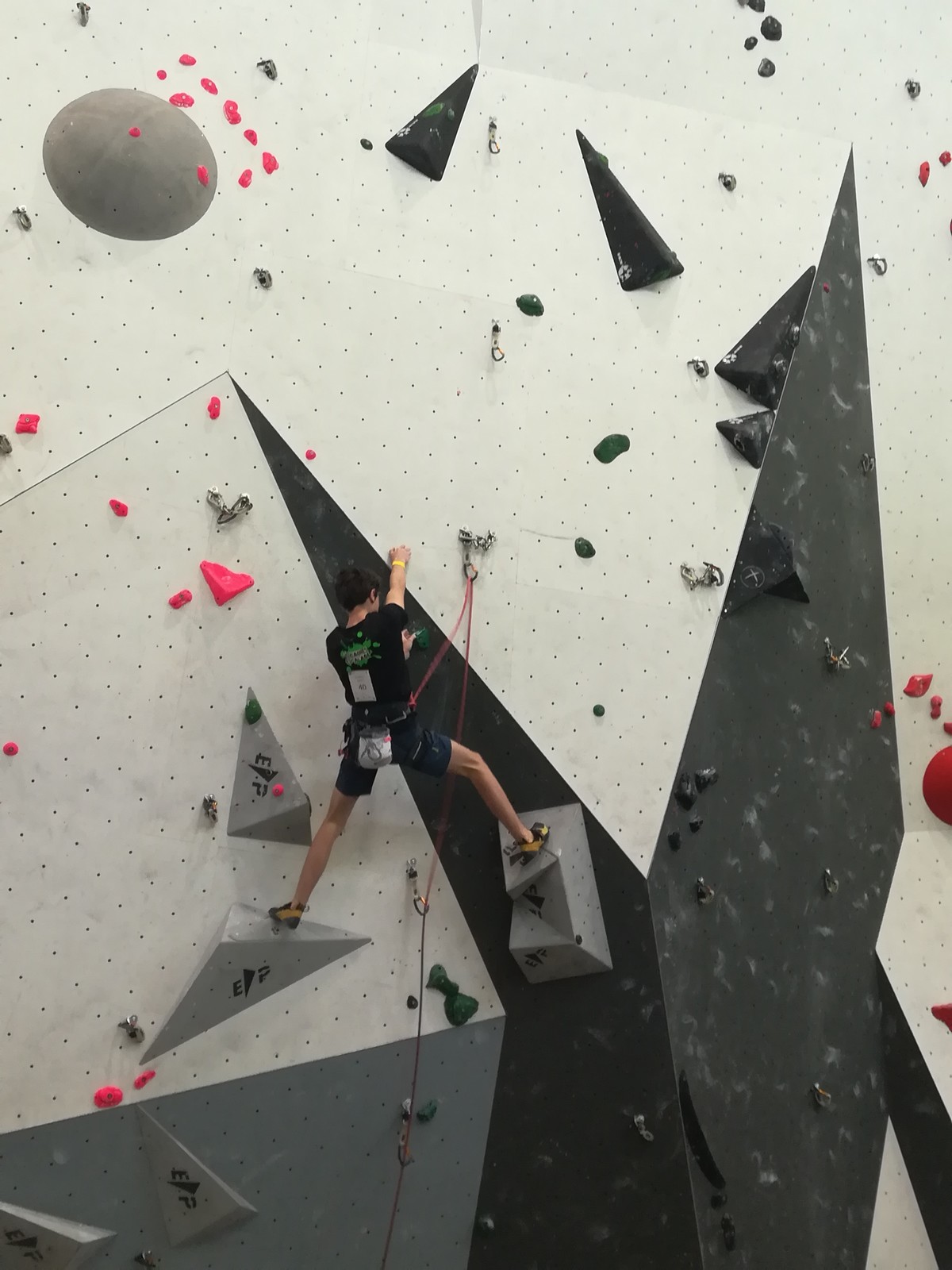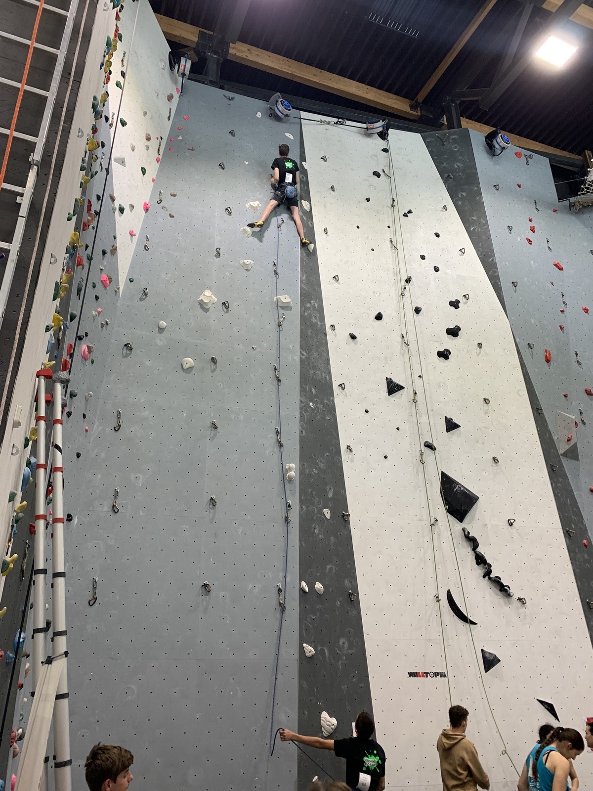 Lucas lui n’est pas venu pour jouer les figurants, et il espère bien confirmer sa bonne forme du moment. Il tope sans problème ses 2 premières voies de qualif et avance bien dans sa voie 3. Il y a du lourd chez les U16 dans la région, et les places en finale sont chères ! Il arrive toutefois à faire partie des 4 derniers grimpeurs ex-aequo qualifiés pour la finale.