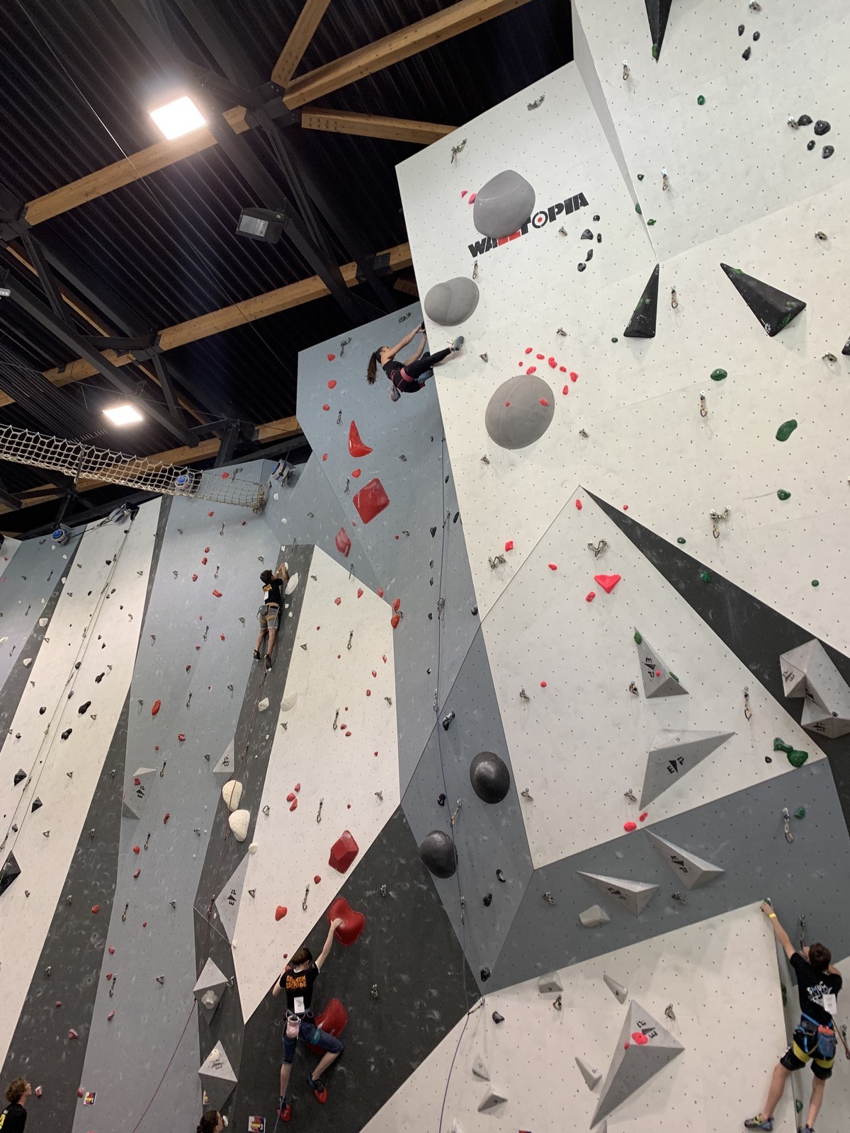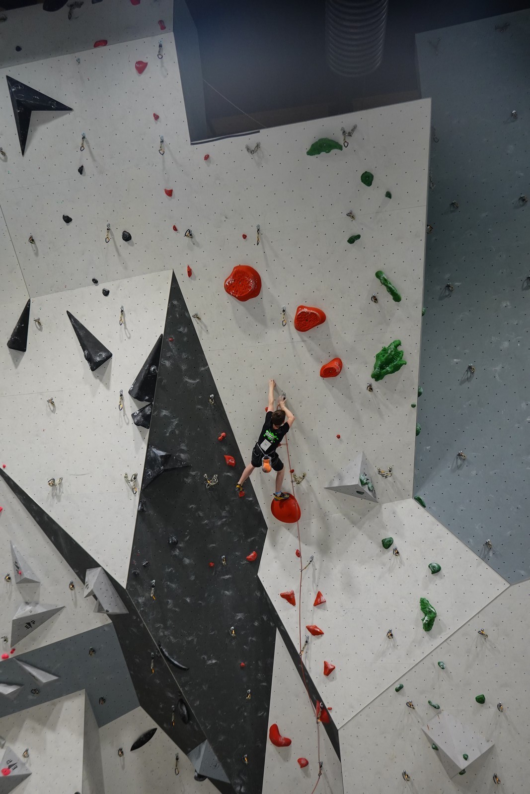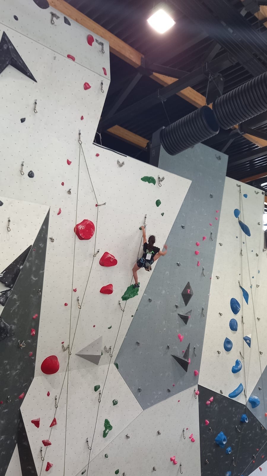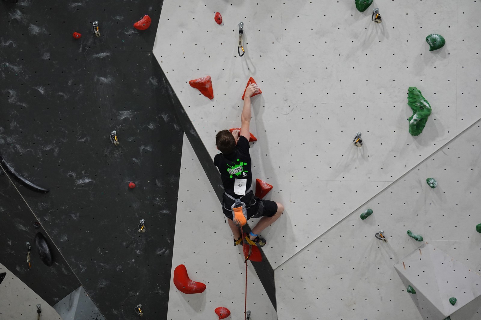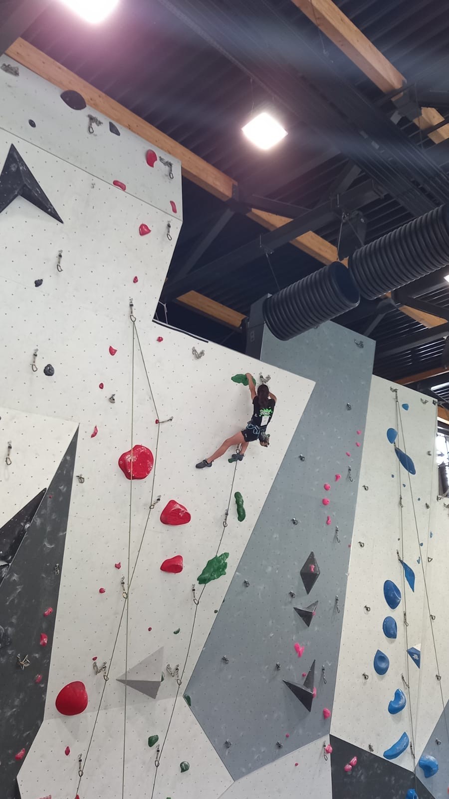 Lucas lui n’est pas venu pour jouer les figurants, et il espère bien confirmer sa bonne forme du moment. Il tope sans problème ses 2 premières voies de qualif et avance bien dans sa voie 3. Il y a du lourd chez les U16 dans la région, et les places en finale sont chères ! Il arrive toutefois à faire partie des 4 derniers grimpeurs ex-aequo qualifiés pour la finale.
