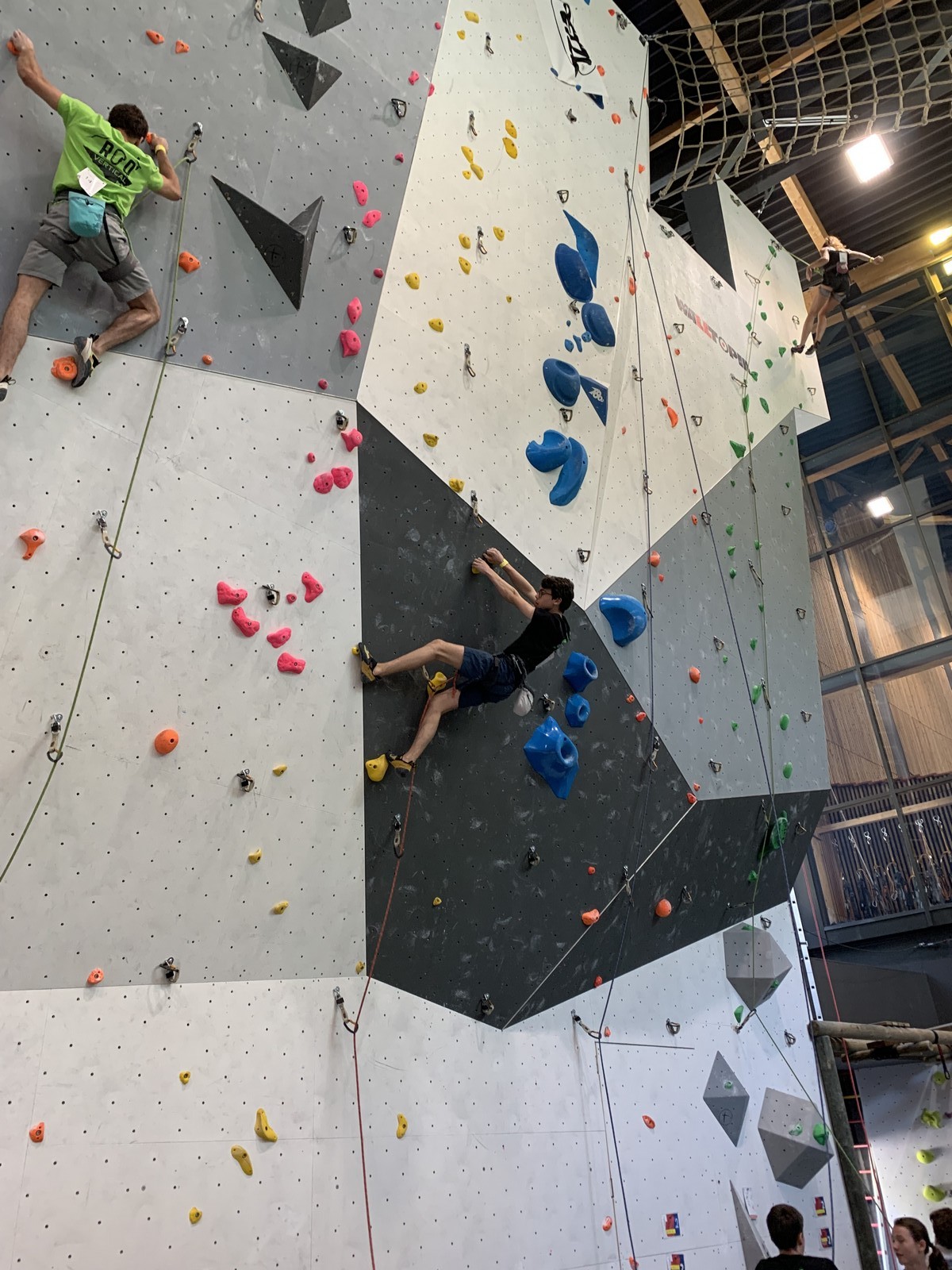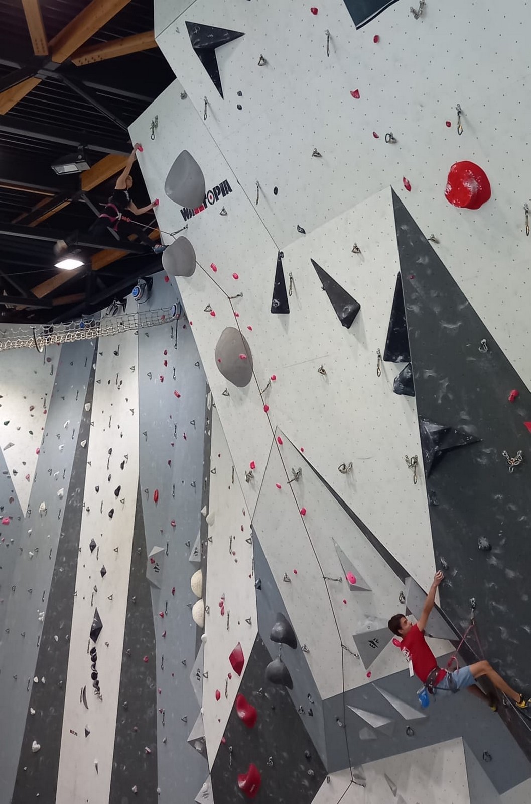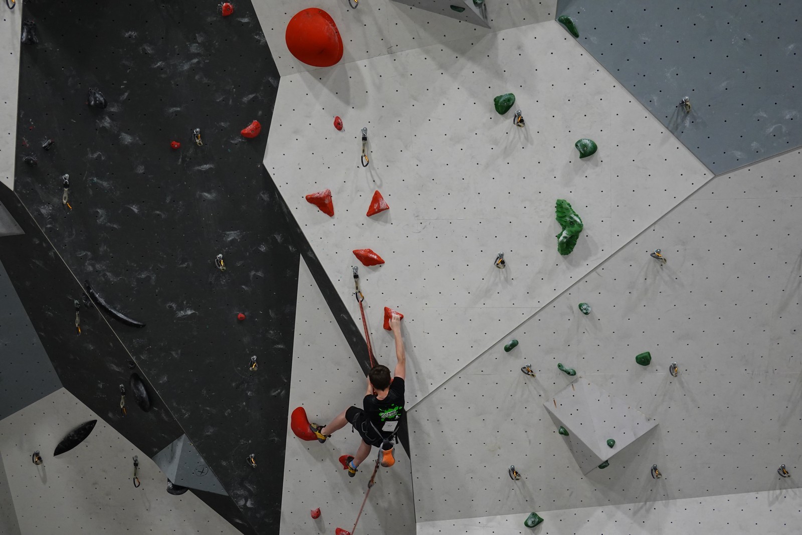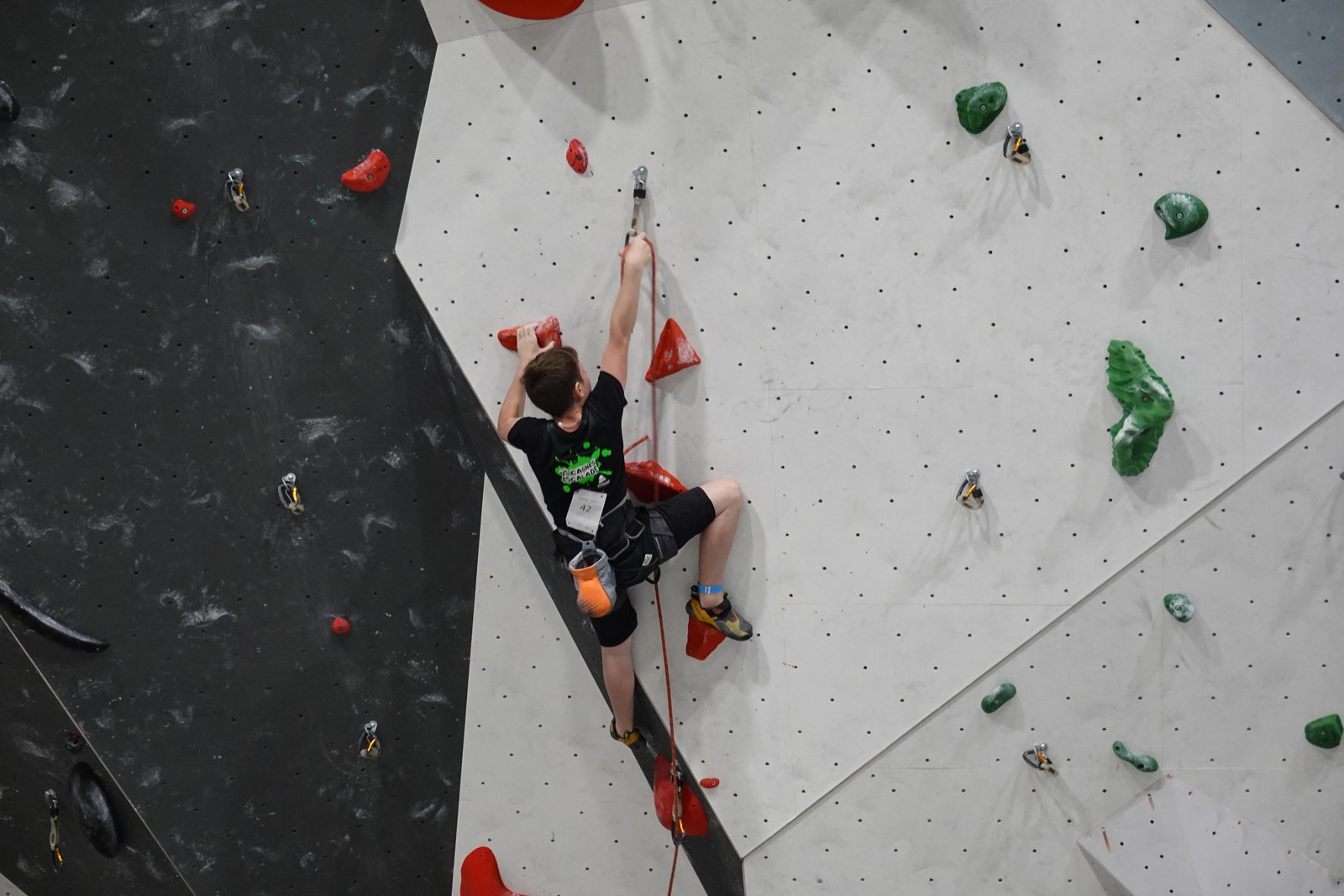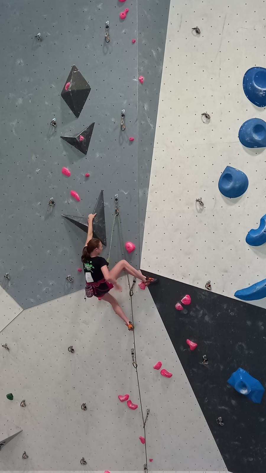 Lucas lui n’est pas venu pour jouer les figurants, et il espère bien confirmer sa bonne forme du moment. Il tope sans problème ses 2 premières voies de qualif et avance bien dans sa voie 3. Il y a du lourd chez les U16 dans la région, et les places en finale sont chères ! Il arrive toutefois à faire partie des 4 derniers grimpeurs ex-aequo qualifiés pour la finale.