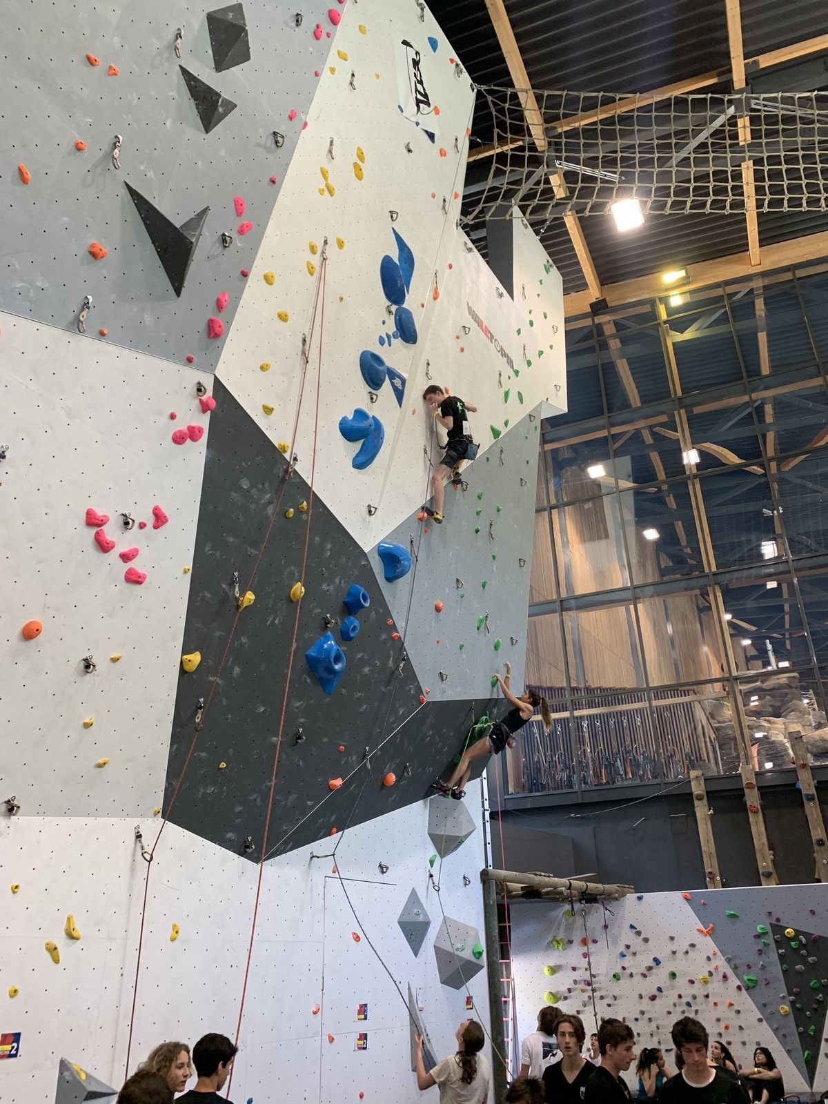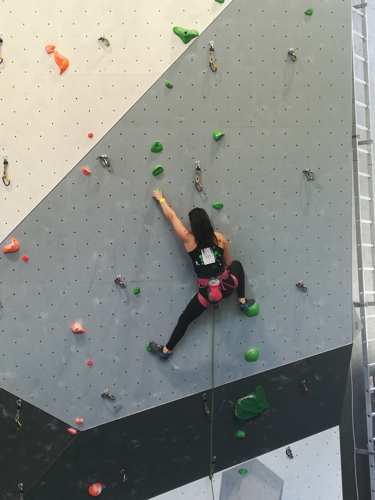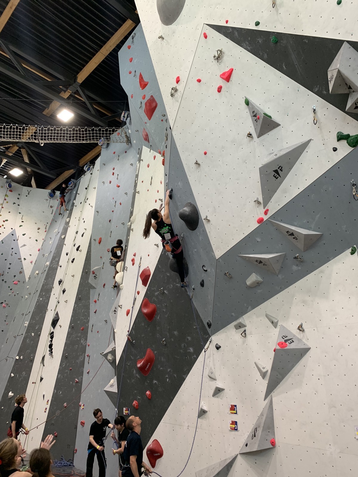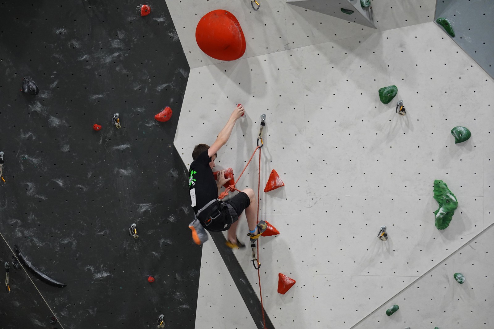 Lucas lui n’est pas venu pour jouer les figurants, et il espère bien confirmer sa bonne forme du moment. Il tope sans problème ses 2 premières voies de qualif et avance bien dans sa voie 3. Il y a du lourd chez les U16 dans la région, et les places en finale sont chères ! Il arrive toutefois à faire partie des 4 derniers grimpeurs ex-aequo qualifiés pour la finale.