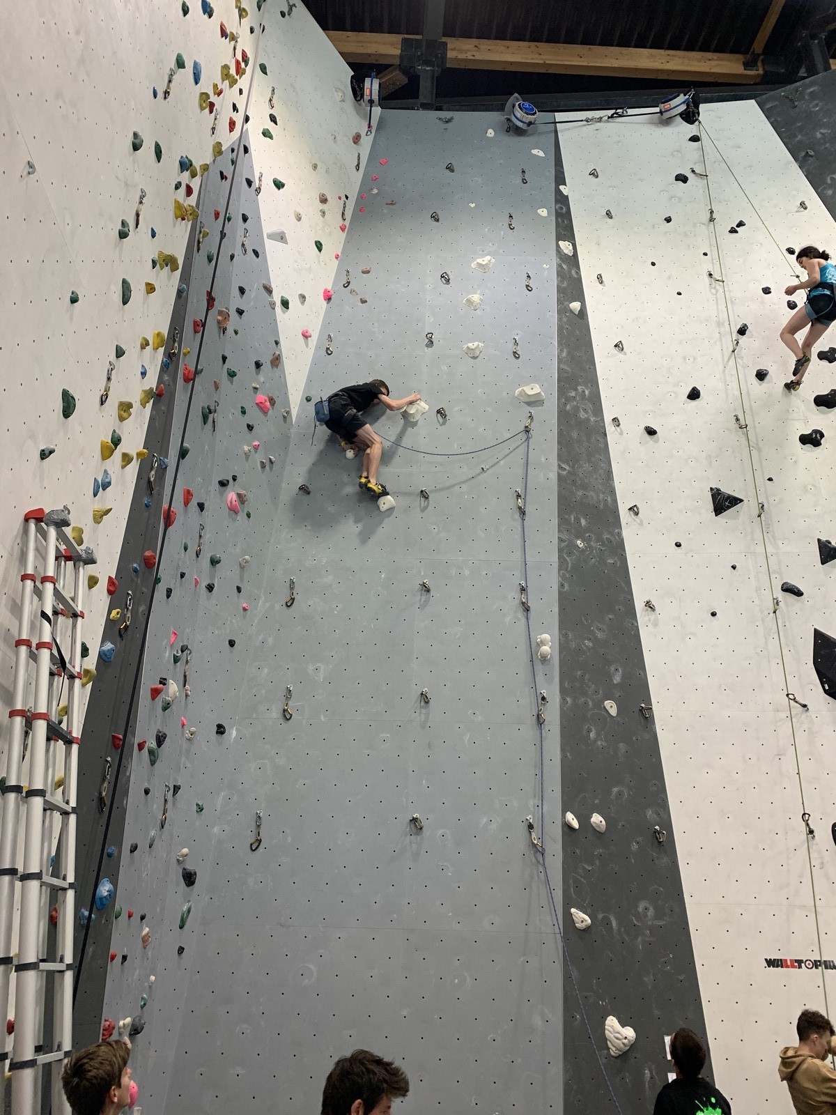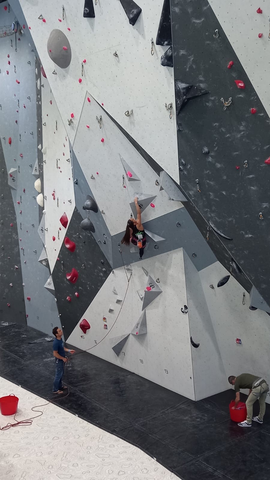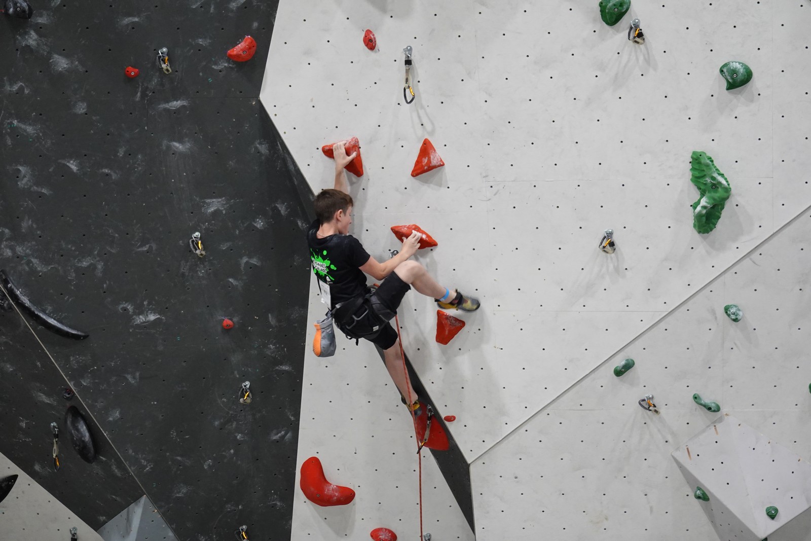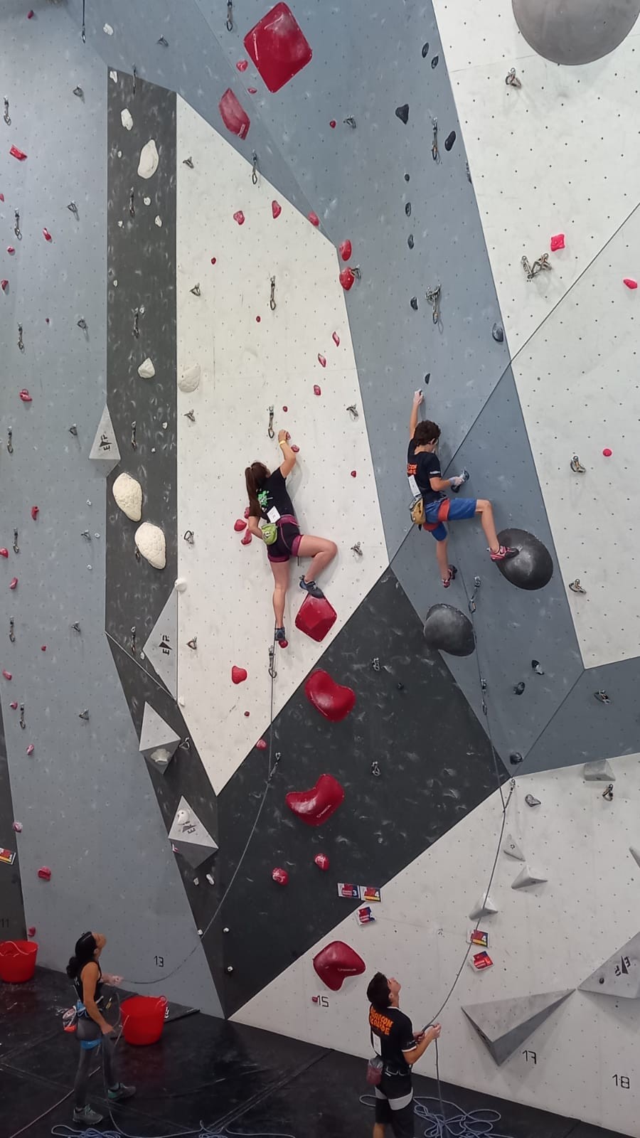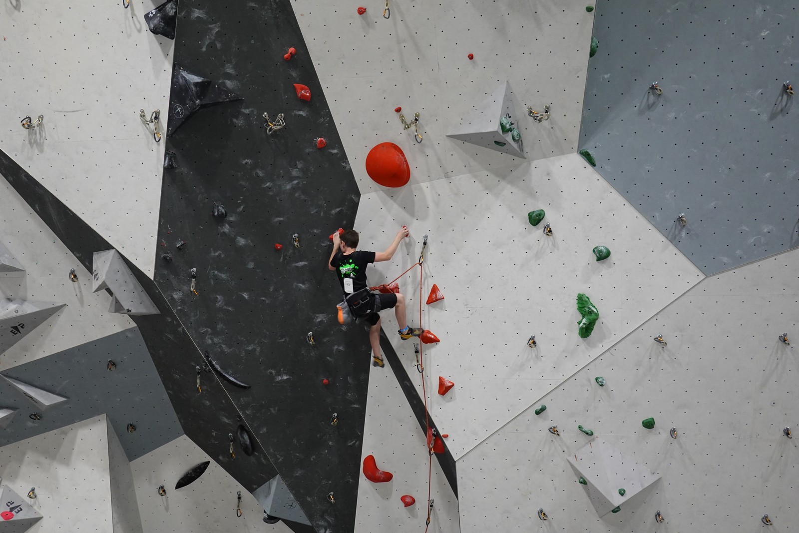 Lucas lui n’est pas venu pour jouer les figurants, et il espère bien confirmer sa bonne forme du moment. Il tope sans problème ses 2 premières voies de qualif et avance bien dans sa voie 3. Il y a du lourd chez les U16 dans la région, et les places en finale sont chères ! Il arrive toutefois à faire partie des 4 derniers grimpeurs ex-aequo qualifiés pour la finale.