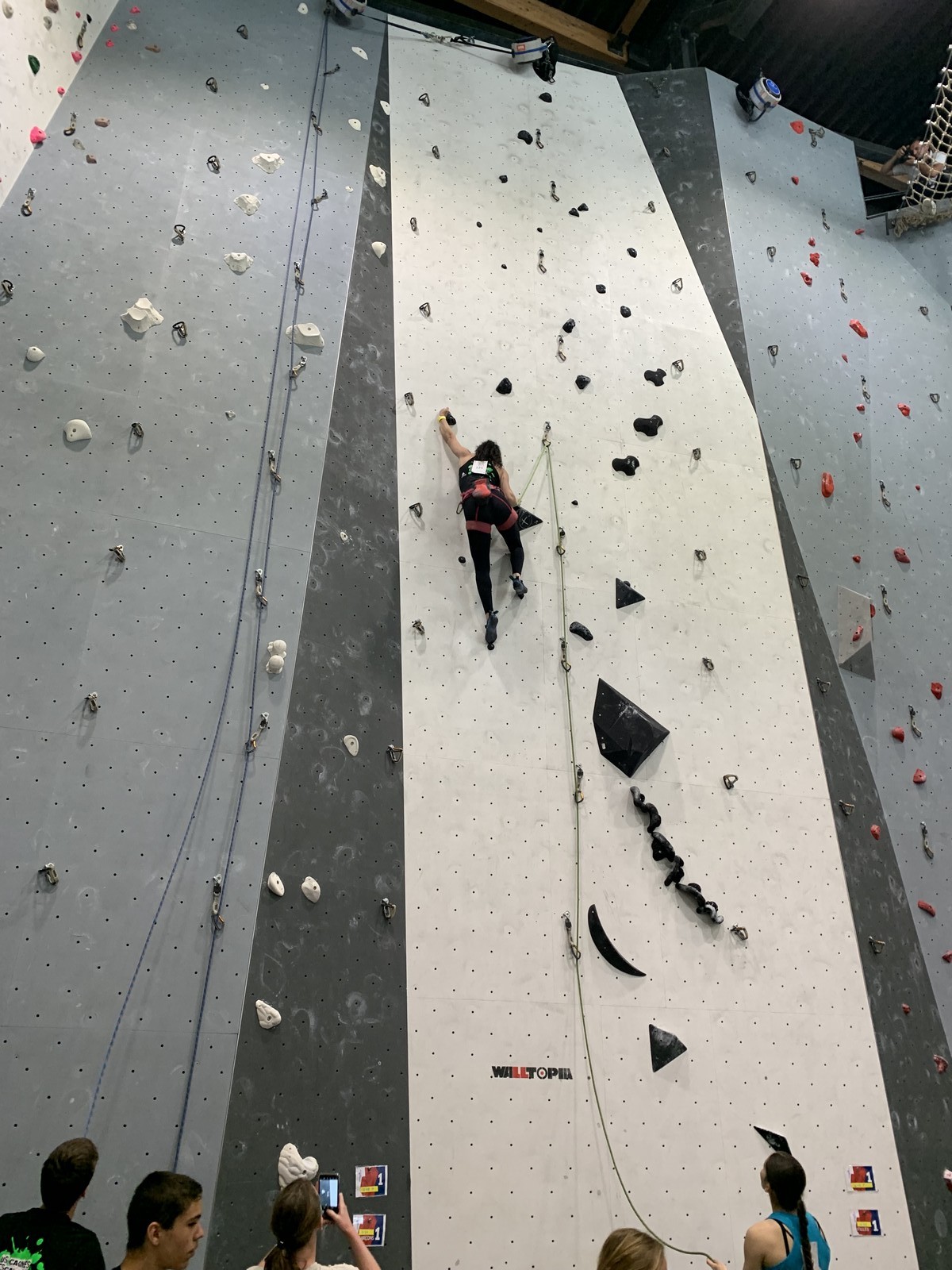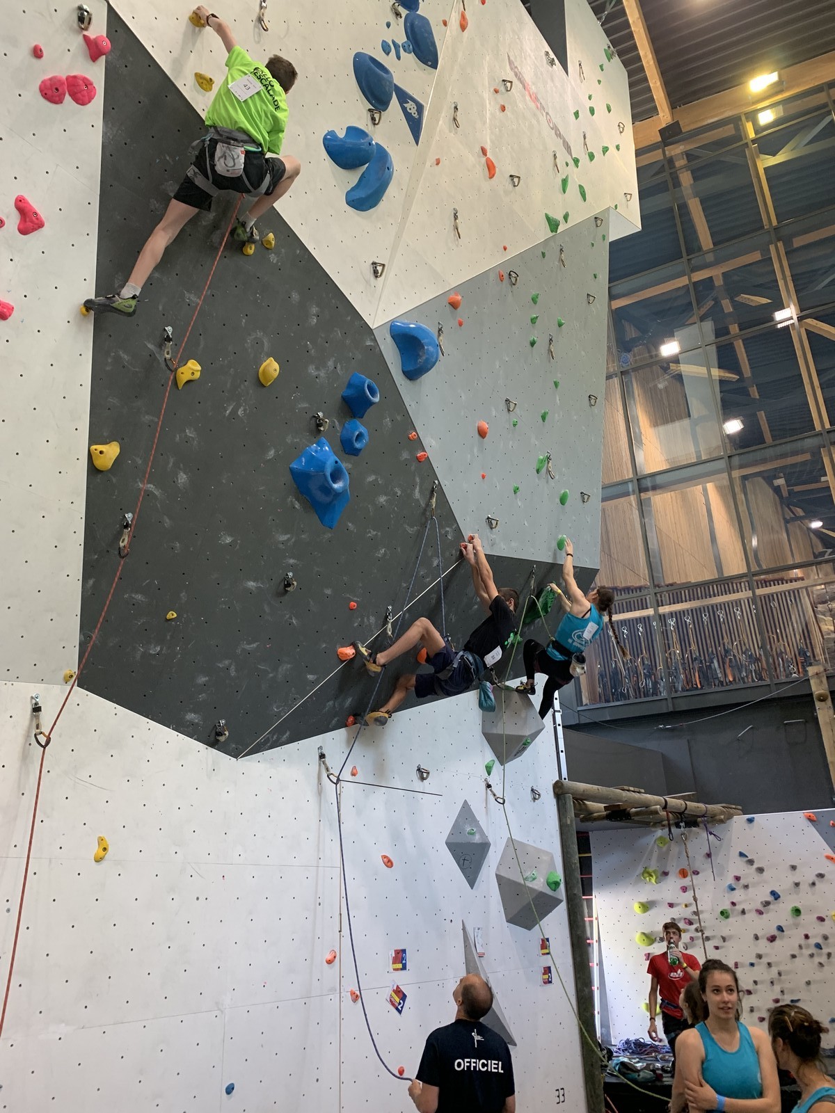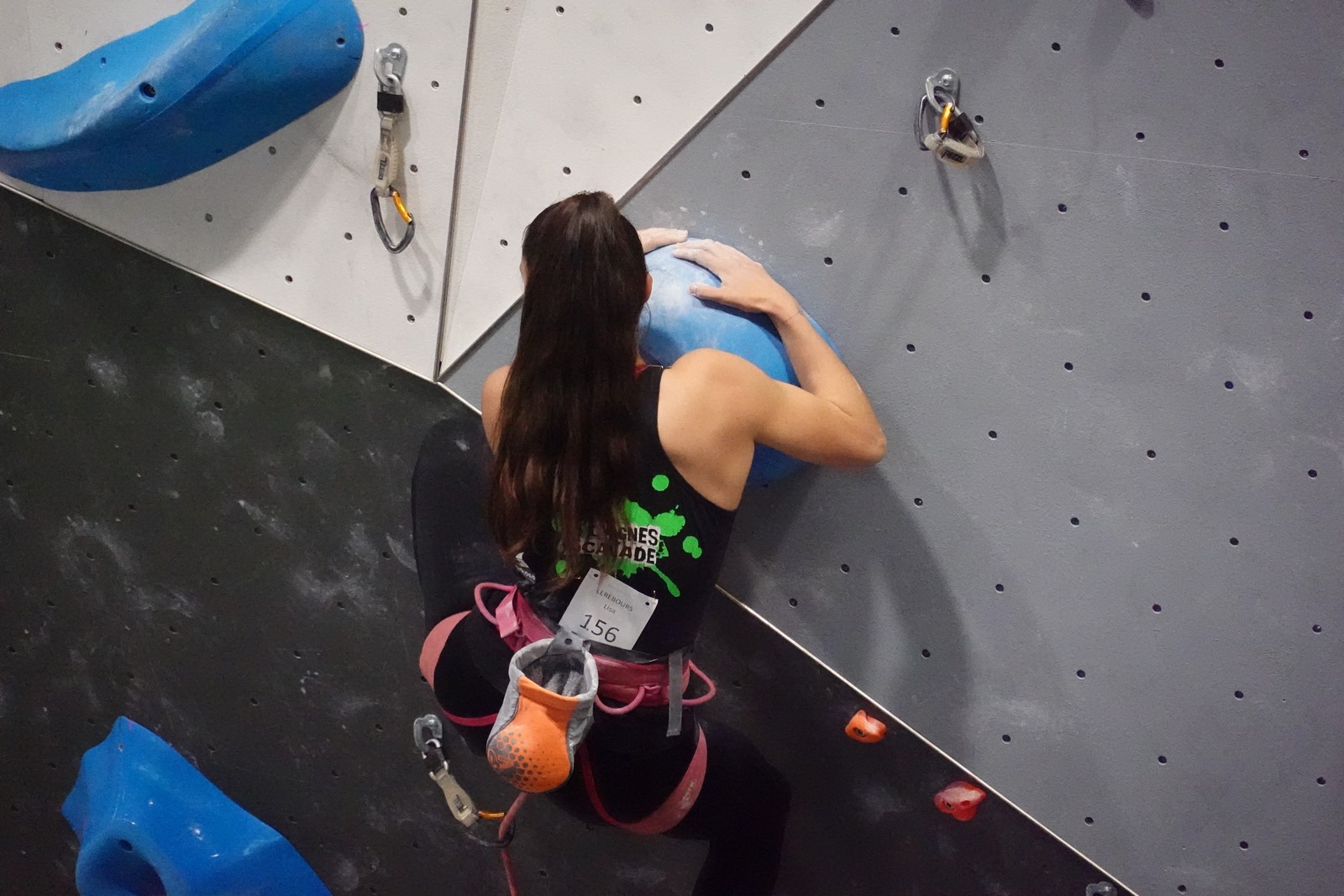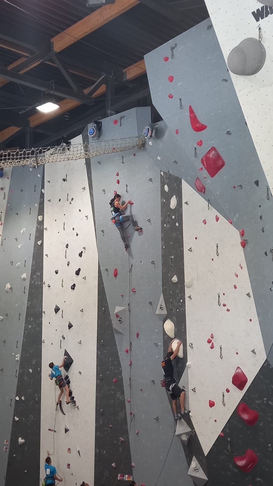 Chez les U18 filles la concurrence est moins rude, et les voies sont loin d’être extrêmes. Juliette remplit le contrat en topant ses 3 voies. Idem pour Lisa qui a les mêmes voies en U20.