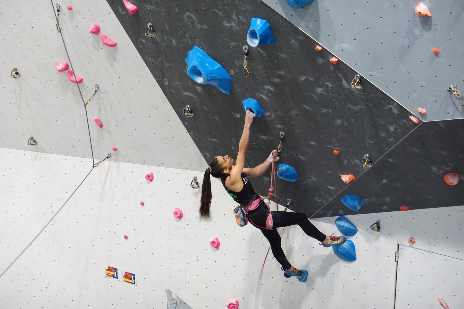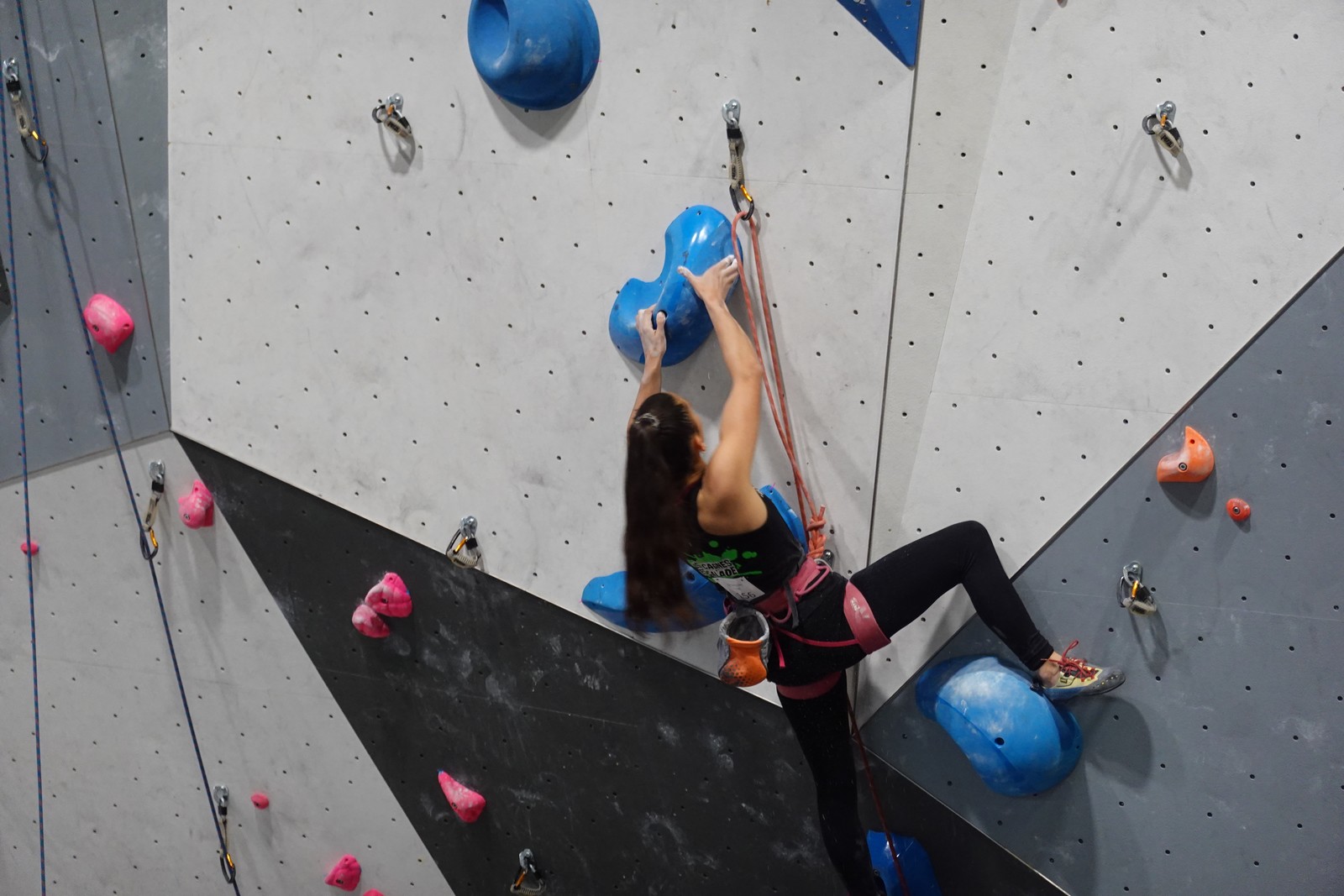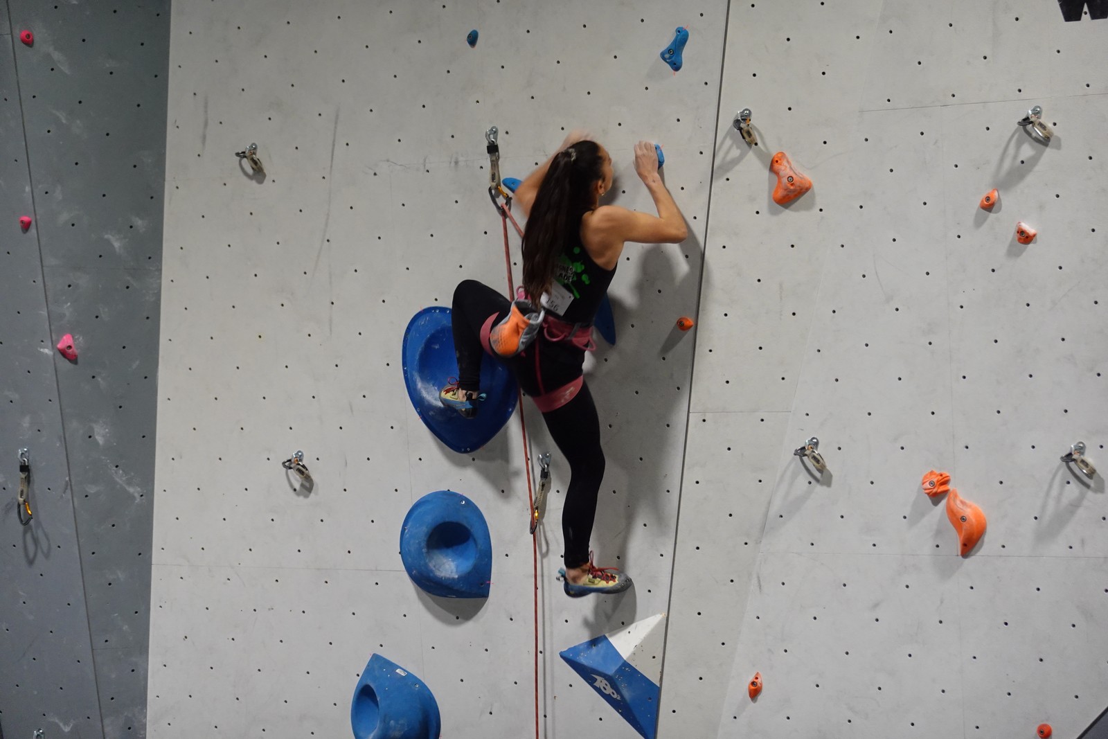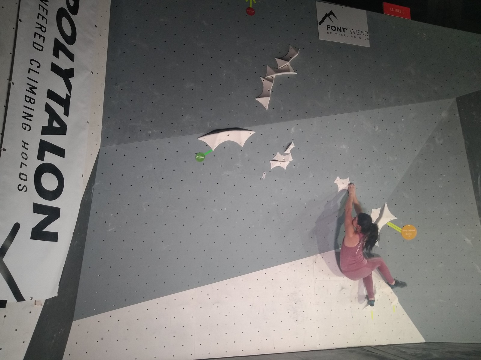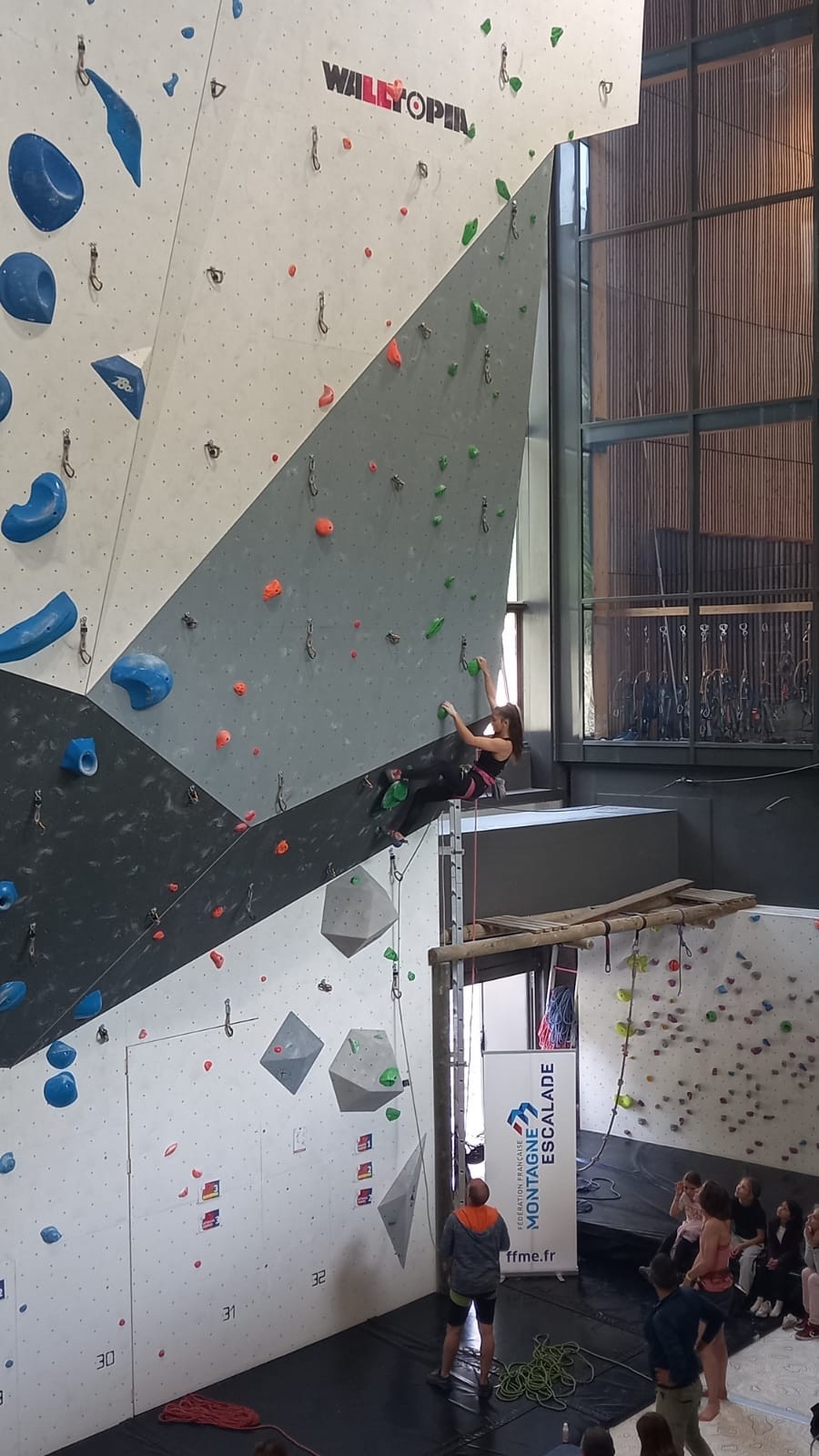 Chez les U18 filles la concurrence est moins rude, et les voies sont loin d’être extrêmes. Juliette remplit le contrat en topant ses 3 voies. Idem pour Lisa qui a les mêmes voies en U20.