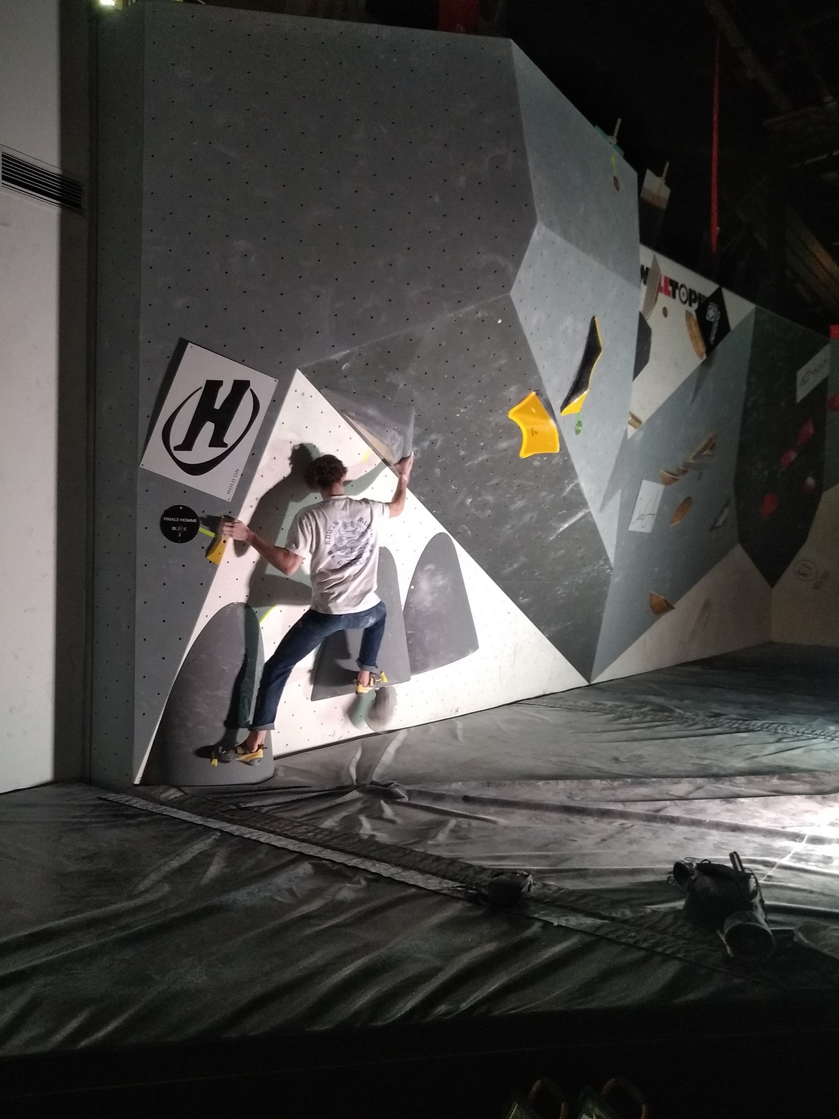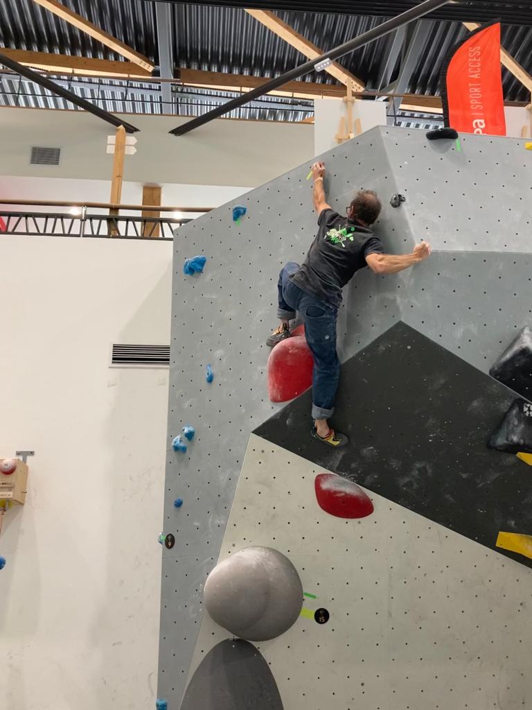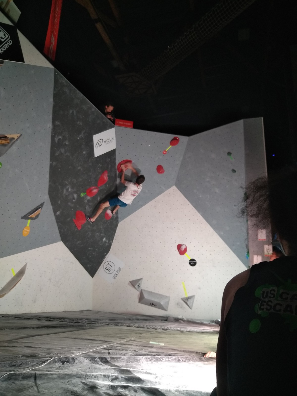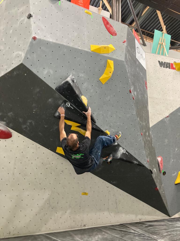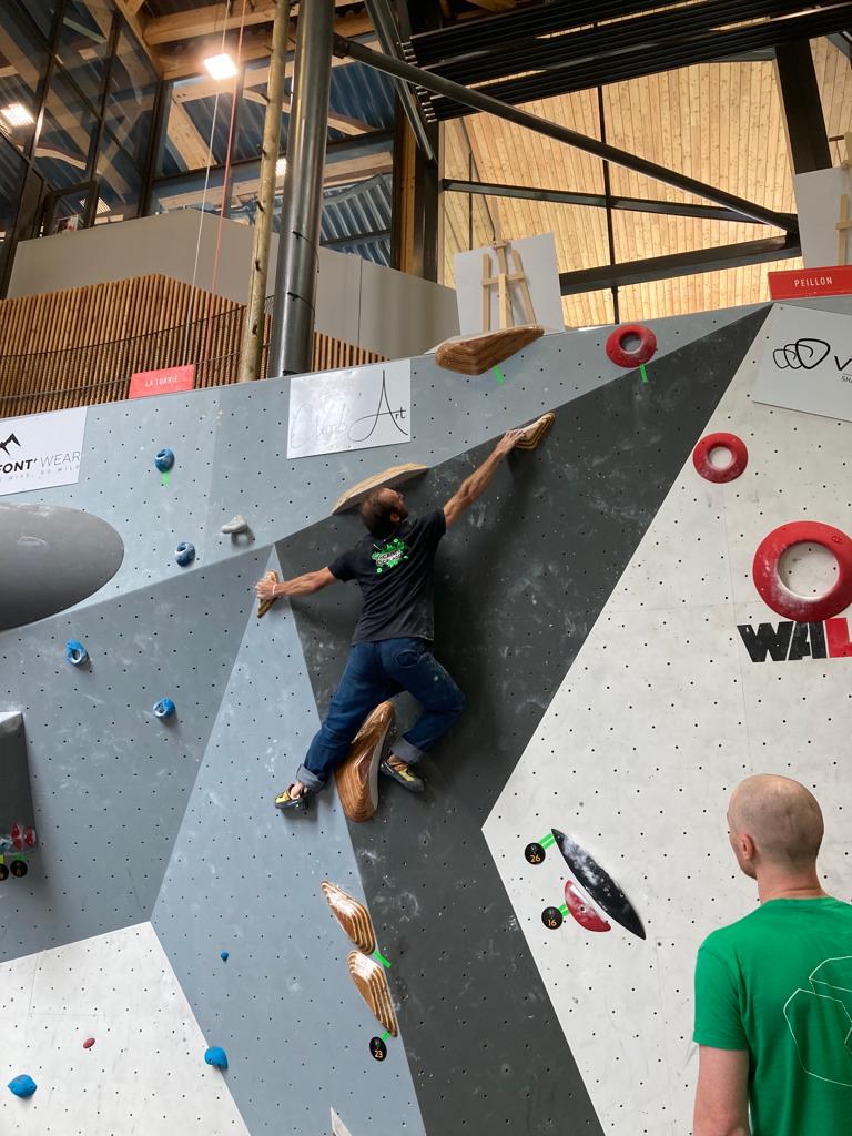 Sébastien lui a eu tout loisir de travailler la rési sur son temps libre ces dernières semaines, et malgré quelques accrocs à son programme d’entraînement et d’affûtage la veille de la compétition, il s’en sort plutôt très bien. Il a du mal à se lâcher sur ses 2 premières voies qu’il enchaîne, mais fait un très beau run dans la dernière voie, qui le propulsera à la 3ème place des qualifications, lui permettant d’accéder à la finale. En compétiteur né il optimise à fond le temps d’isolement et s’élance déterminé dans sa voie de finale bien rési. Il met un beau combat en enchaînant les mouvements jusqu’à un clipage en épaule qui aura raison de lui. Il conserve sa 3ème place, à pas grand chose de la 2ème, vive le régime tartiflette / picon bière !