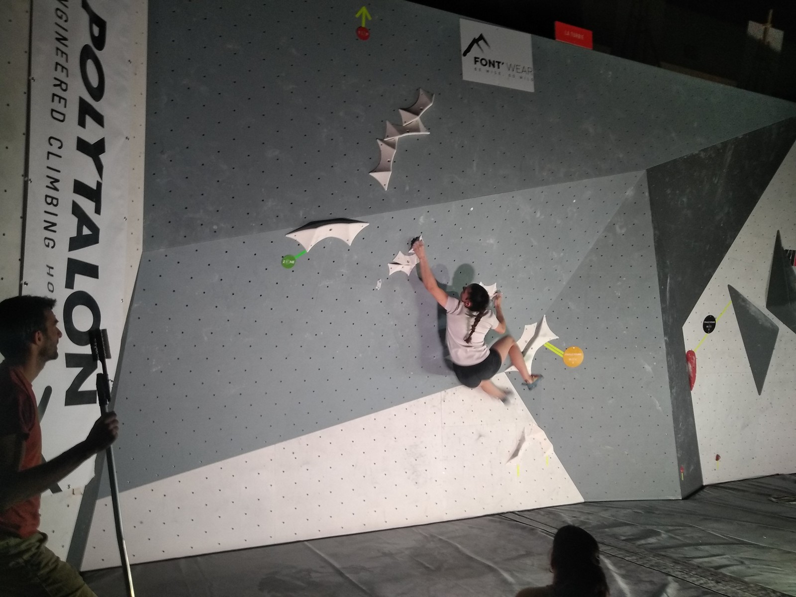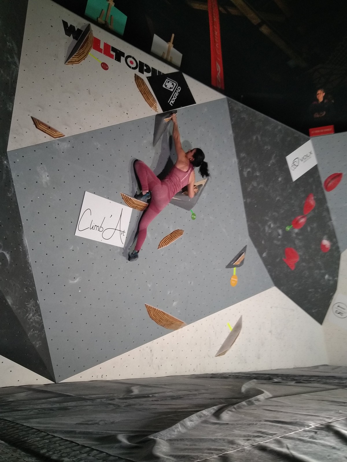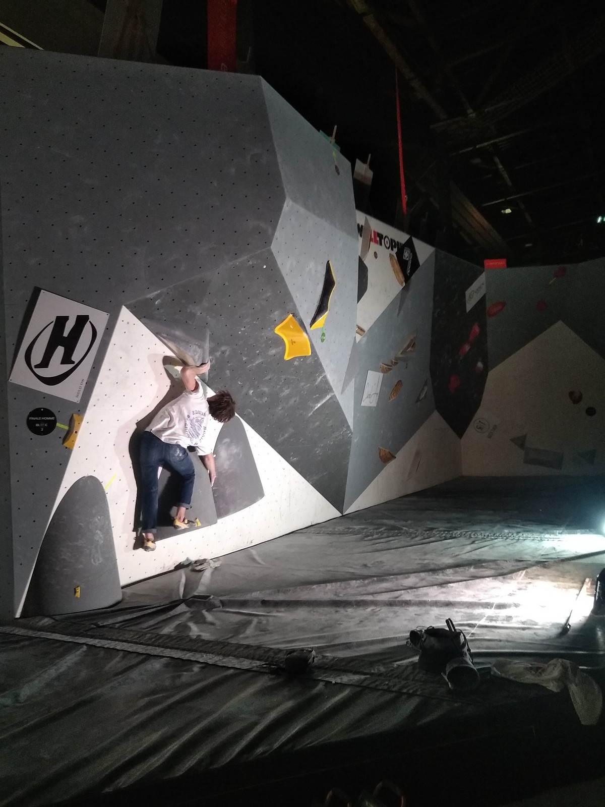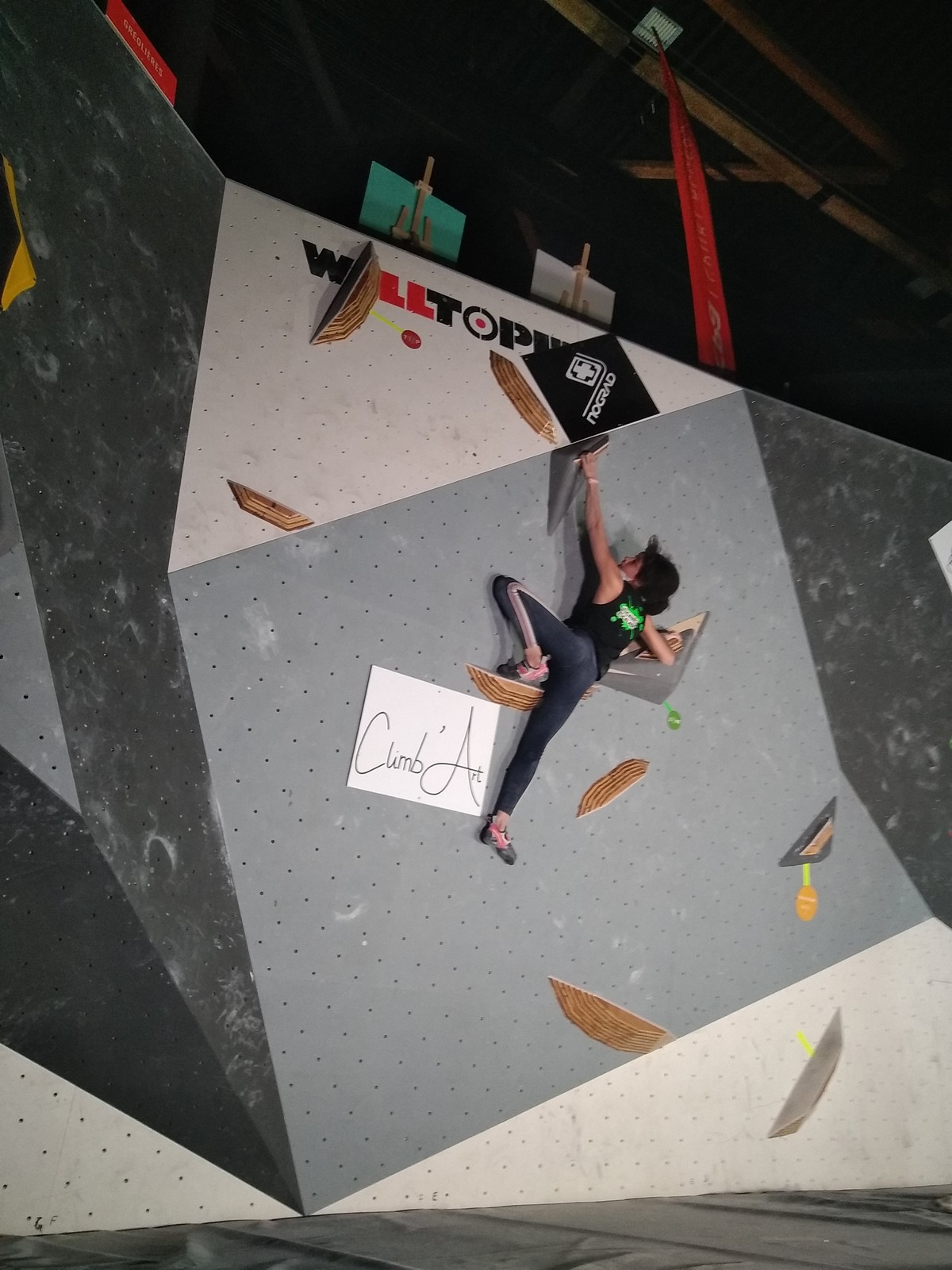 Sébastien lui a eu tout loisir de travailler la rési sur son temps libre ces dernières semaines, et malgré quelques accrocs à son programme d’entraînement et d’affûtage la veille de la compétition, il s’en sort plutôt très bien. Il a du mal à se lâcher sur ses 2 premières voies qu’il enchaîne, mais fait un très beau run dans la dernière voie, qui le propulsera à la 3ème place des qualifications, lui permettant d’accéder à la finale. En compétiteur né il optimise à fond le temps d’isolement et s’élance déterminé dans sa voie de finale bien rési. Il met un beau combat en enchaînant les mouvements jusqu’à un clipage en épaule qui aura raison de lui. Il conserve sa 3ème place, à pas grand chose de la 2ème, vive le régime tartiflette / picon bière !