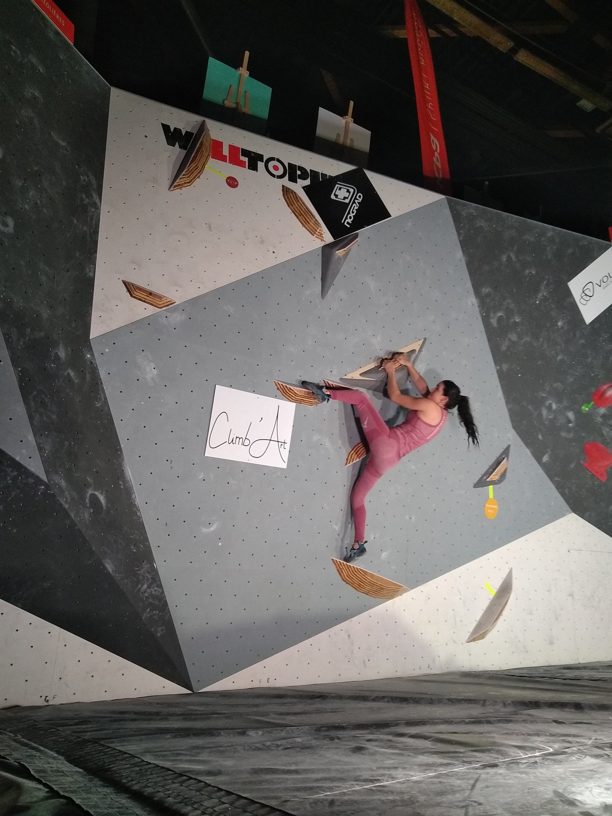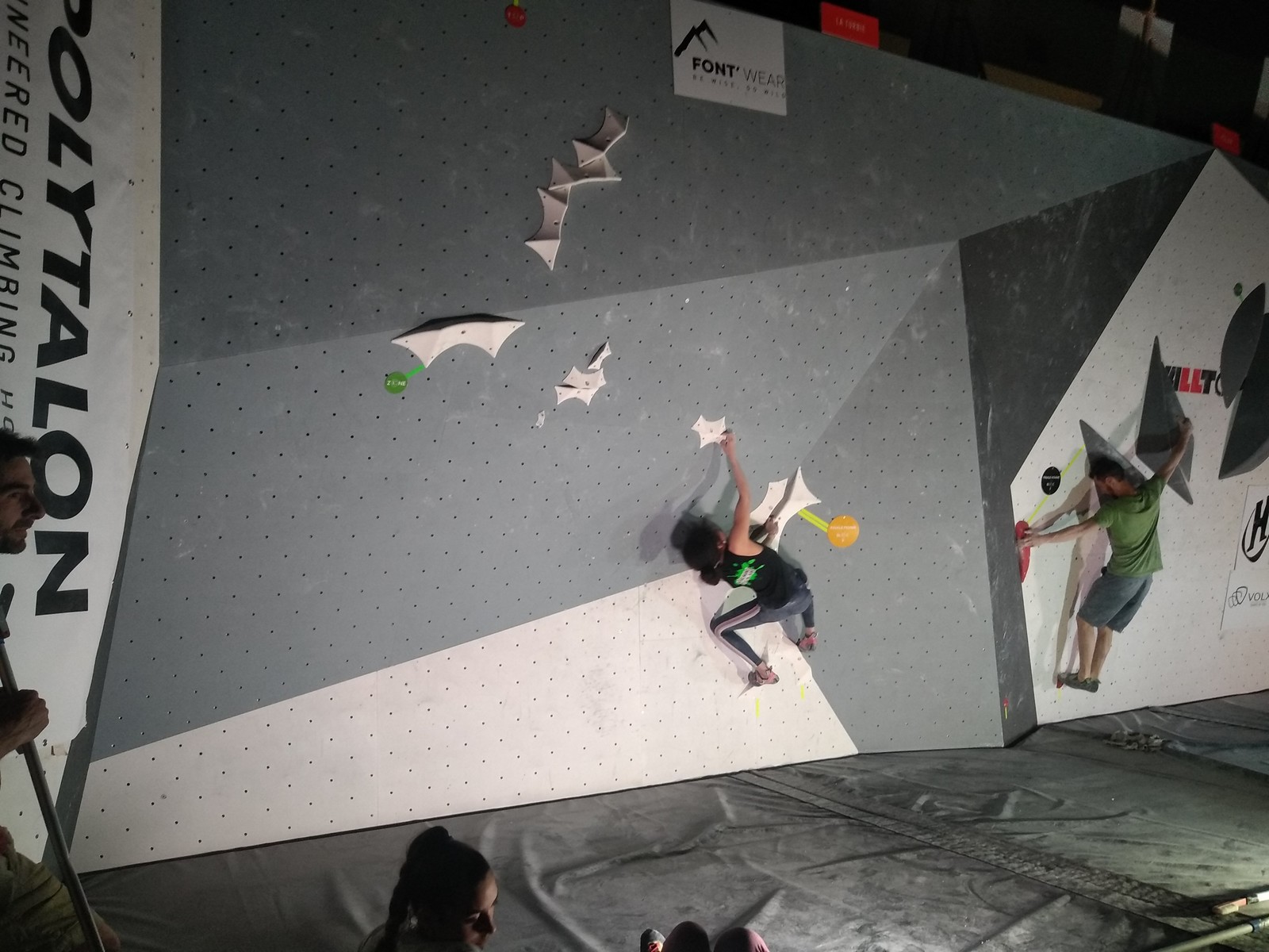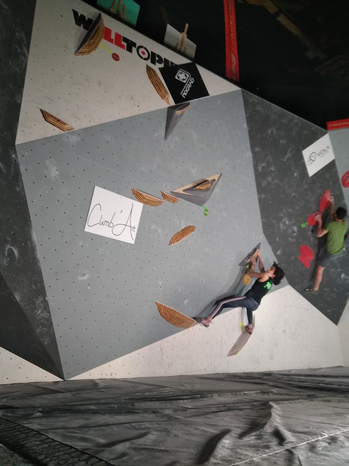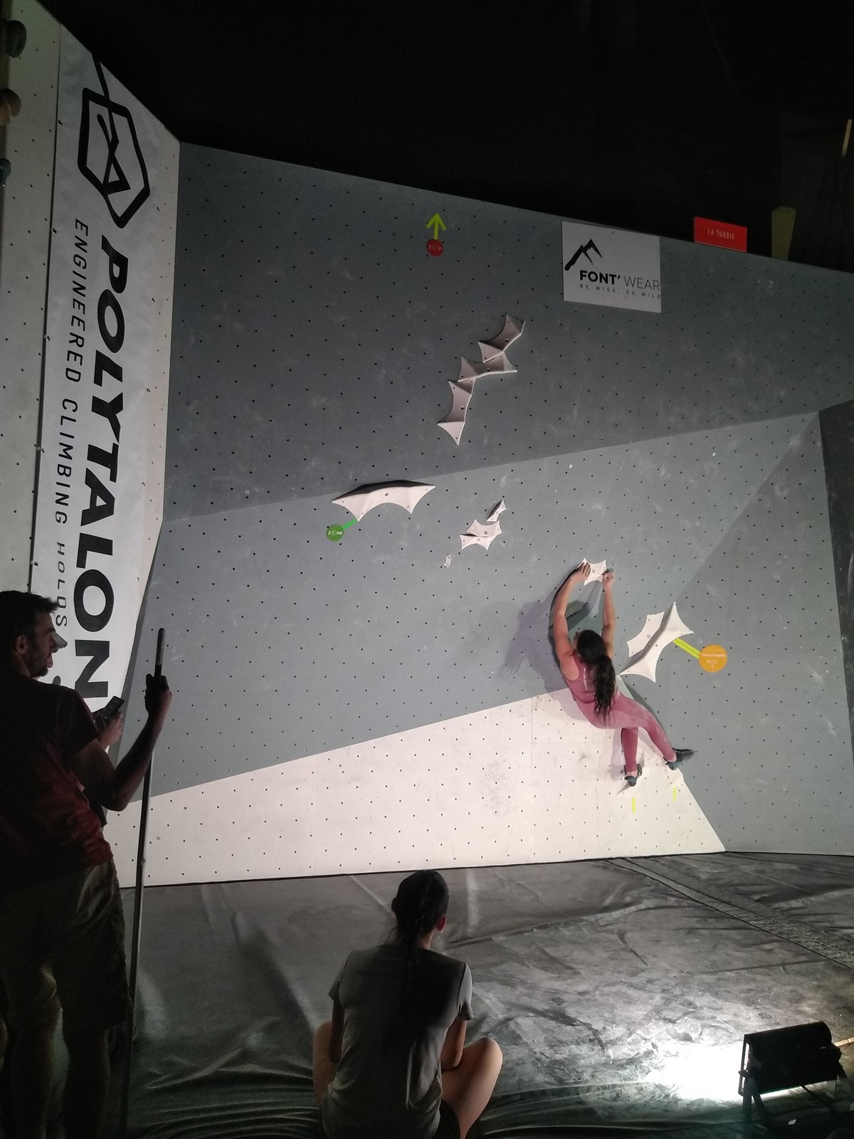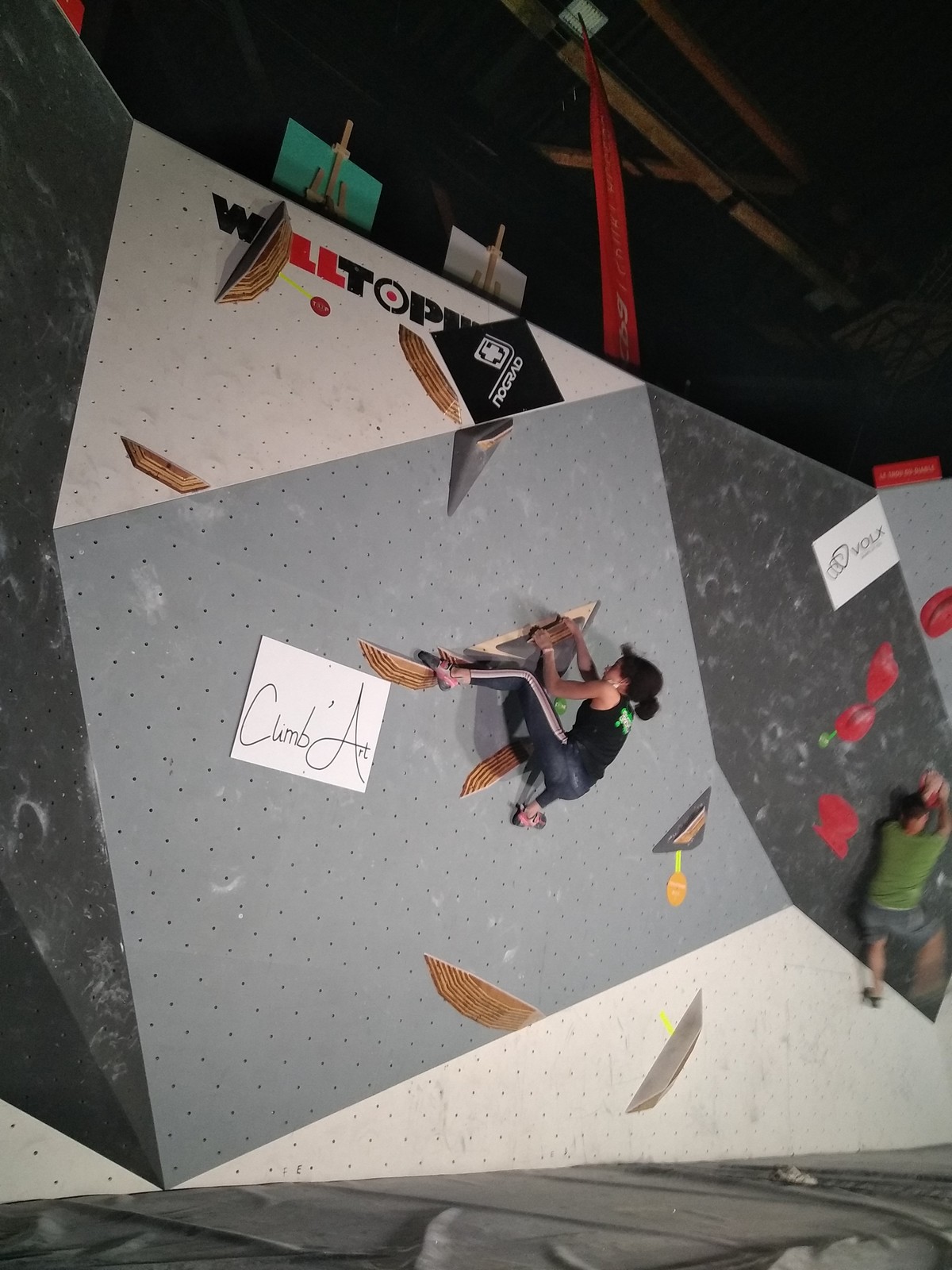 Sébastien lui a eu tout loisir de travailler la rési sur son temps libre ces dernières semaines, et malgré quelques accrocs à son programme d’entraînement et d’affûtage la veille de la compétition, il s’en sort plutôt très bien. Il a du mal à se lâcher sur ses 2 premières voies qu’il enchaîne, mais fait un très beau run dans la dernière voie, qui le propulsera à la 3ème place des qualifications, lui permettant d’accéder à la finale. En compétiteur né il optimise à fond le temps d’isolement et s’élance déterminé dans sa voie de finale bien rési. Il met un beau combat en enchaînant les mouvements jusqu’à un clipage en épaule qui aura raison de lui. Il conserve sa 3ème place, à pas grand chose de la 2ème, vive le régime tartiflette / picon bière !