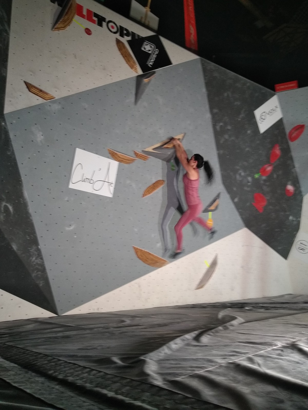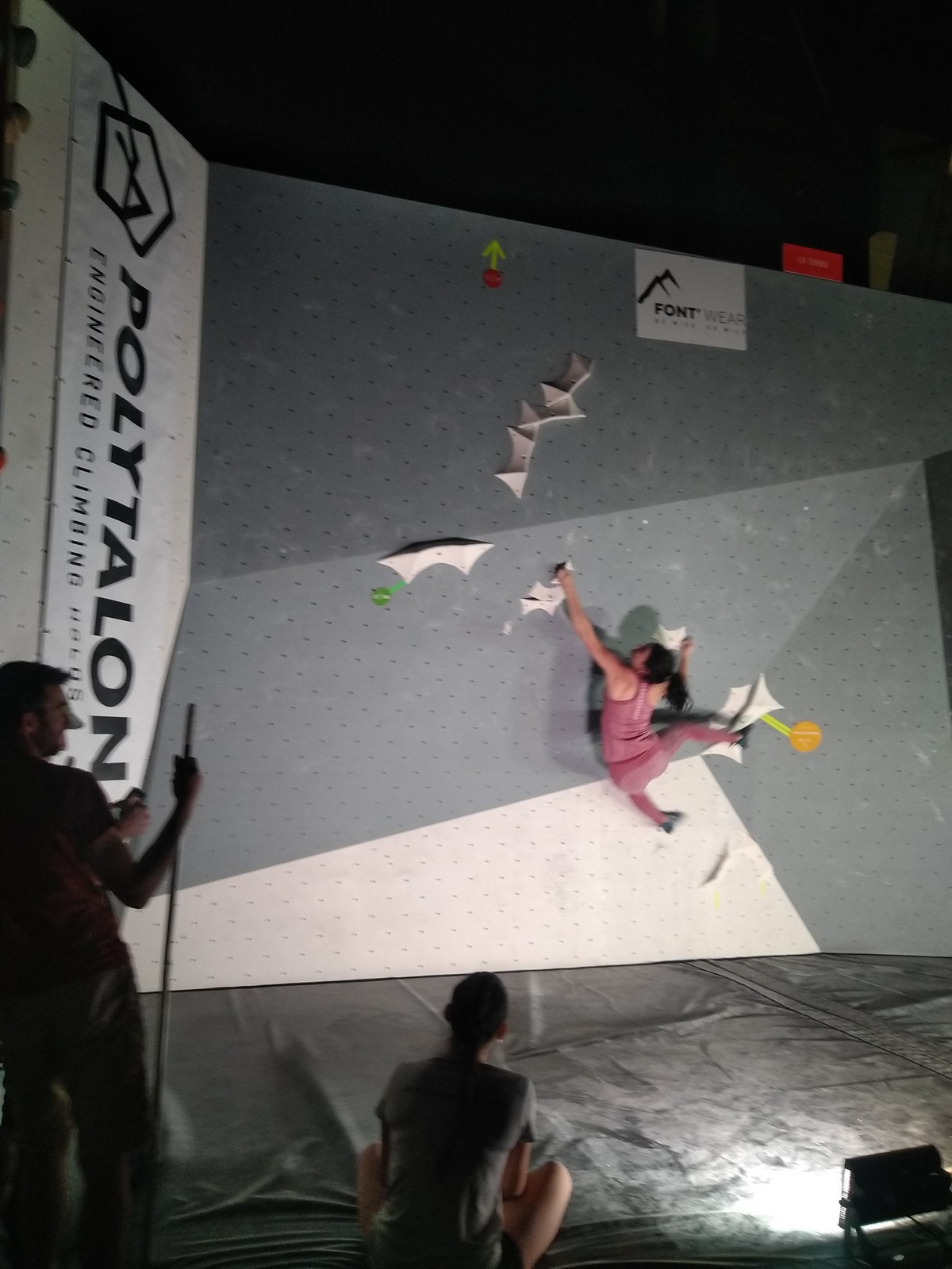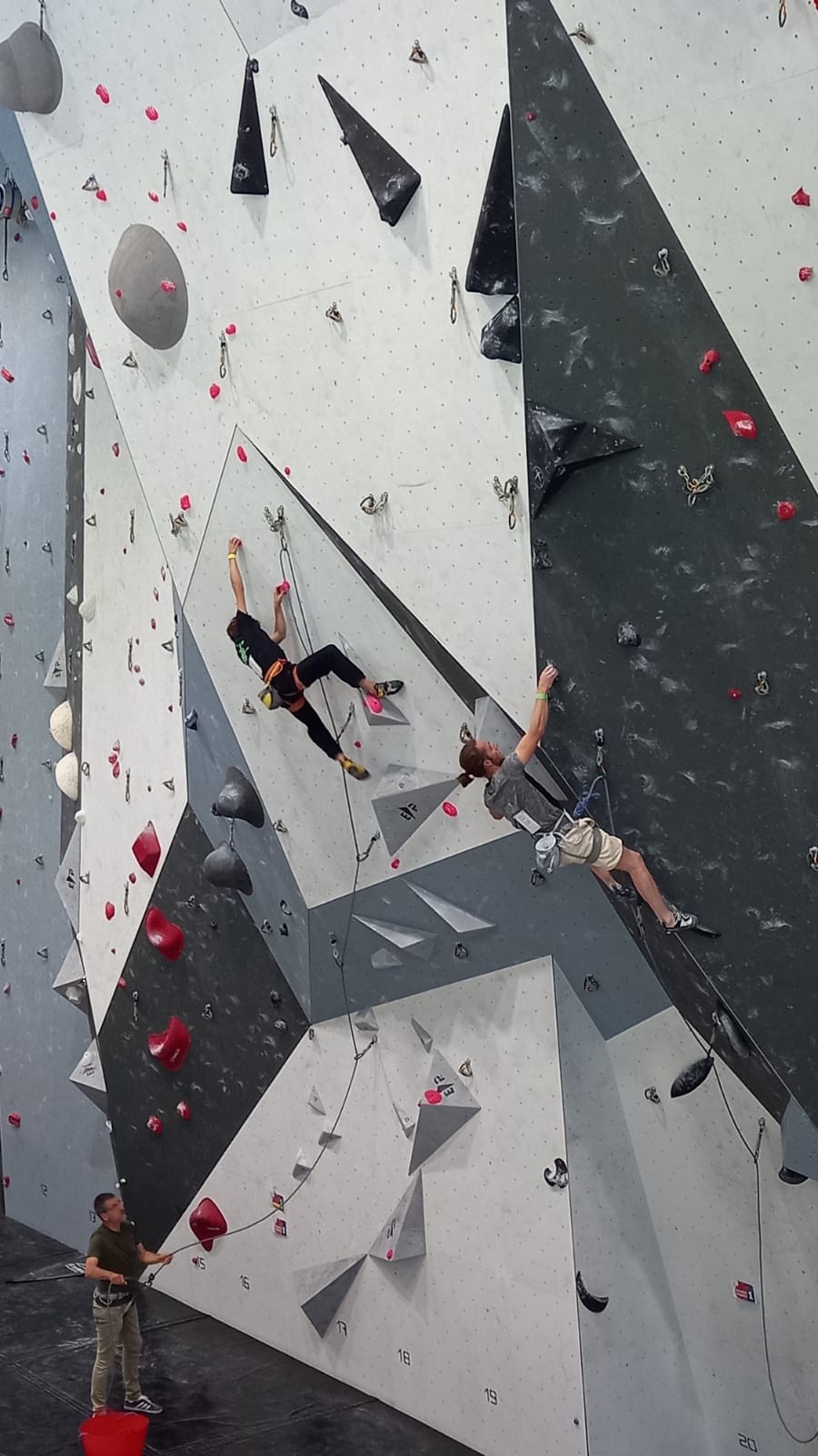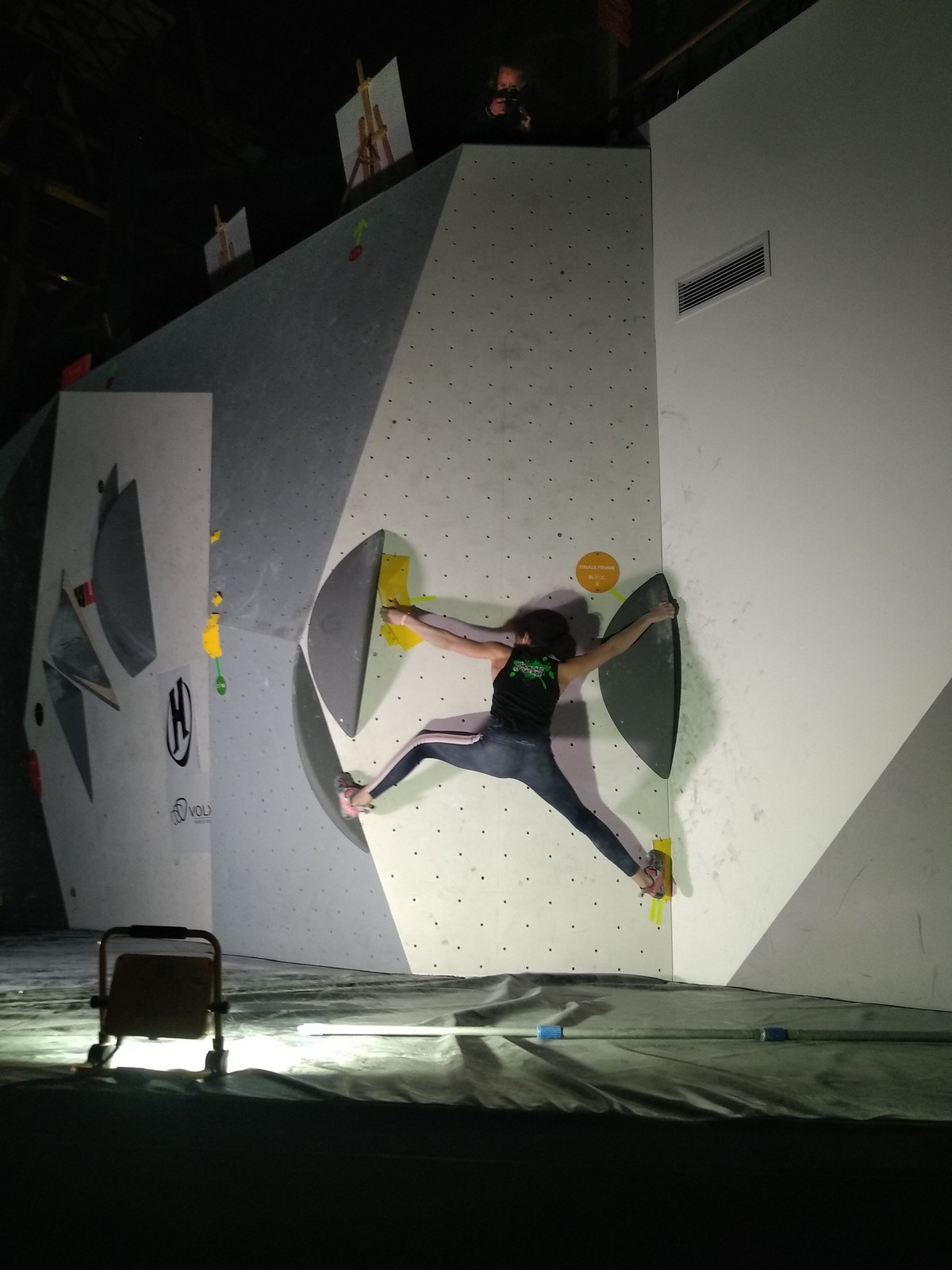 Sébastien lui a eu tout loisir de travailler la rési sur son temps libre ces dernières semaines, et malgré quelques accrocs à son programme d’entraînement et d’affûtage la veille de la compétition, il s’en sort plutôt très bien. Il a du mal à se lâcher sur ses 2 premières voies qu’il enchaîne, mais fait un très beau run dans la dernière voie, qui le propulsera à la 3ème place des qualifications, lui permettant d’accéder à la finale. En compétiteur né il optimise à fond le temps d’isolement et s’élance déterminé dans sa voie de finale bien rési. Il met un beau combat en enchaînant les mouvements jusqu’à un clipage en épaule qui aura raison de lui. Il conserve sa 3ème place, à pas grand chose de la 2ème, vive le régime tartiflette / picon bière !