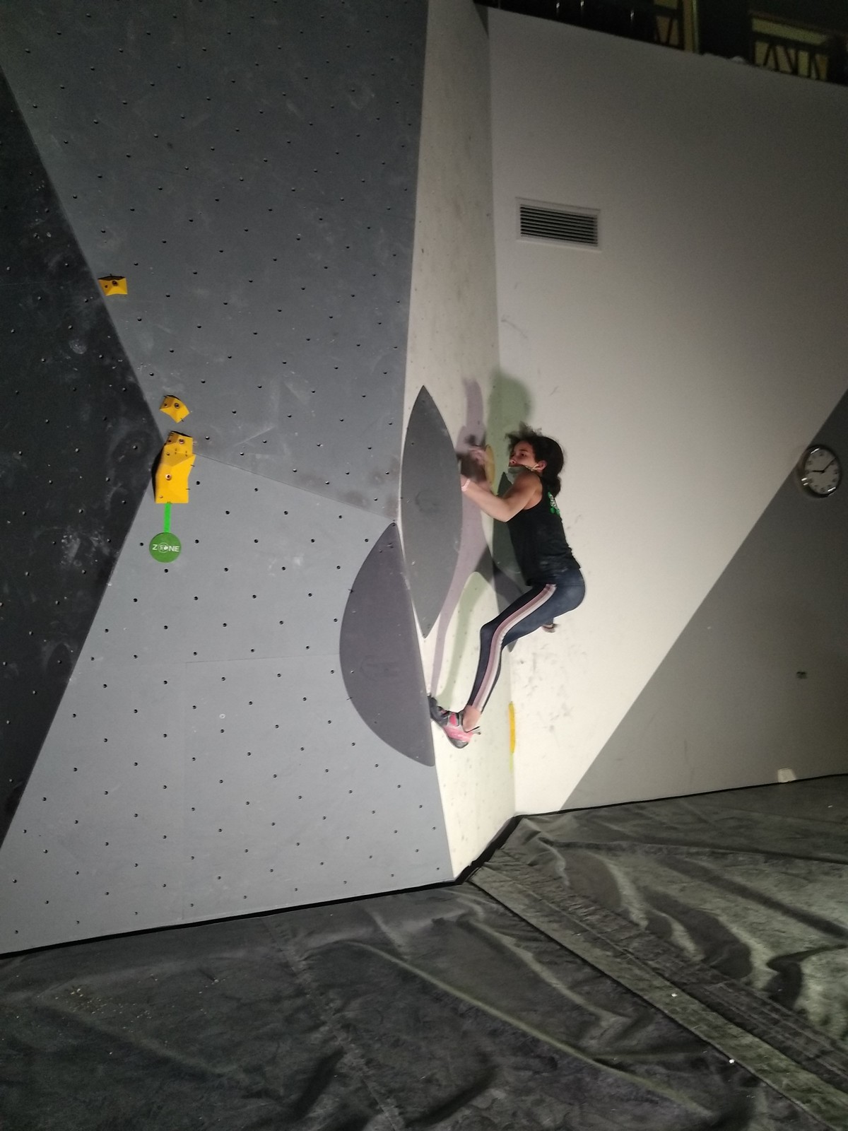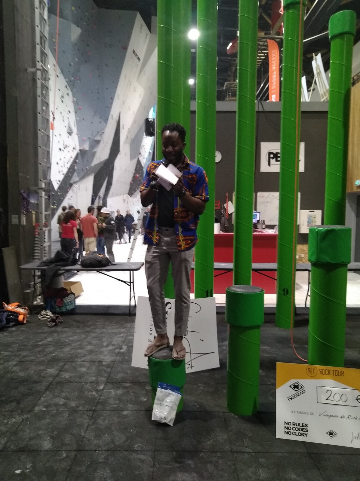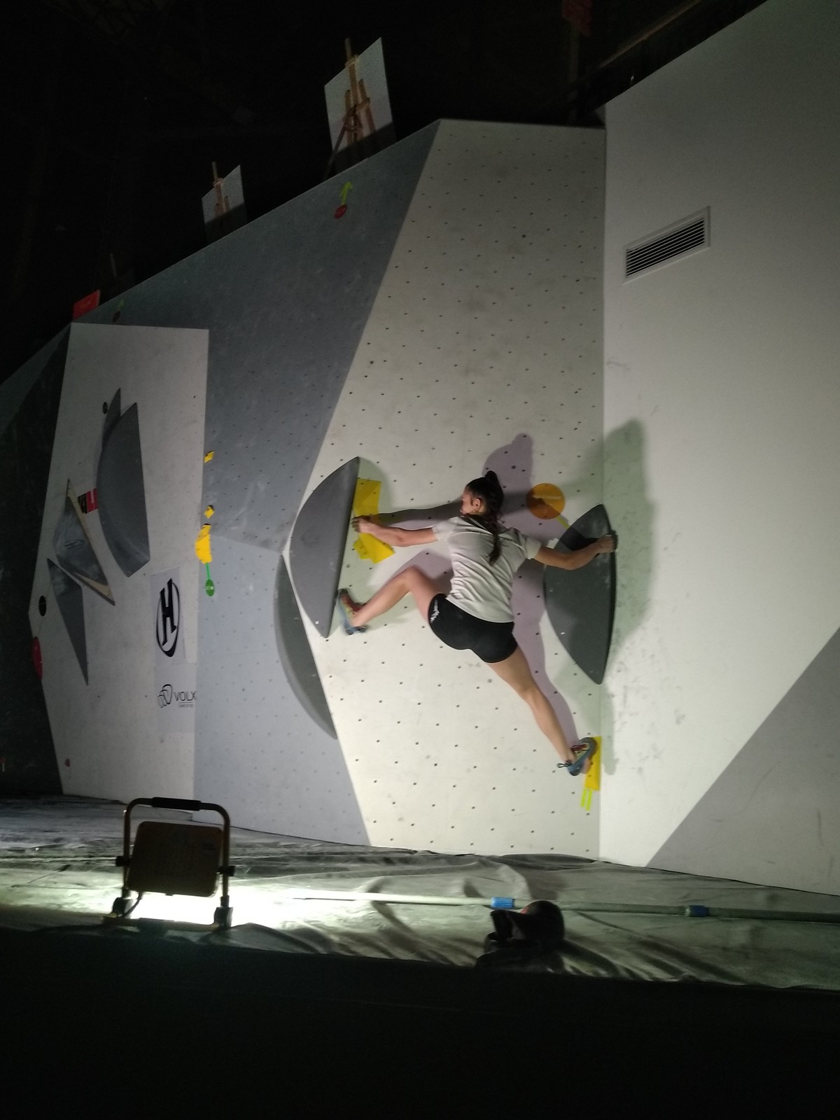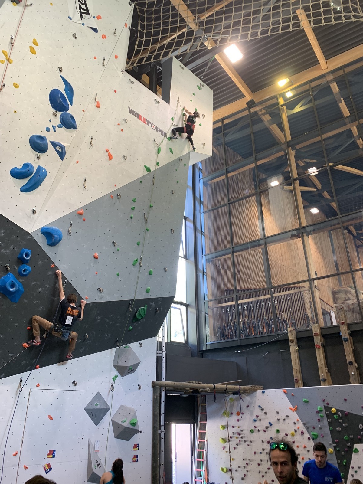 Sébastien lui a eu tout loisir de travailler la rési sur son temps libre ces dernières semaines, et malgré quelques accrocs à son programme d’entraînement et d’affûtage la veille de la compétition, il s’en sort plutôt très bien. Il a du mal à se lâcher sur ses 2 premières voies qu’il enchaîne, mais fait un très beau run dans la dernière voie, qui le propulsera à la 3ème place des qualifications, lui permettant d’accéder à la finale. En compétiteur né il optimise à fond le temps d’isolement et s’élance déterminé dans sa voie de finale bien rési. Il met un beau combat en enchaînant les mouvements jusqu’à un clipage en épaule qui aura raison de lui. Il conserve sa 3ème place, à pas grand chose de la 2ème, vive le régime tartiflette / picon bière !