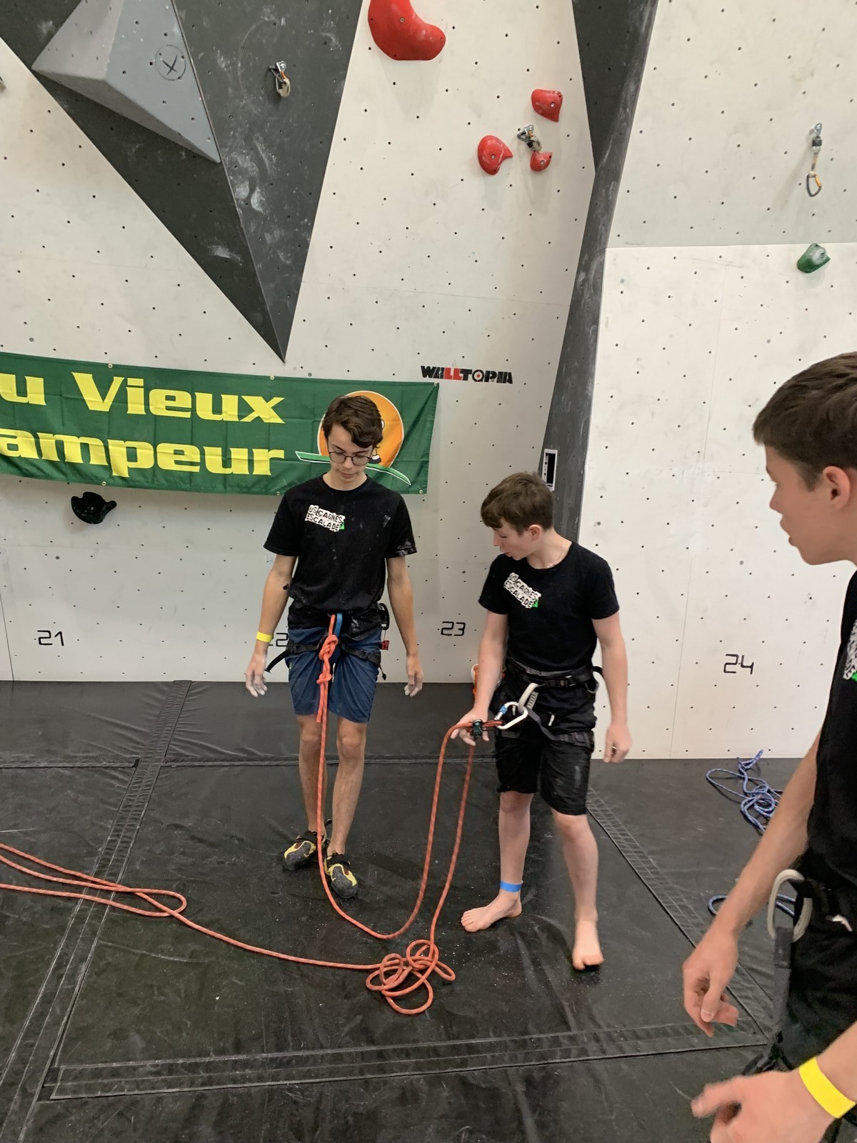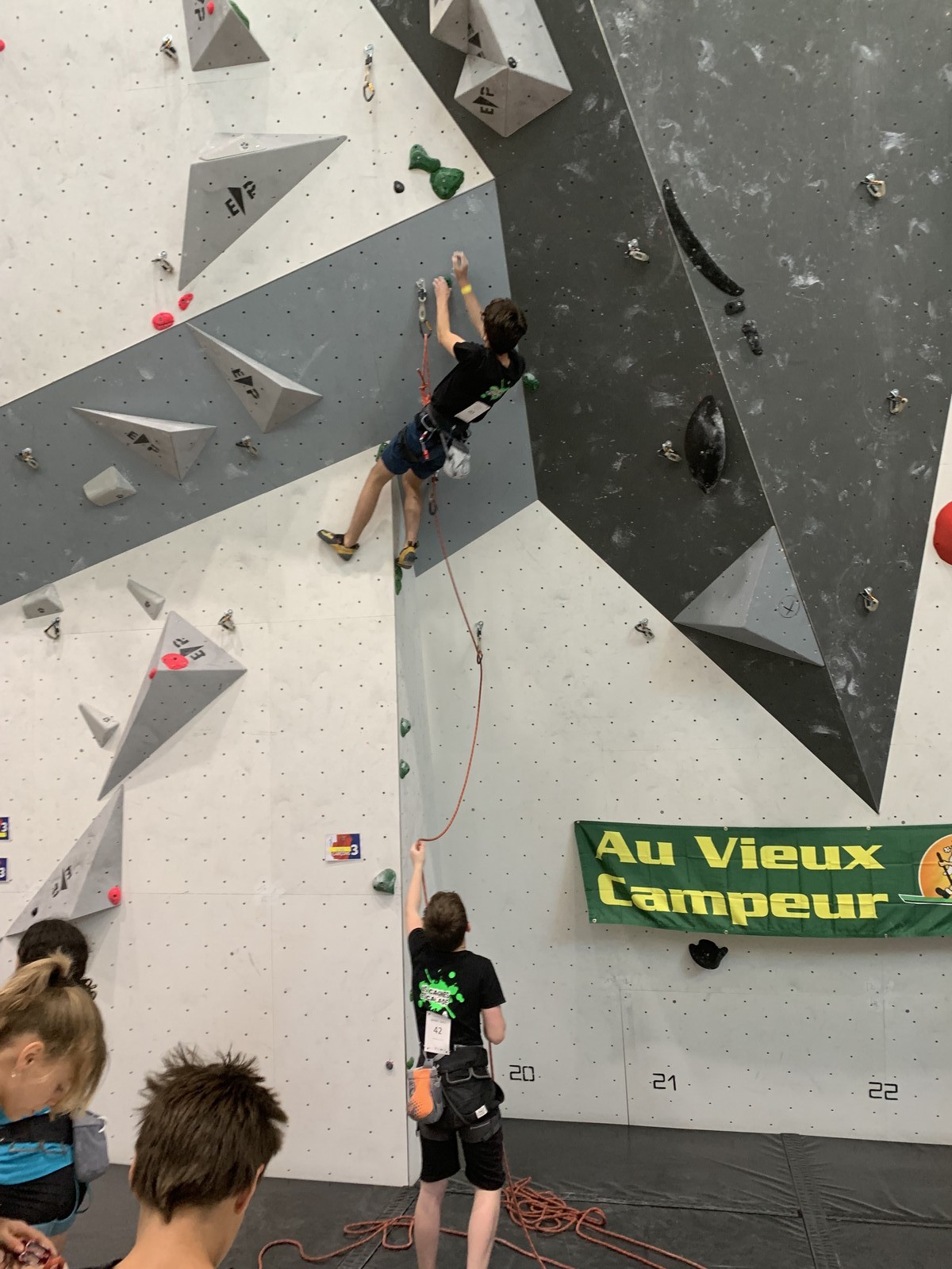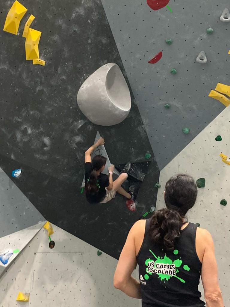 4 grimpeurs du club défendent donc les couleurs du club lors des finales de l’après-midi. Lucas s’en sort bien et parvient à grappiller quelques places, terminant 5ème ex-aequo, ça ne sera malheureusement pas suffisant pour la qualification au championnat de France. Même classement pour Mathis, qui rate lui aussi la sélection à 1 ou 2 mouvs près. Toujours frustrant mais tous les deux ont montré de belles choses et sont en 1ère année de leur catégorie, on les attend au rendez-vous l’année prochaine !