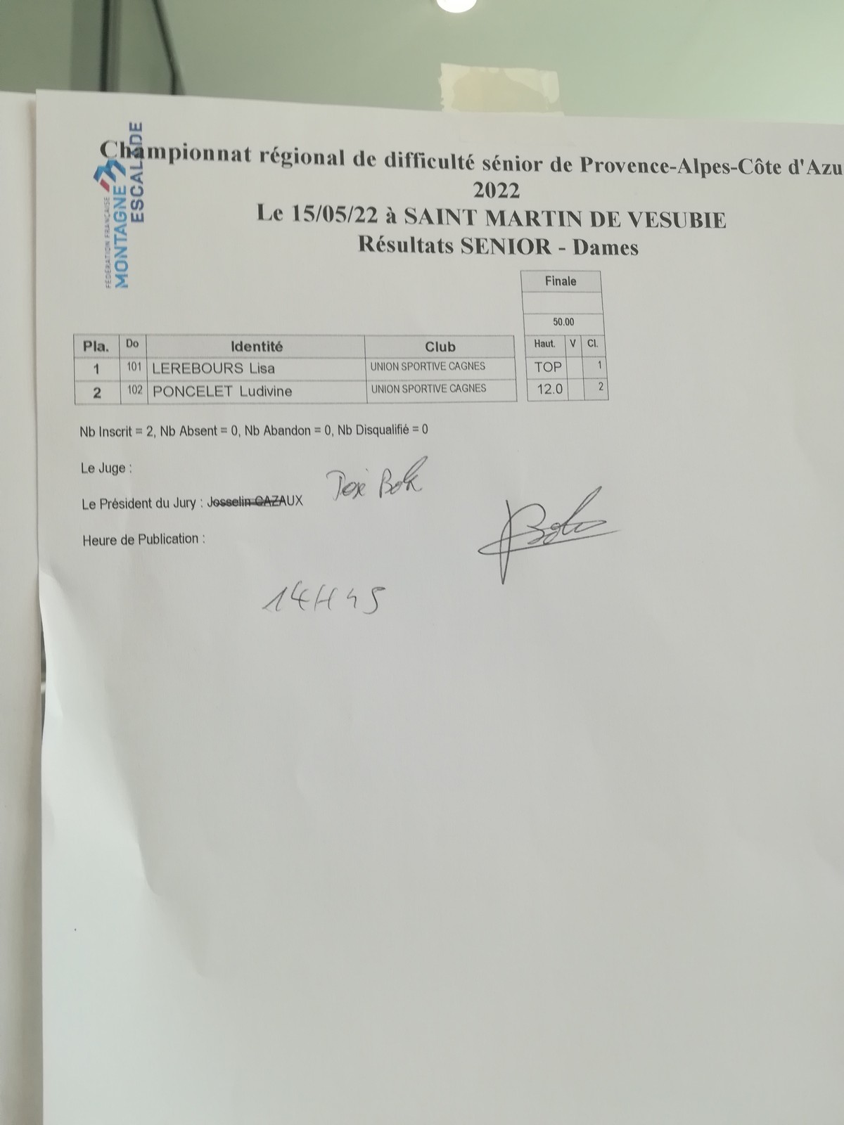 Du côté des filles, Lisa enchaîne sa voie de finale, elles ne seront que deux concurrentes à y parvenir, et elle obtient le titre de championne régionale U20 grâce au rétro-classement des qualifs.