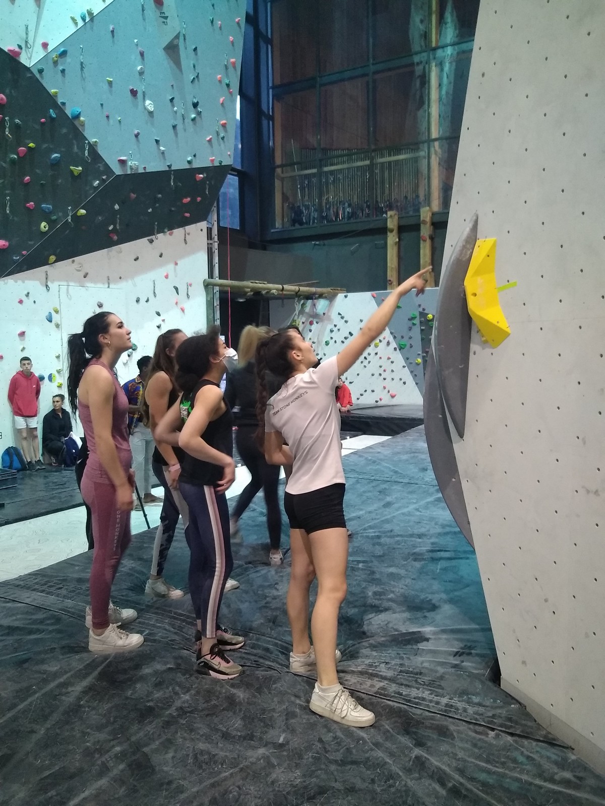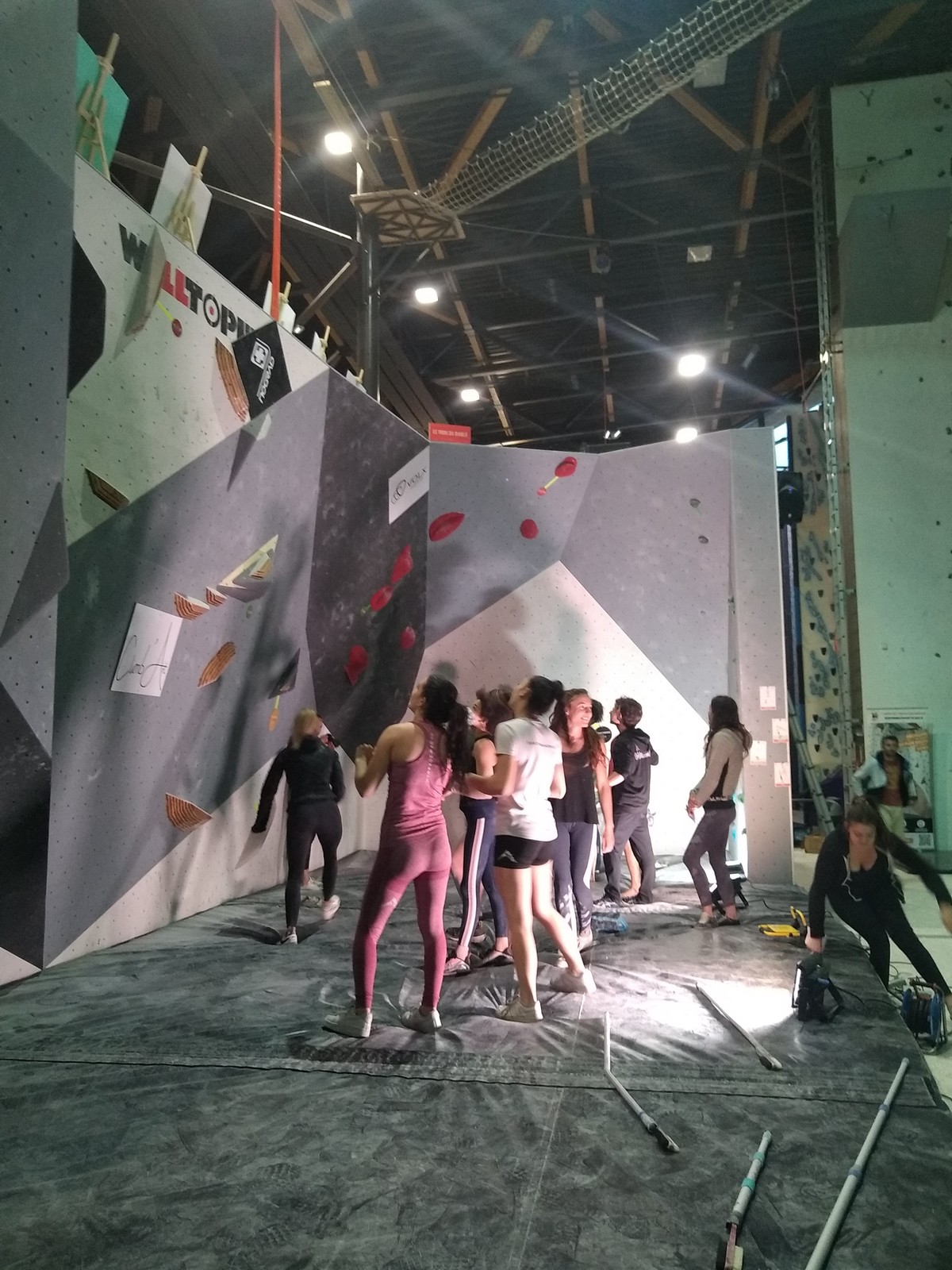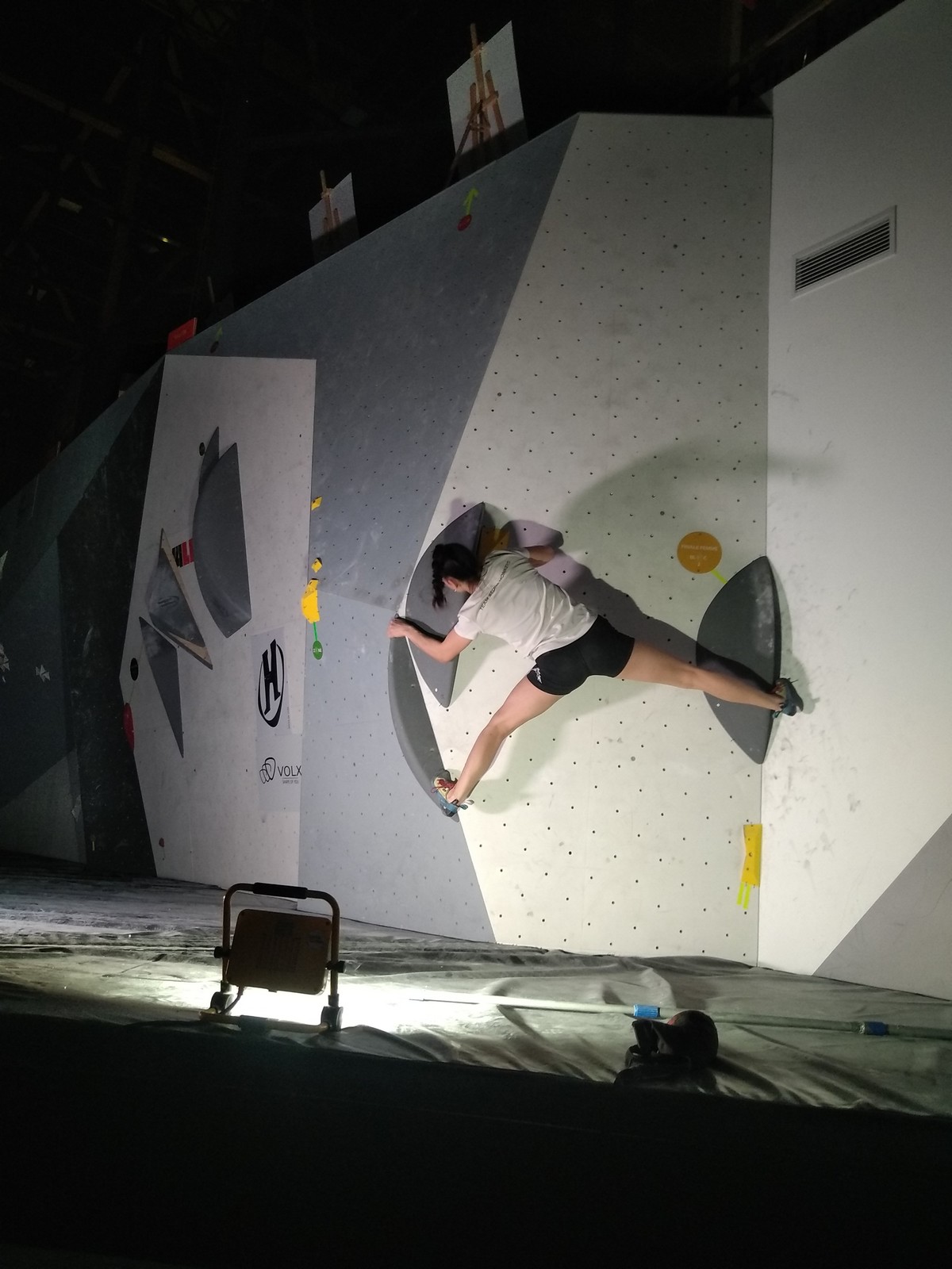 Léane est dans un bon jour, au physique comme au mental, et elle fait partie des 3 concurrentes qui topent les 4 voies de qualif. Agathe enchaîne ses 3 premières voies avant de chuter avant la fin de la voie 4 tandis qu’Hanaé et Emma butent sur le dernier mouv de la voie 3. C’est quand même suffisant pour que les 4 filles passent en finale.