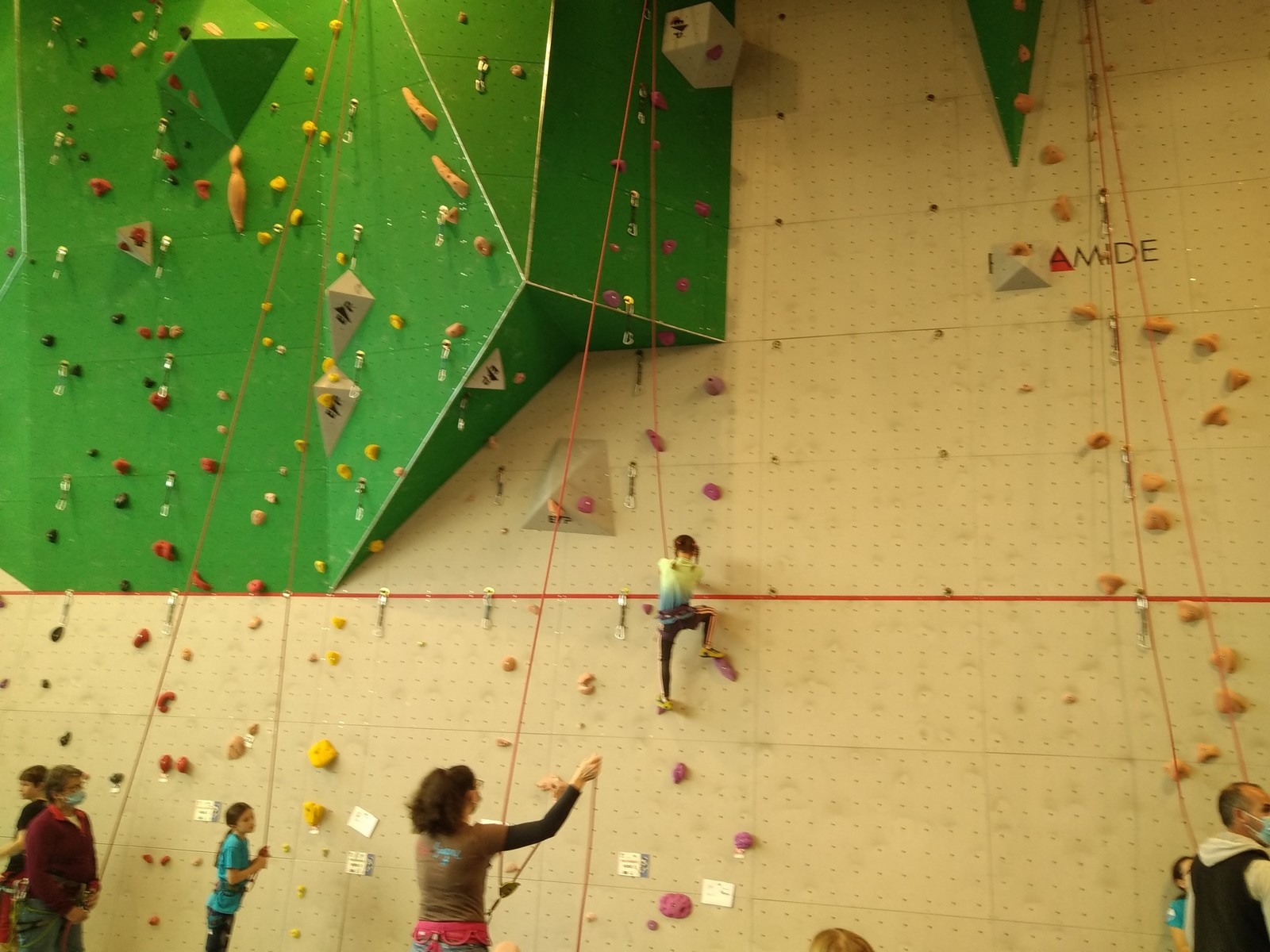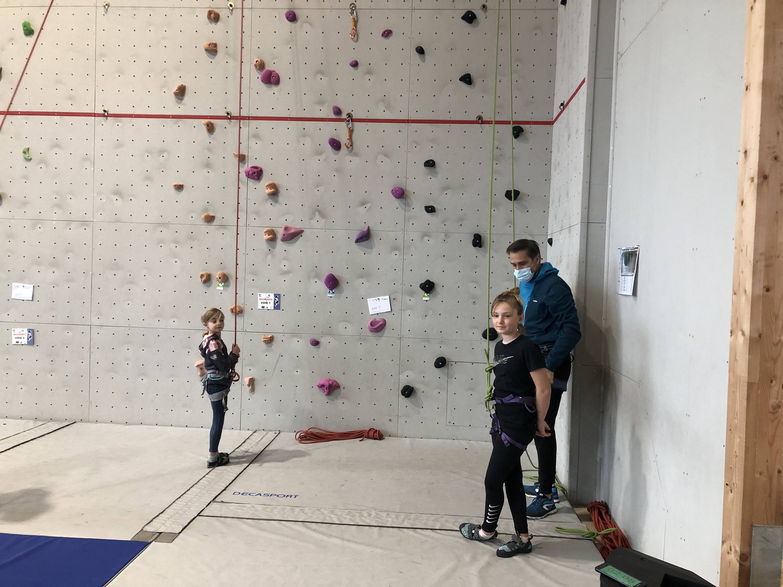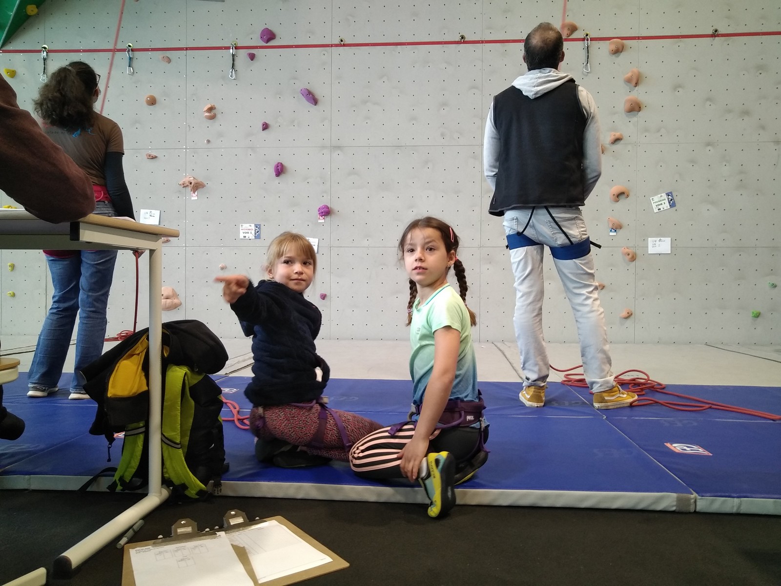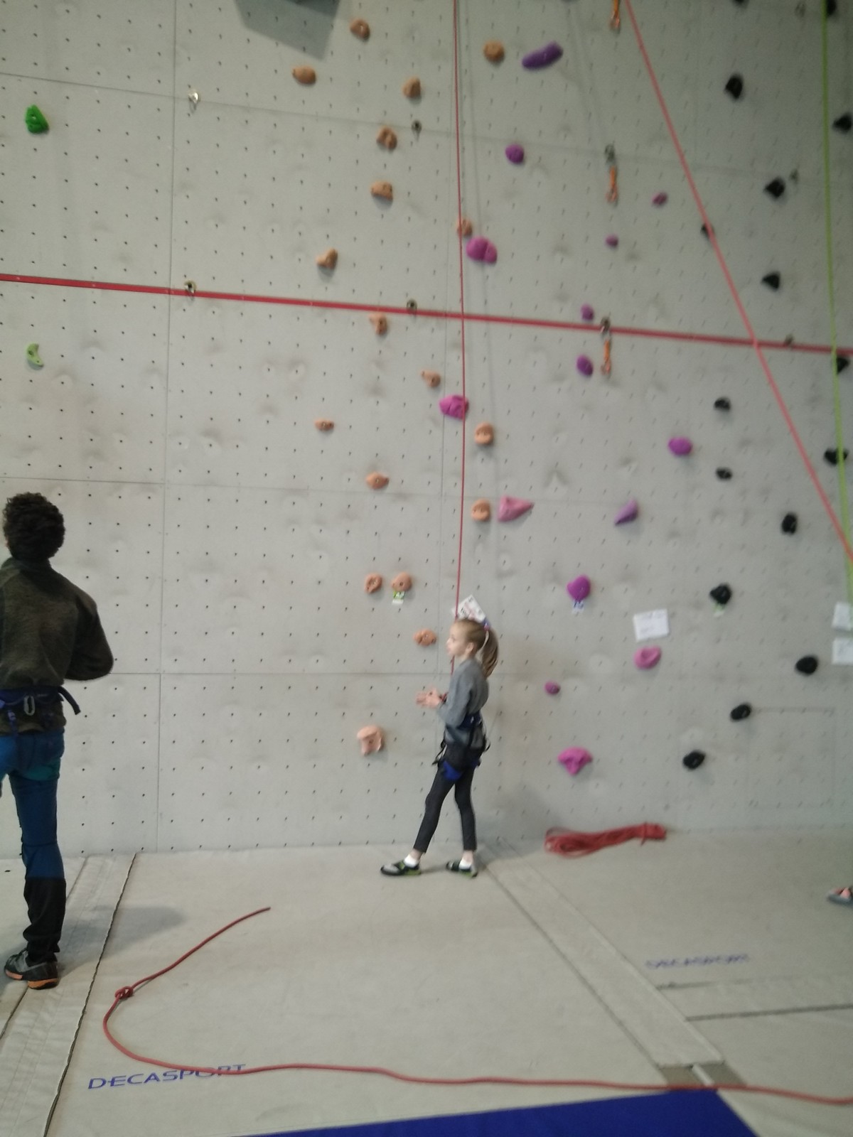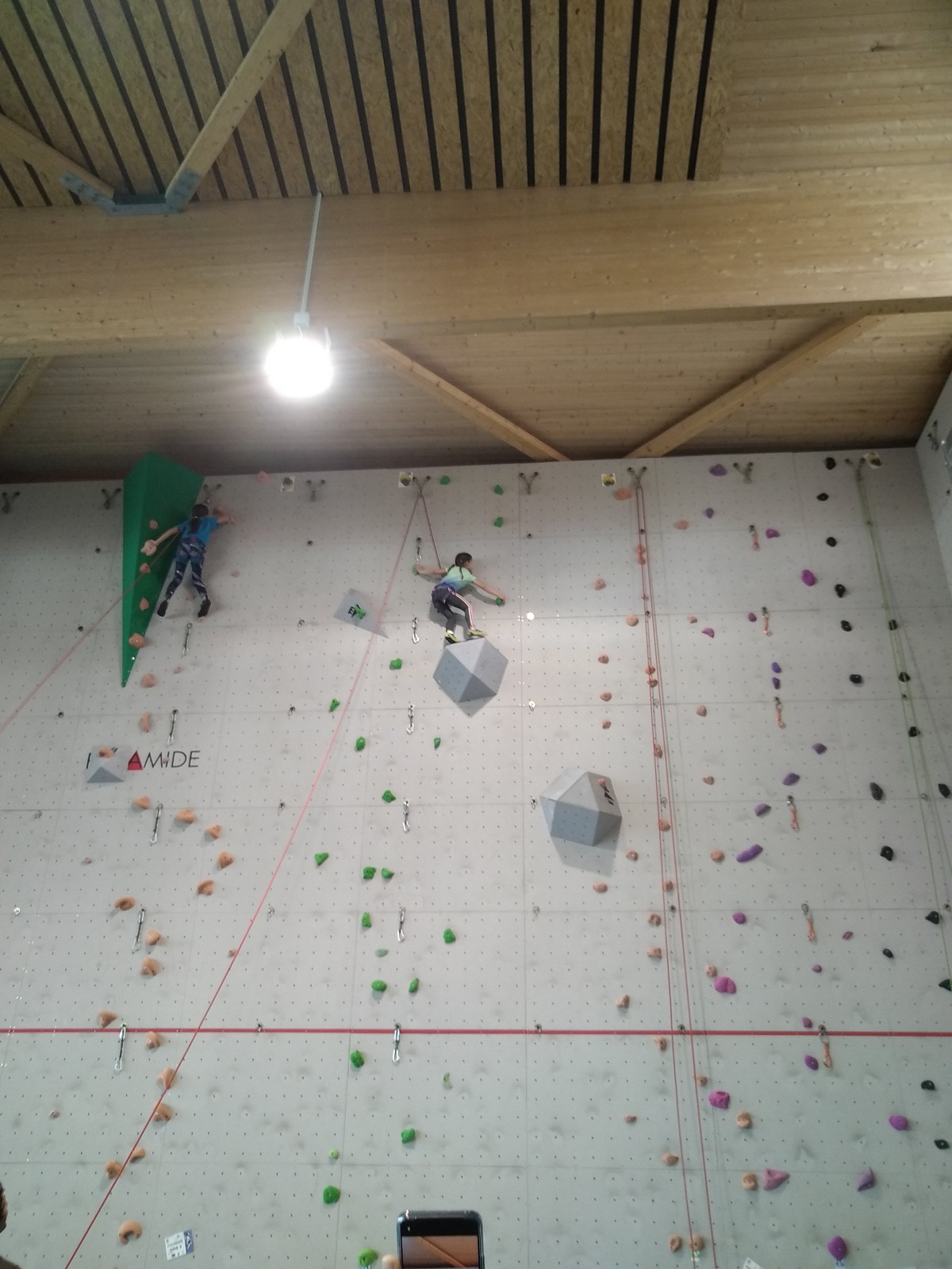 C’est la même voie pour les benjamins et Camille du Ski club part en premier. Ça monte bien mais tombe avant le jeté latéral.