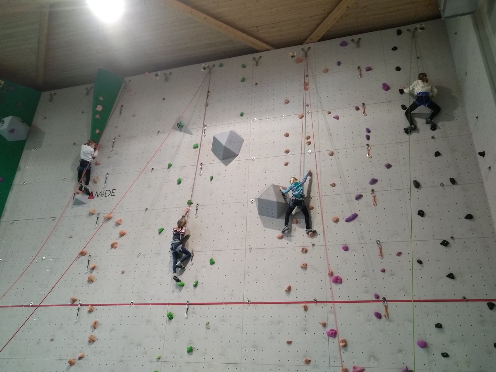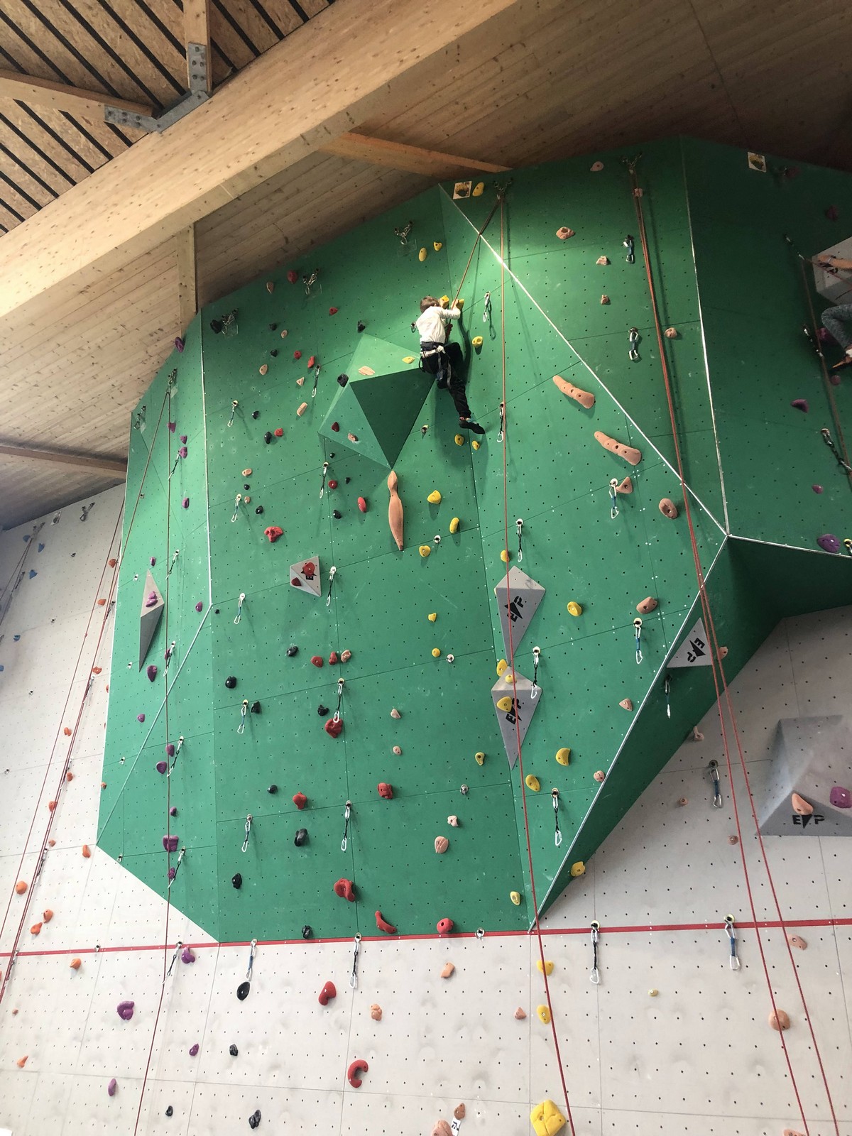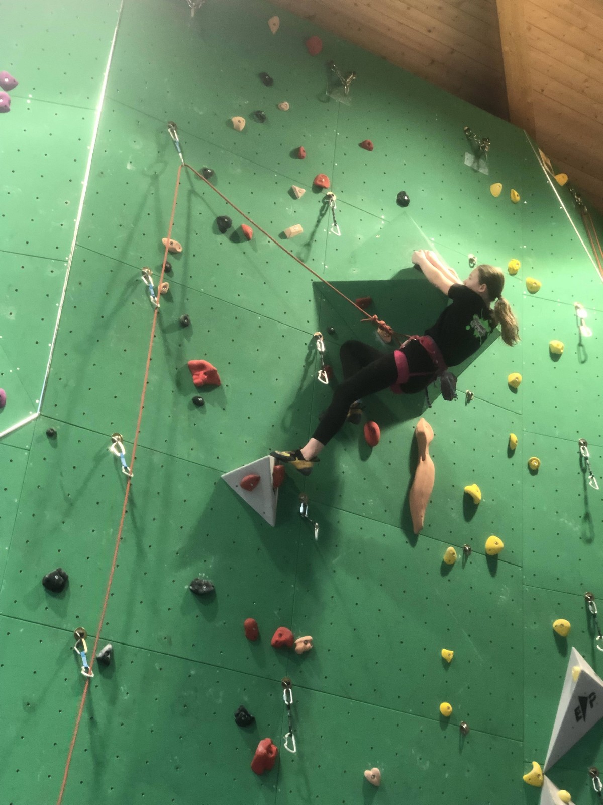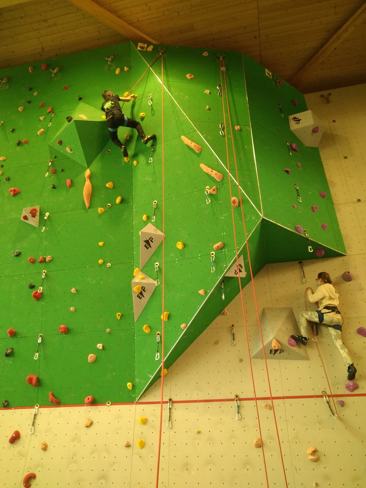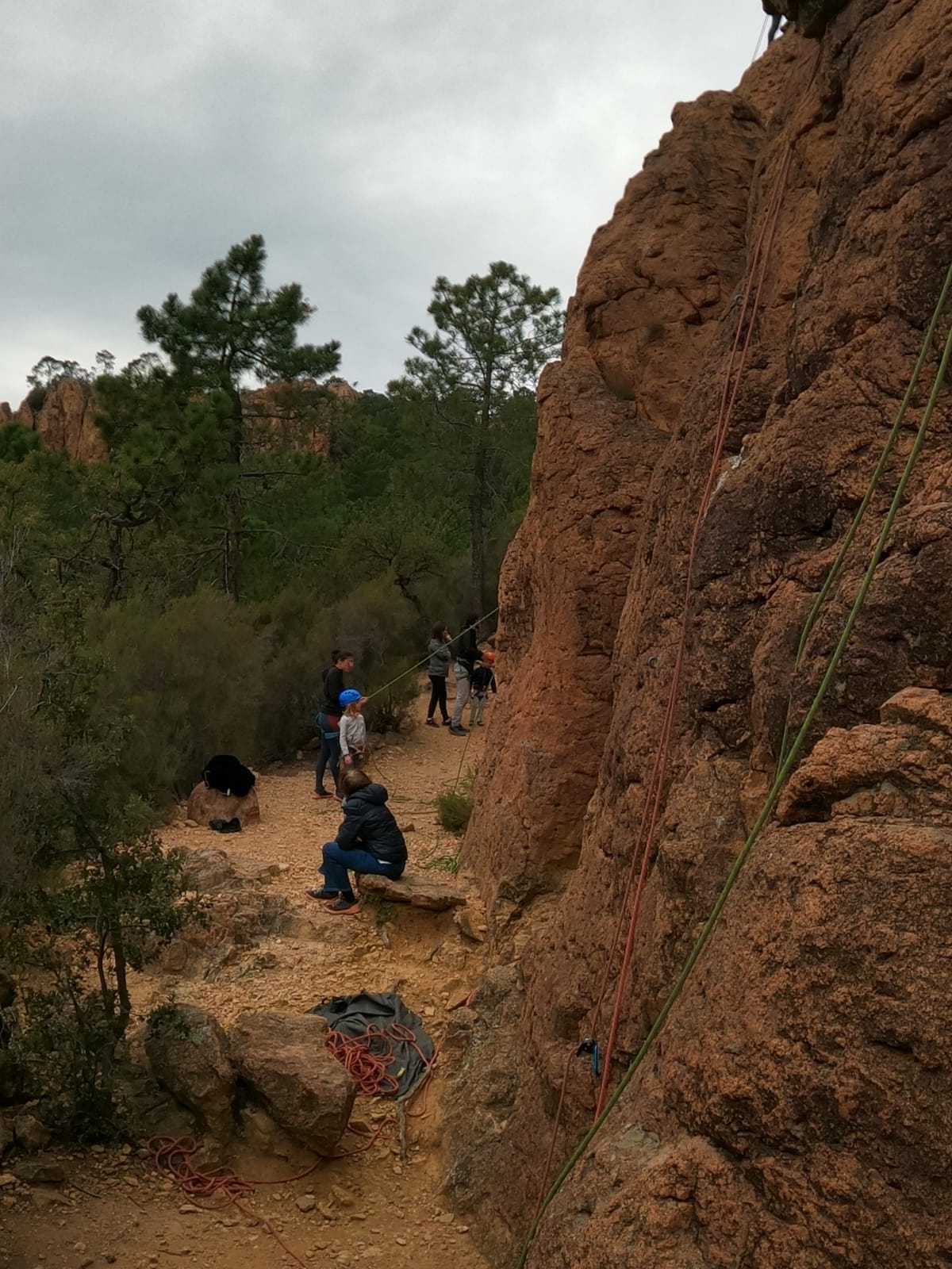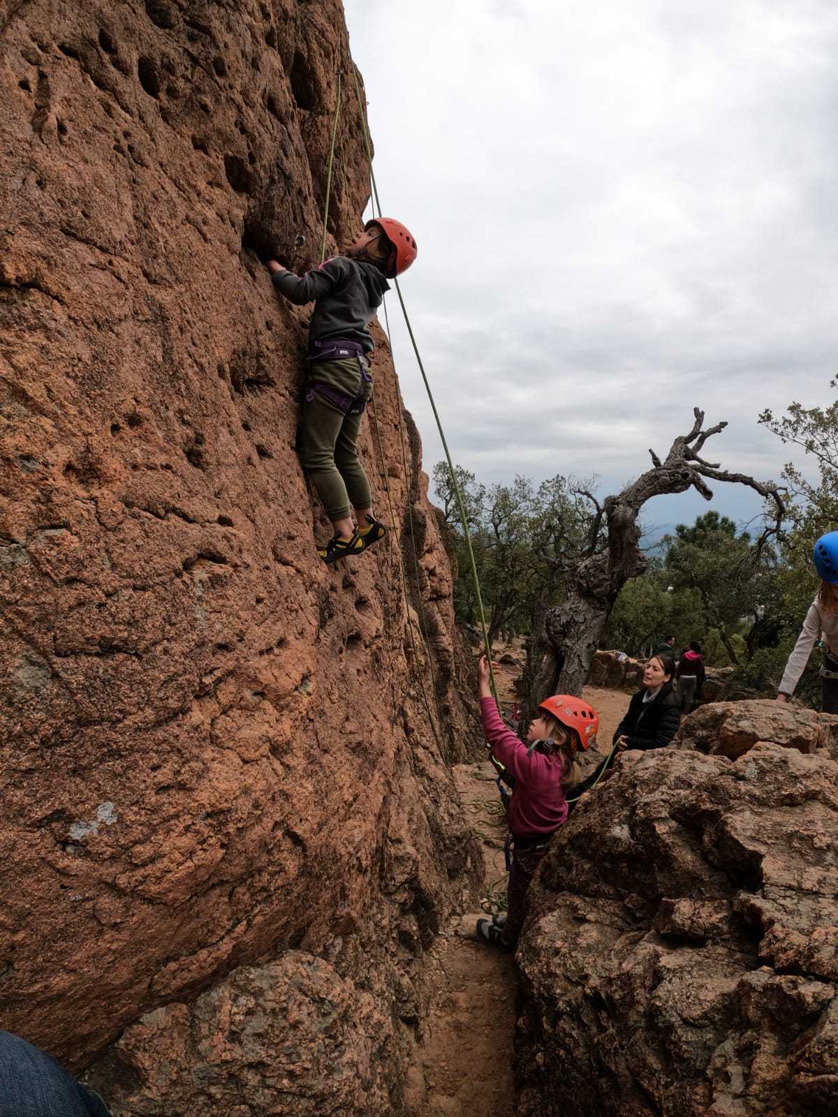 C’est la même voie pour les benjamins et Camille du Ski club part en premier. Ça monte bien mais tombe avant le jeté latéral.