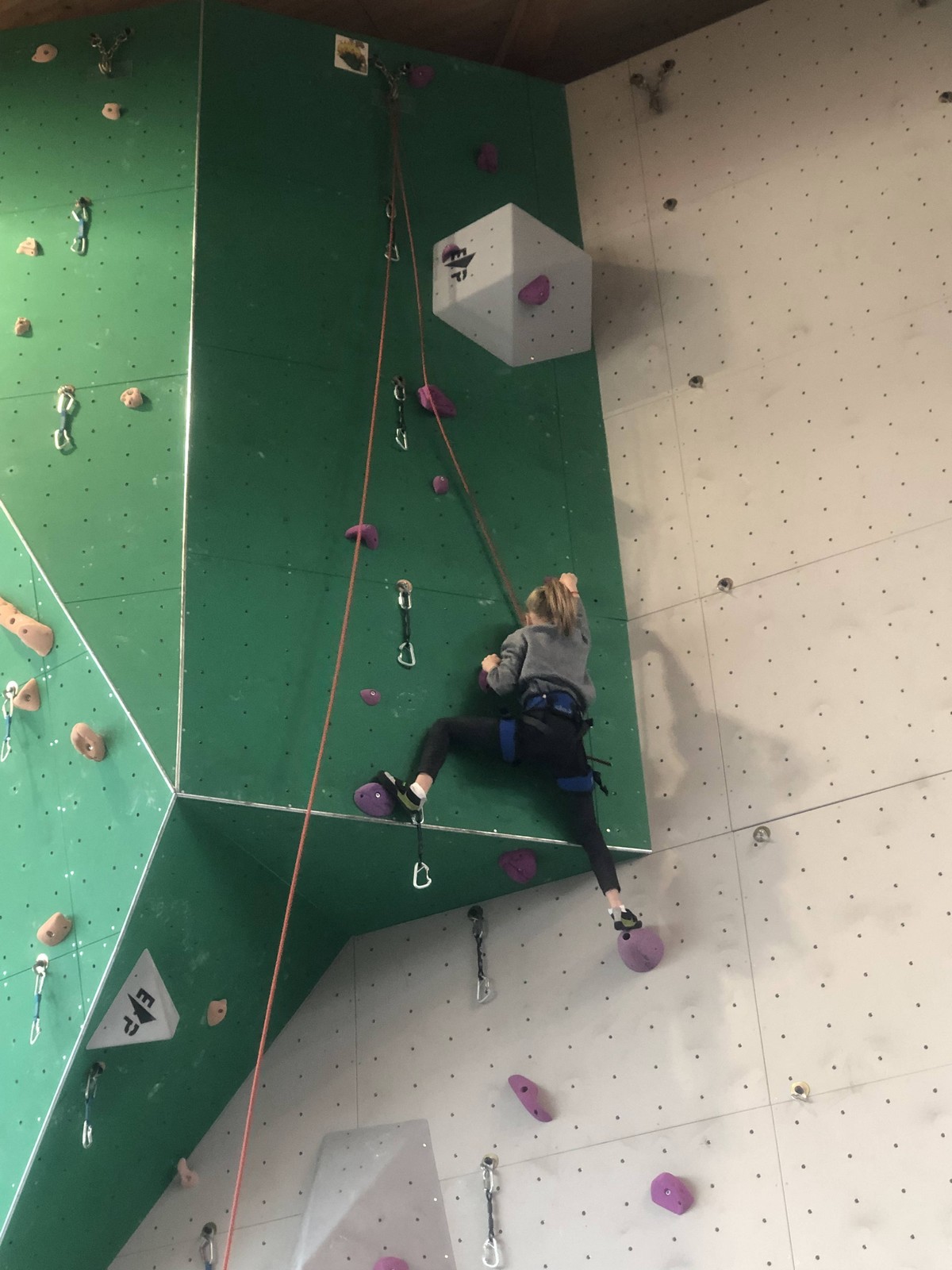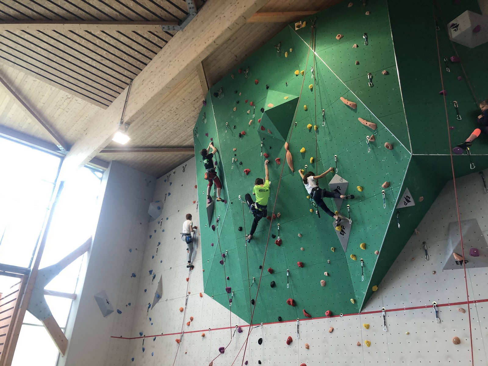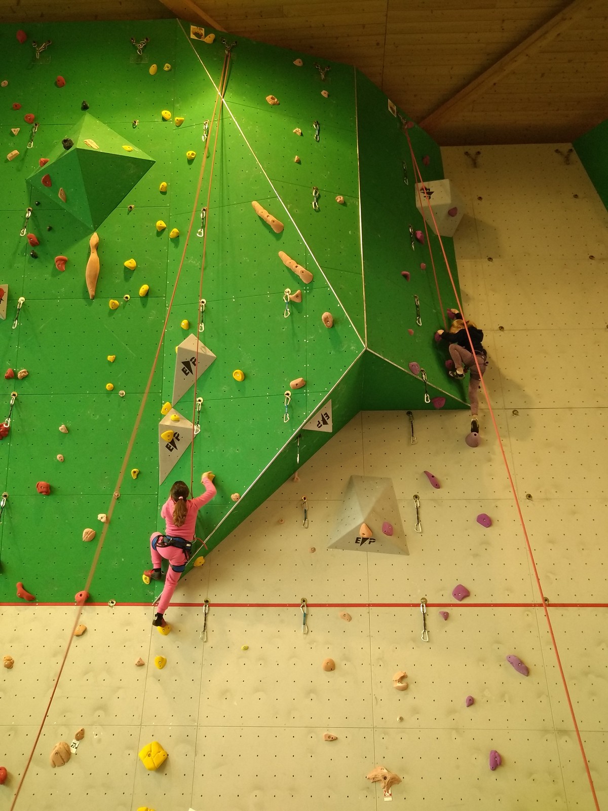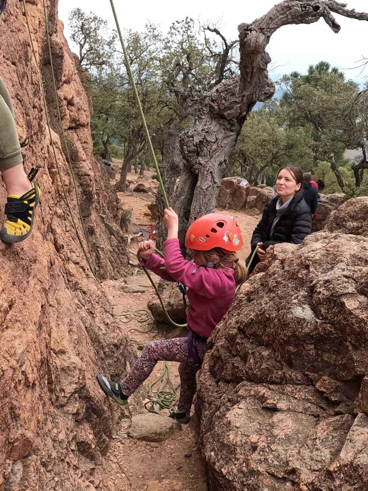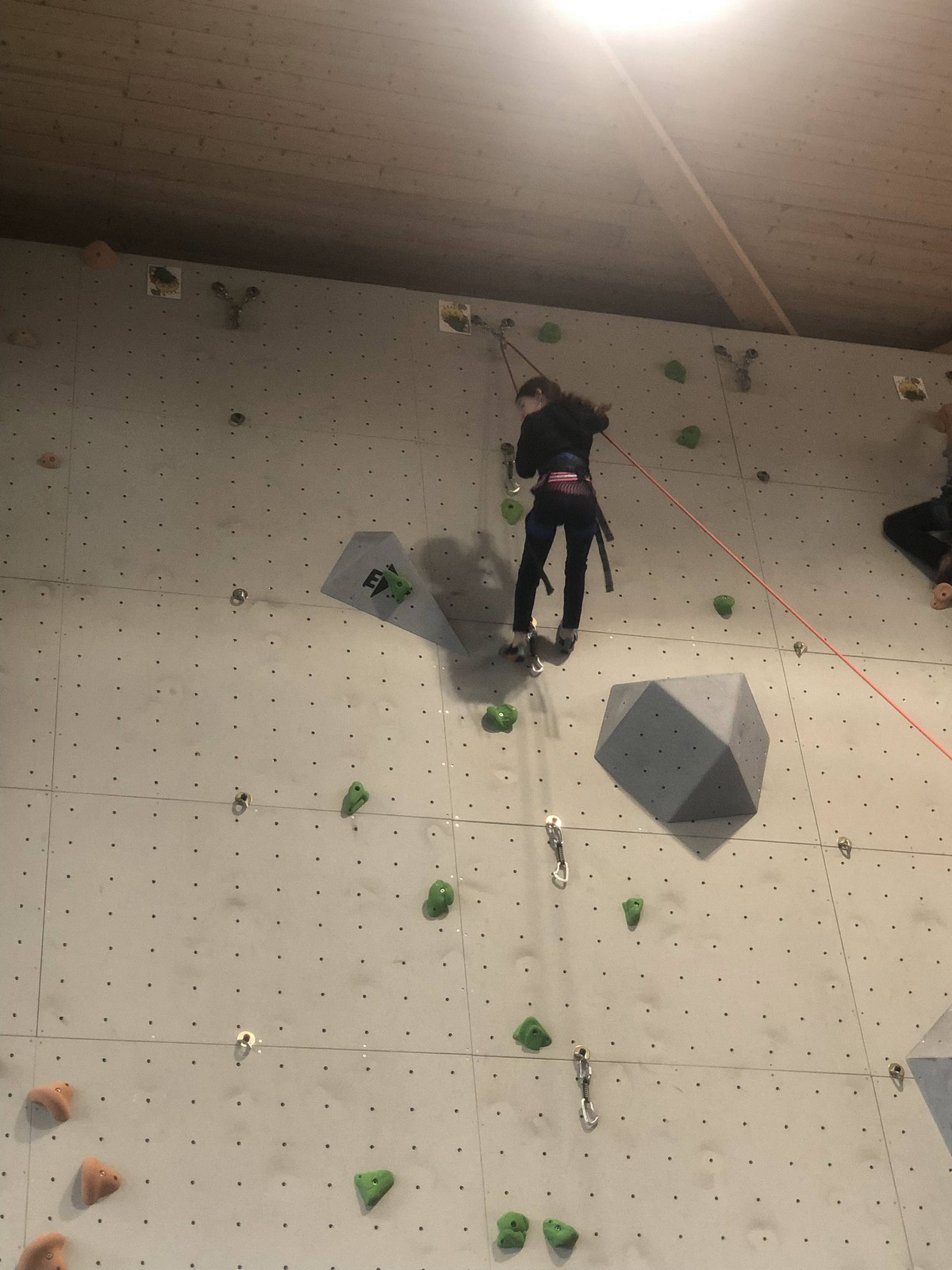 C’est la même voie pour les benjamins et Camille du Ski club part en premier. Ça monte bien mais tombe avant le jeté latéral.