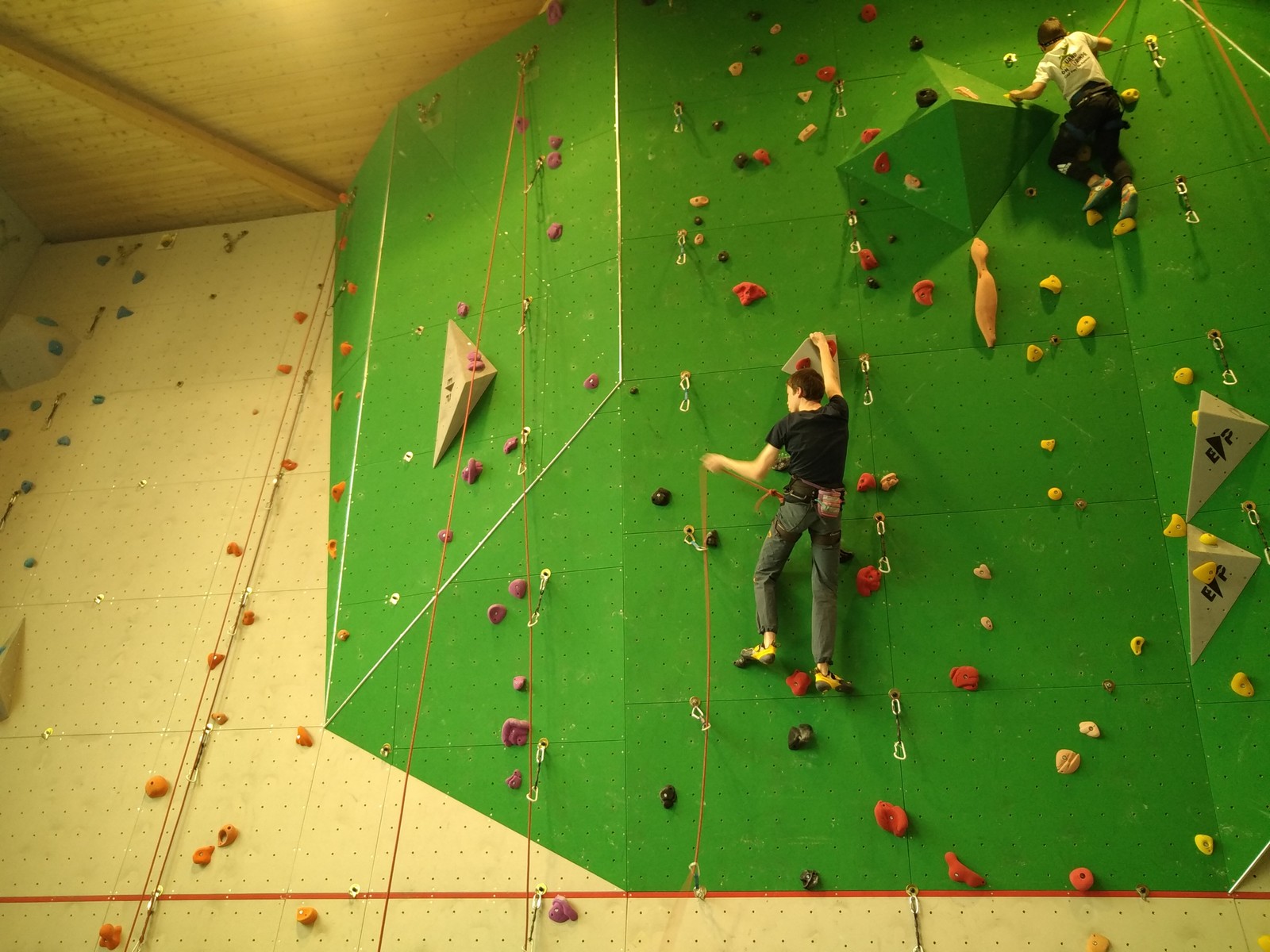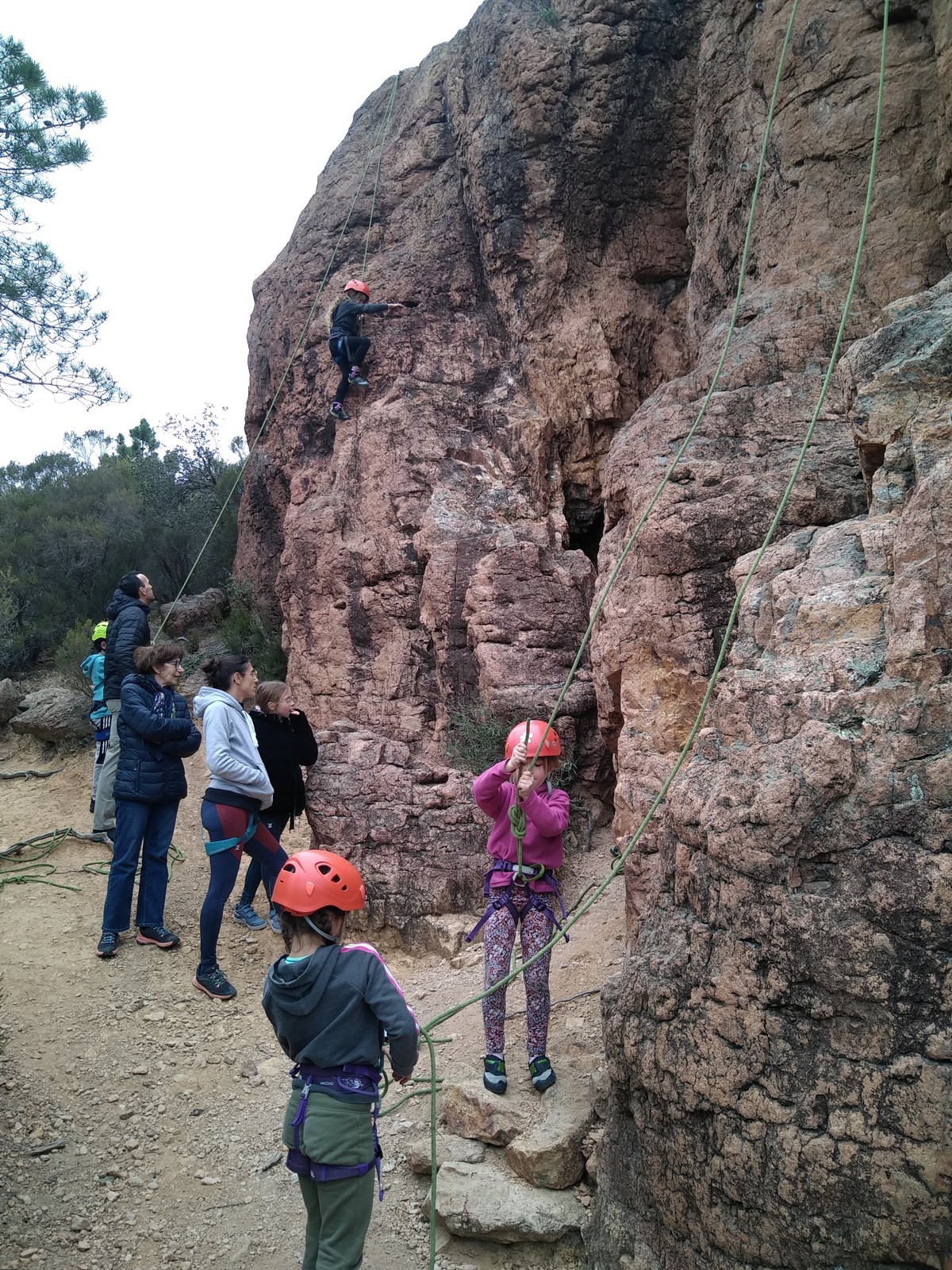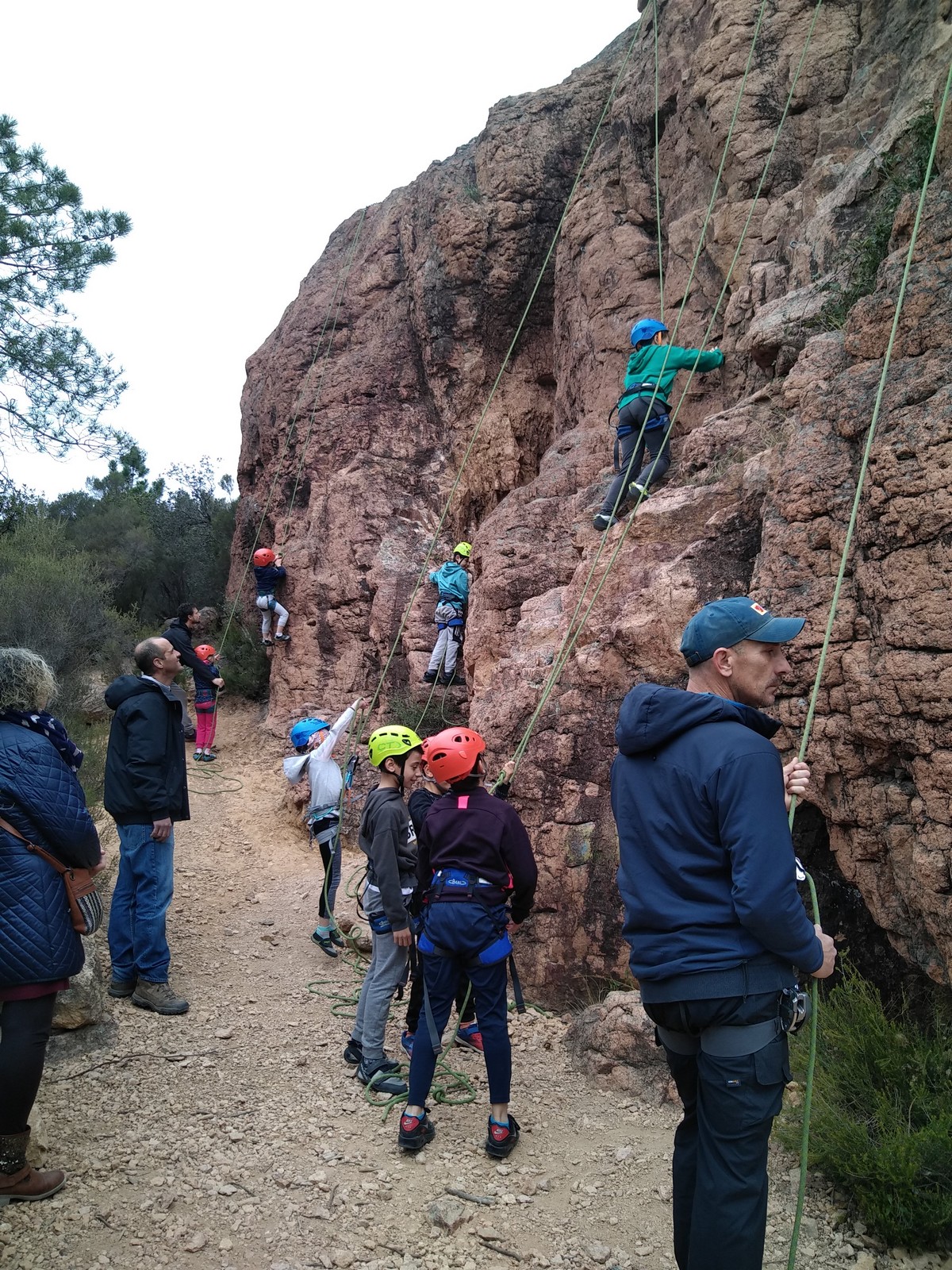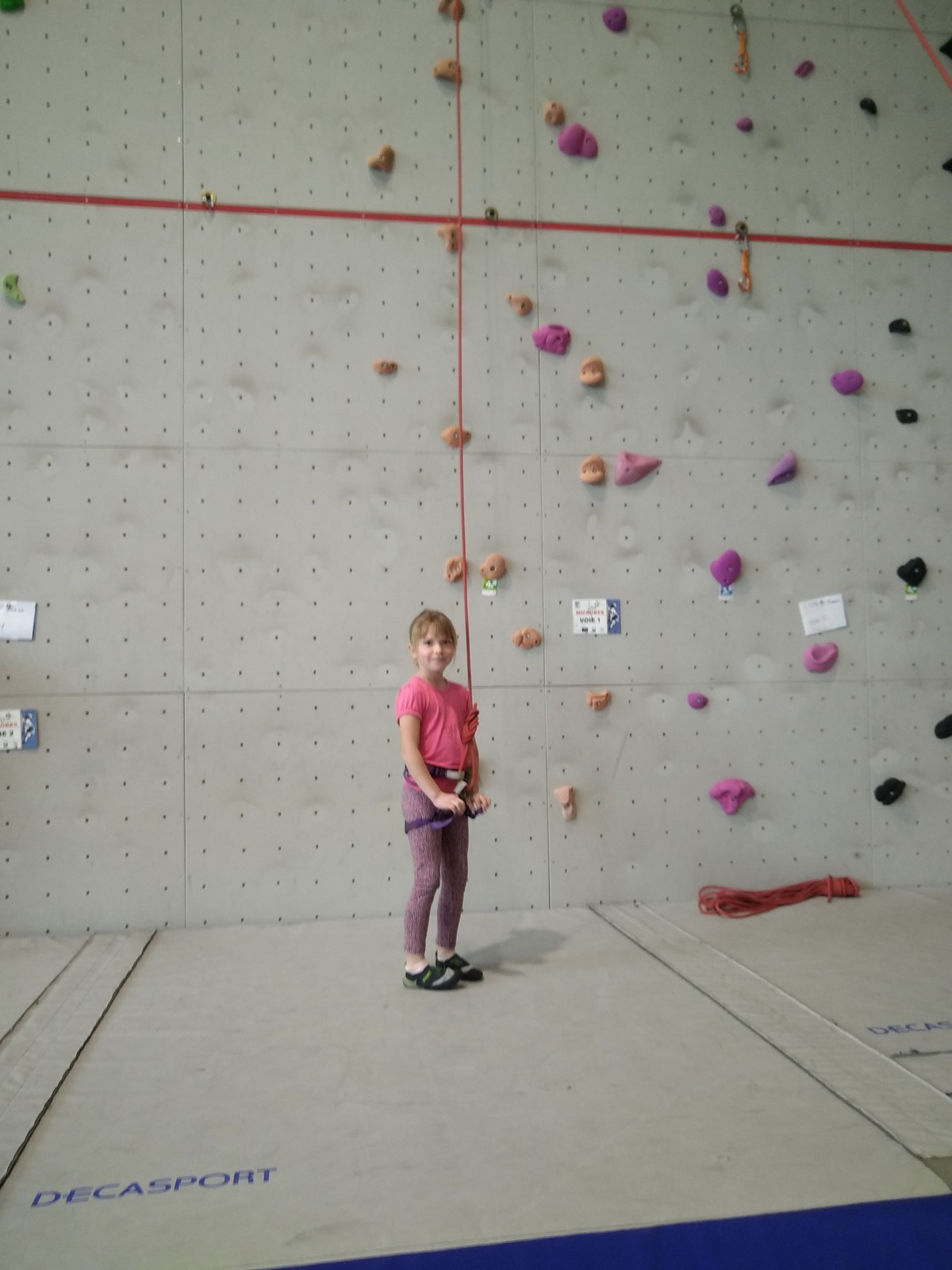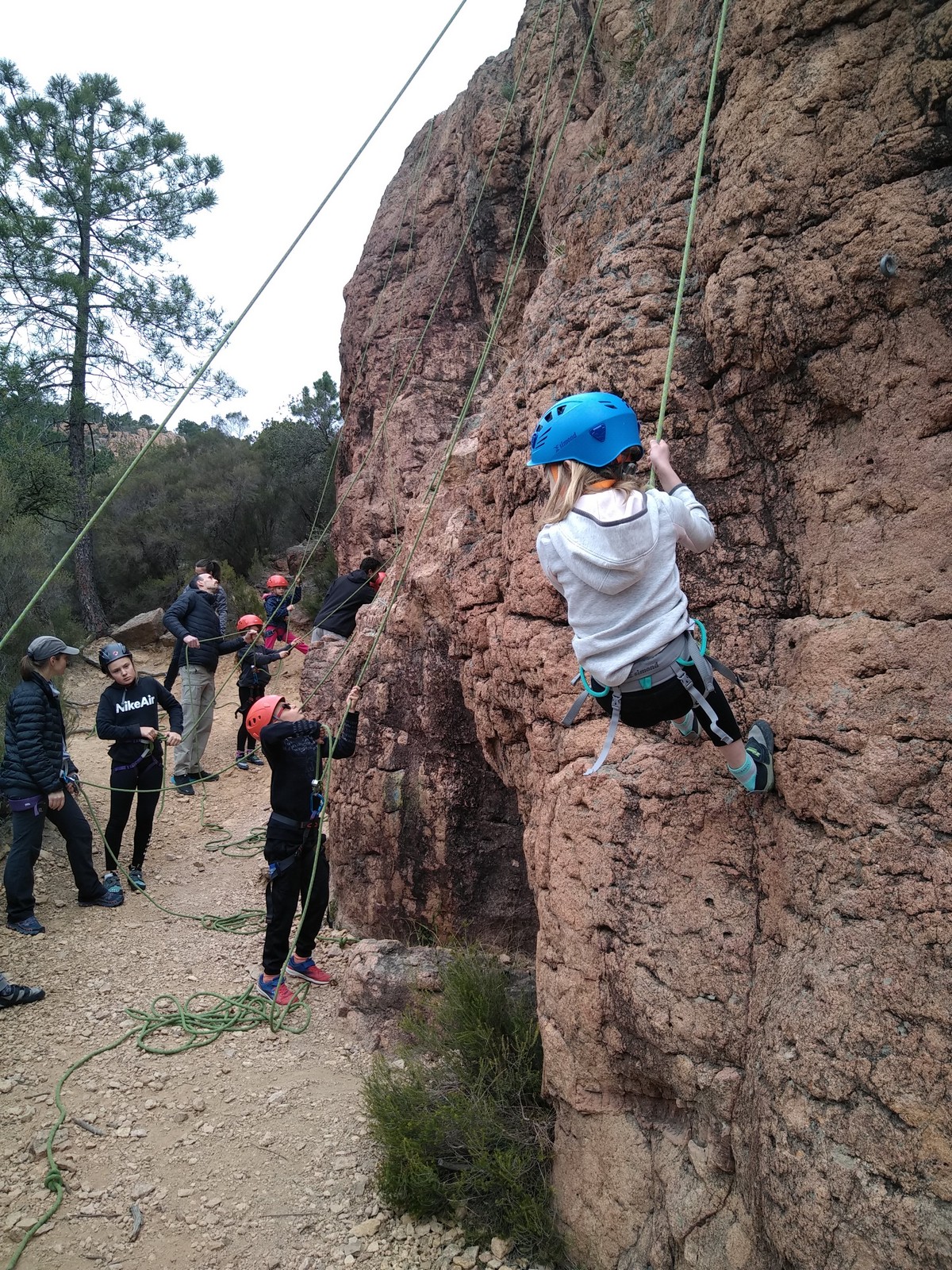 C’est la même voie pour les benjamins et Camille du Ski club part en premier. Ça monte bien mais tombe avant le jeté latéral.