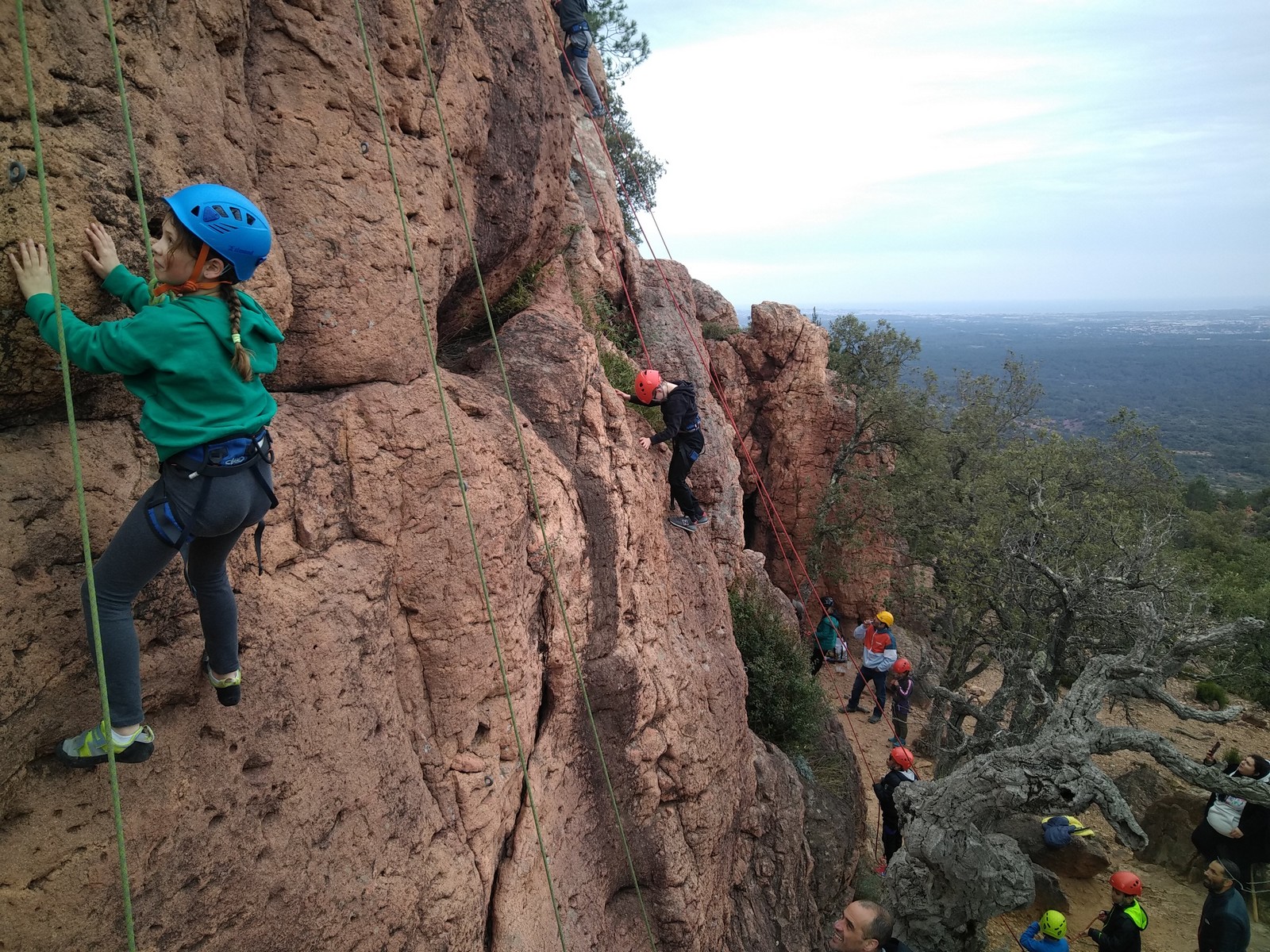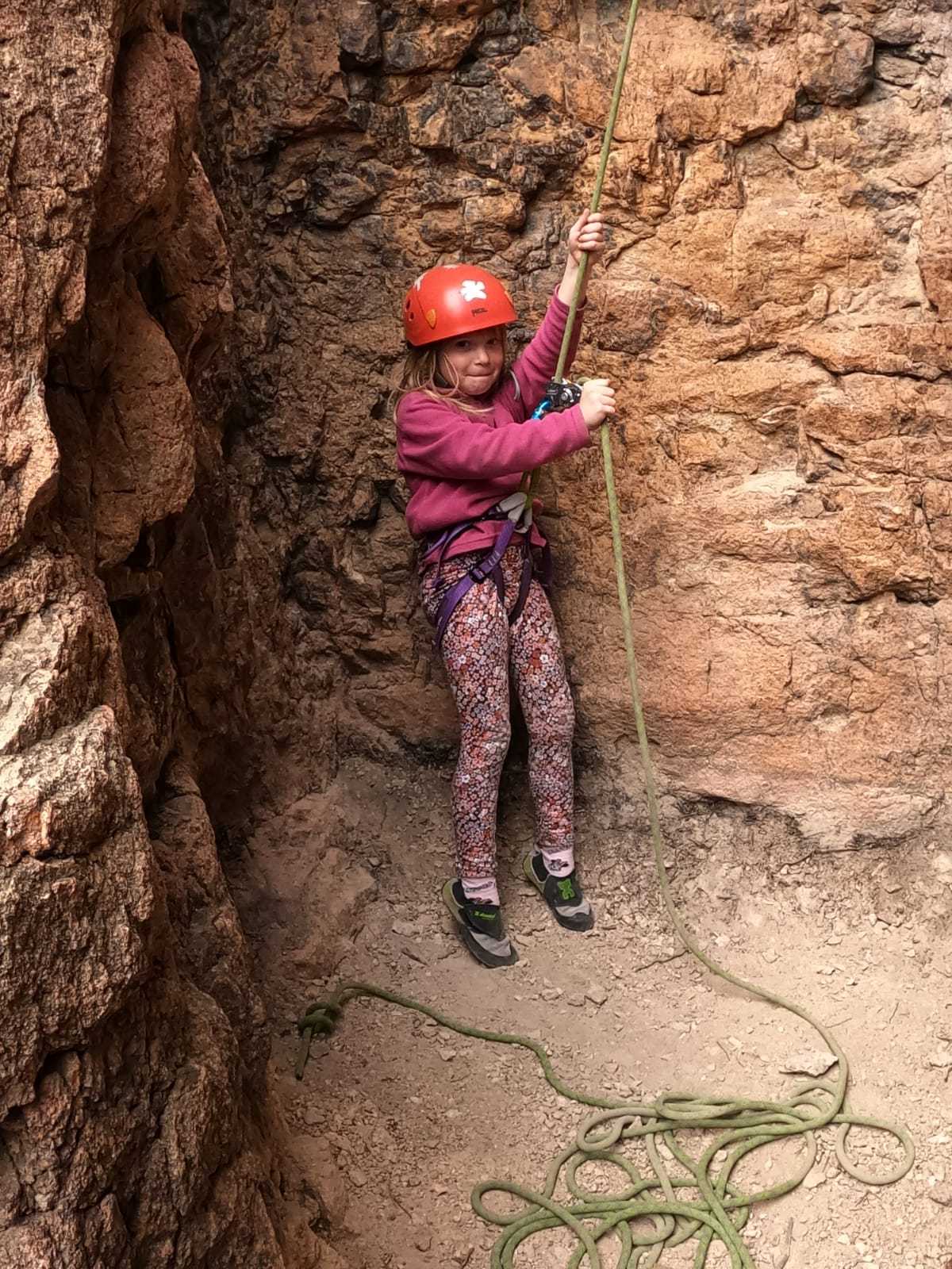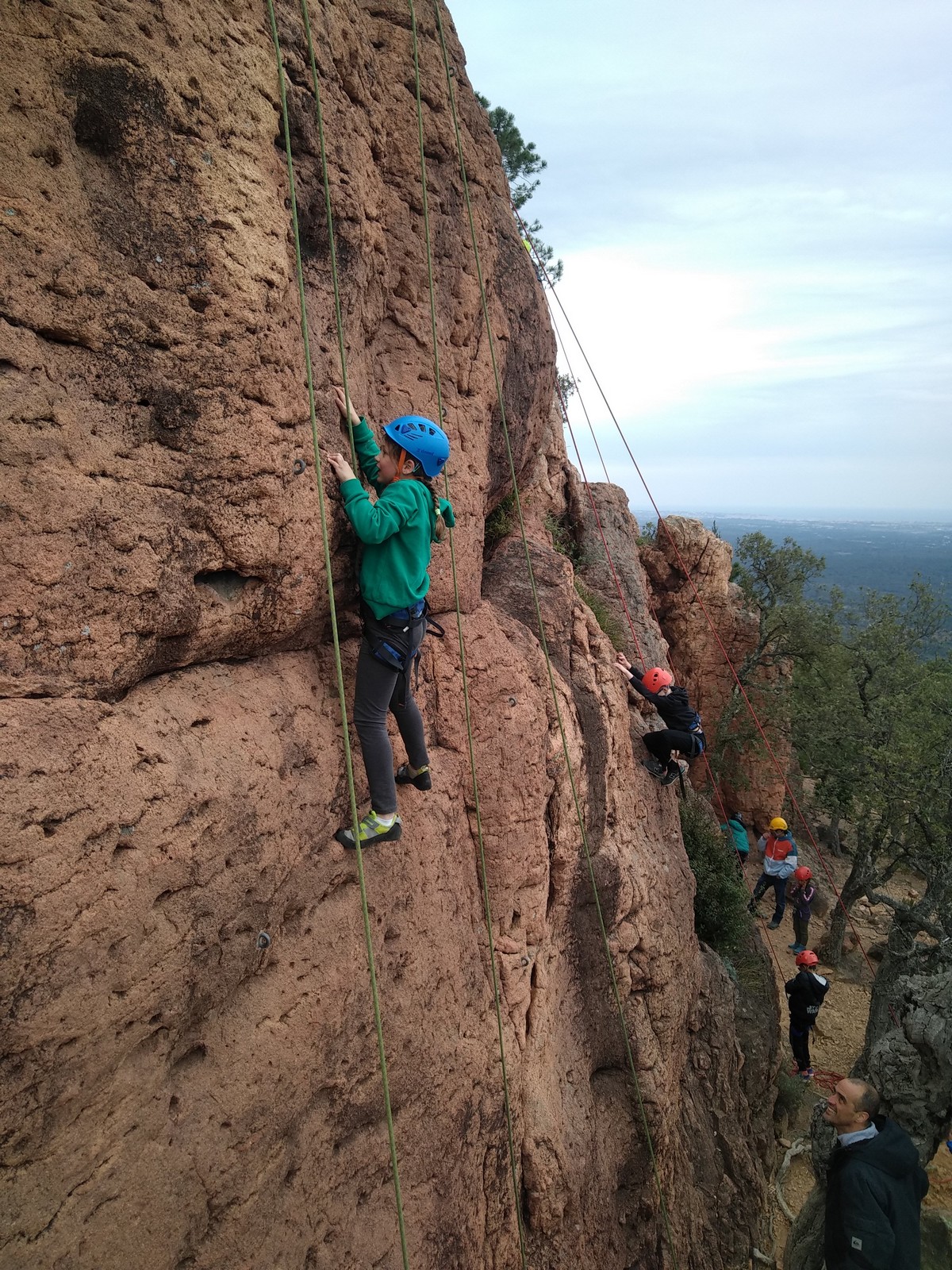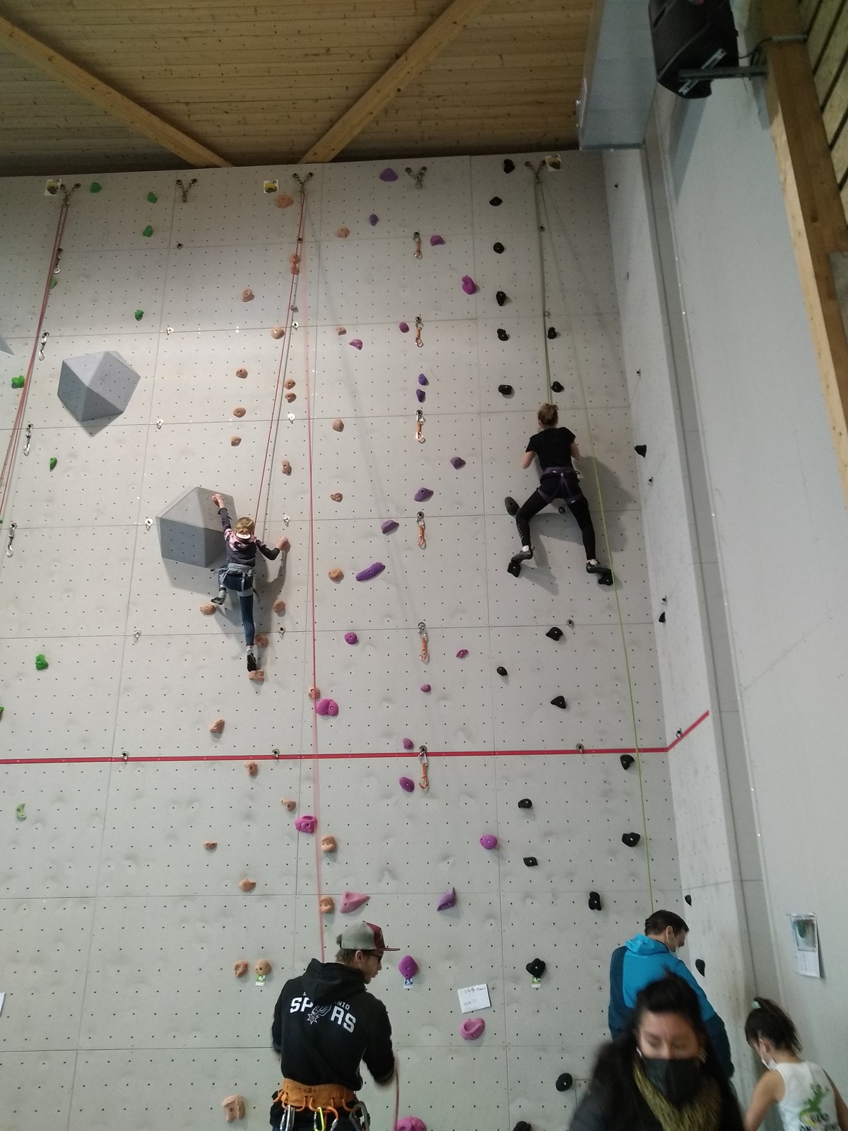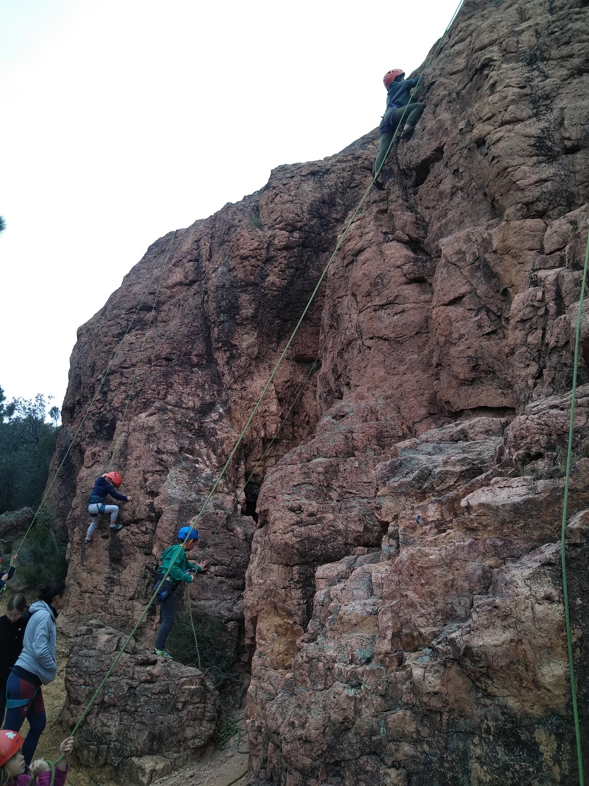 C’est la même voie pour les benjamins et Camille du Ski club part en premier. Ça monte bien mais tombe avant le jeté latéral.
