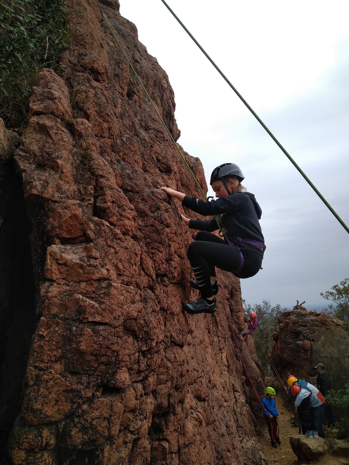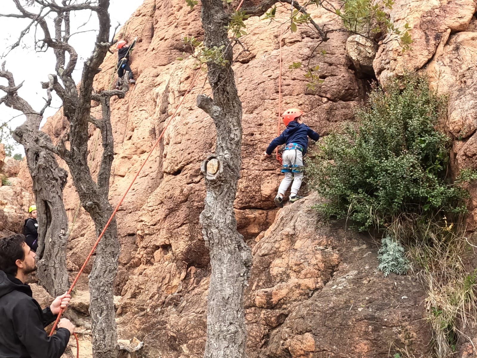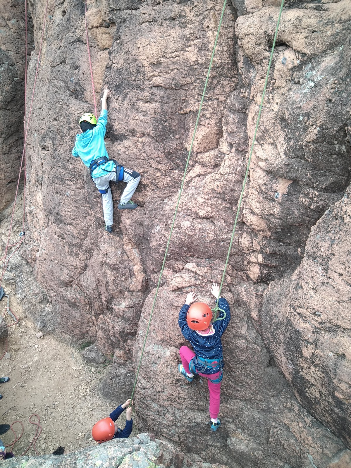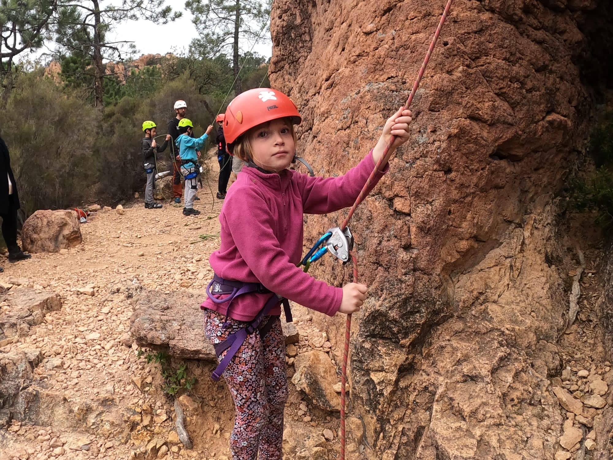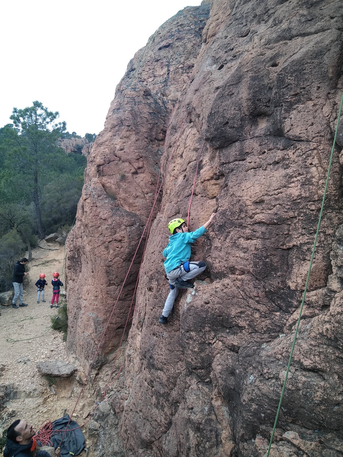 C’est la même voie pour les benjamins et Camille du Ski club part en premier. Ça monte bien mais tombe avant le jeté latéral.