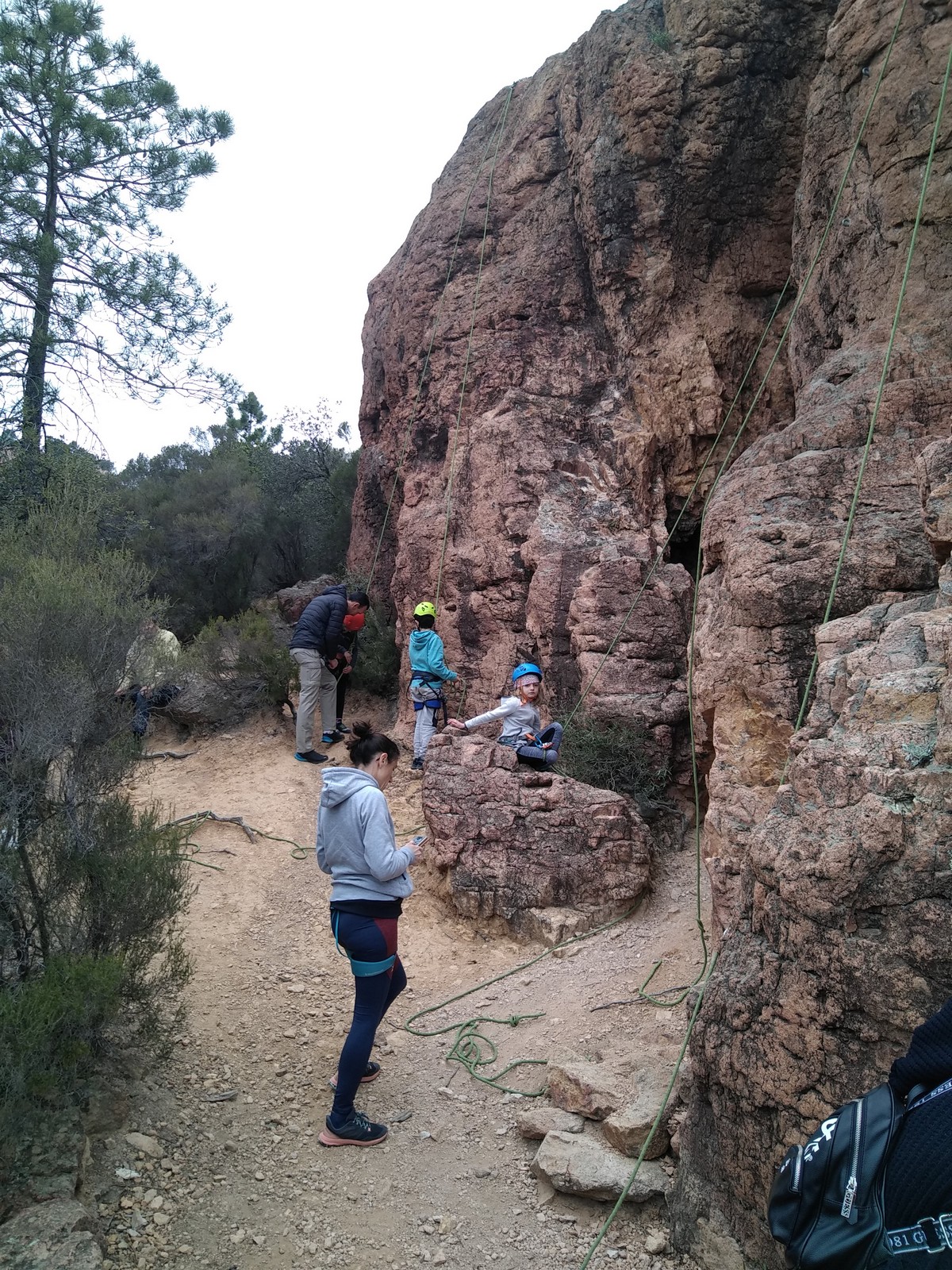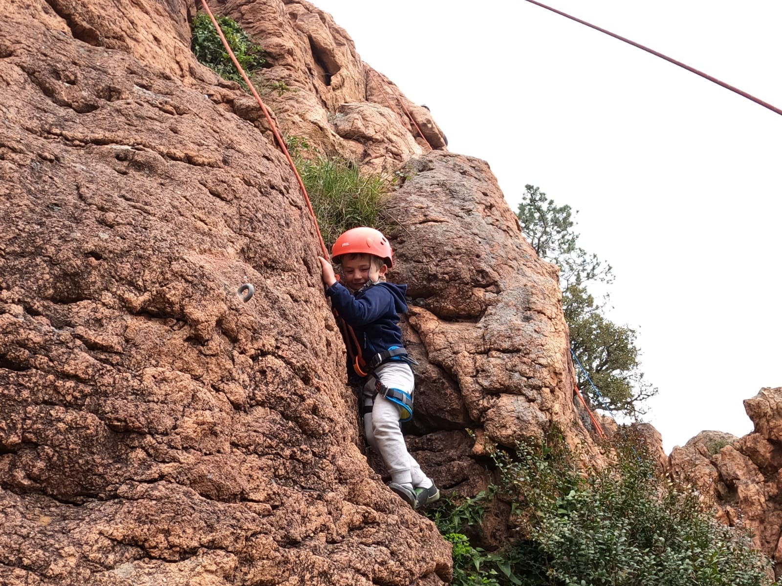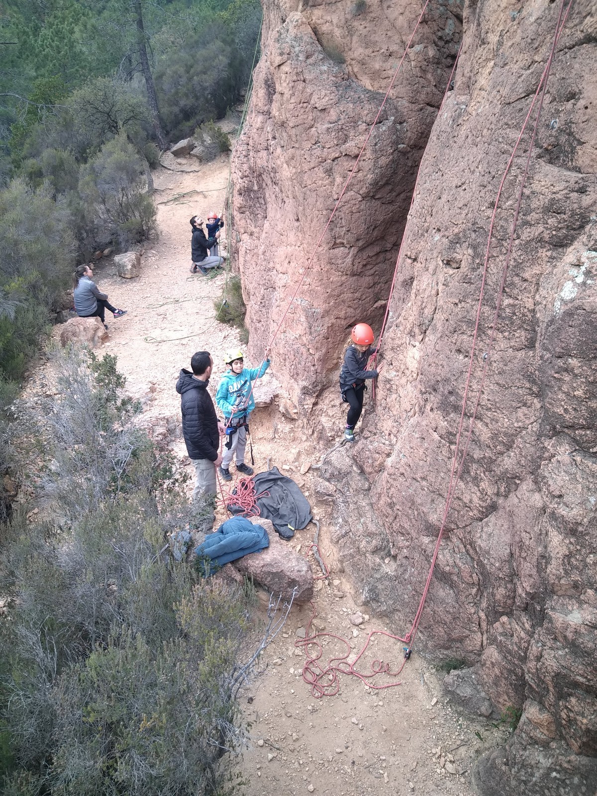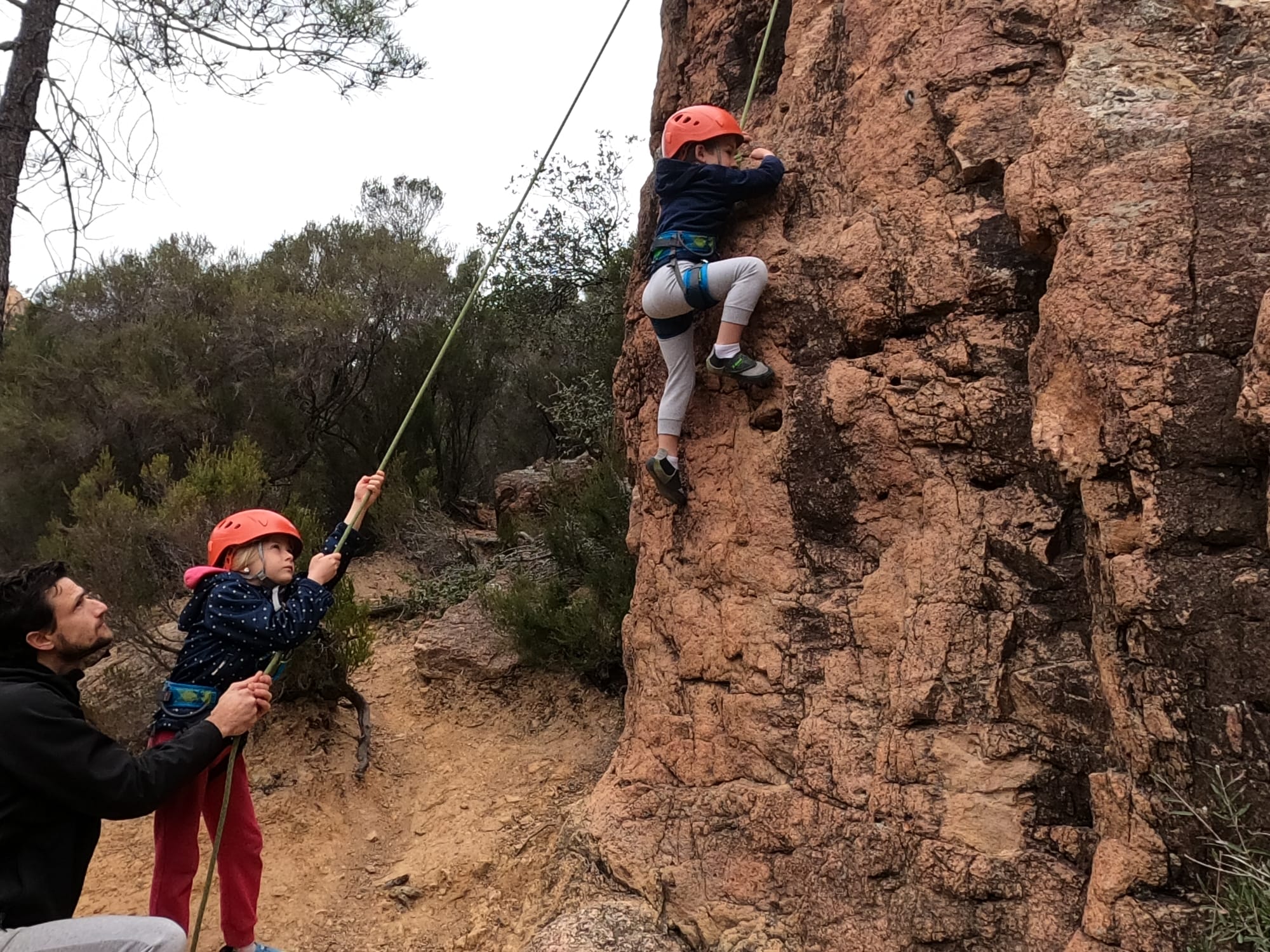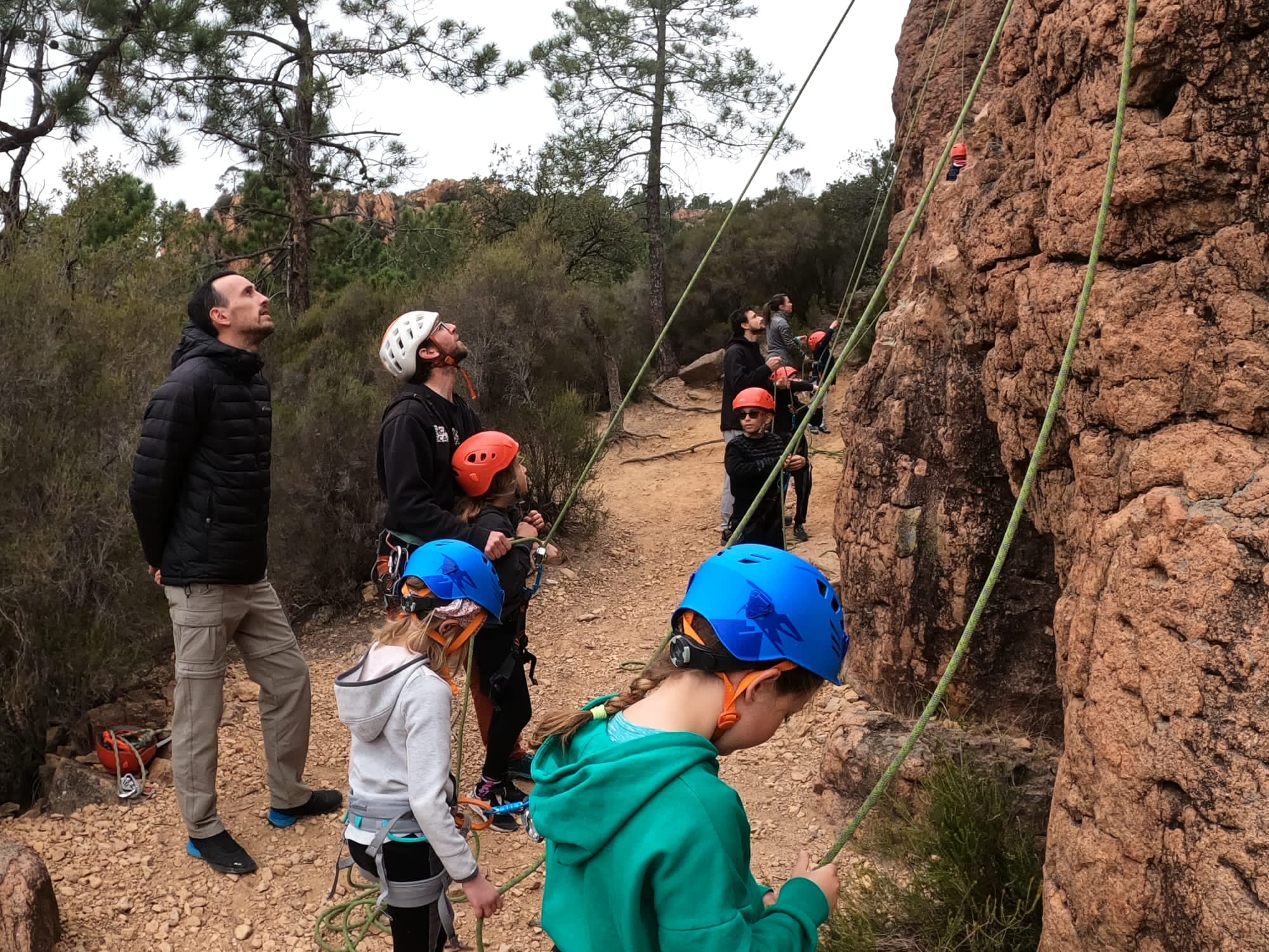 C’est la même voie pour les benjamins et Camille du Ski club part en premier. Ça monte bien mais tombe avant le jeté latéral.