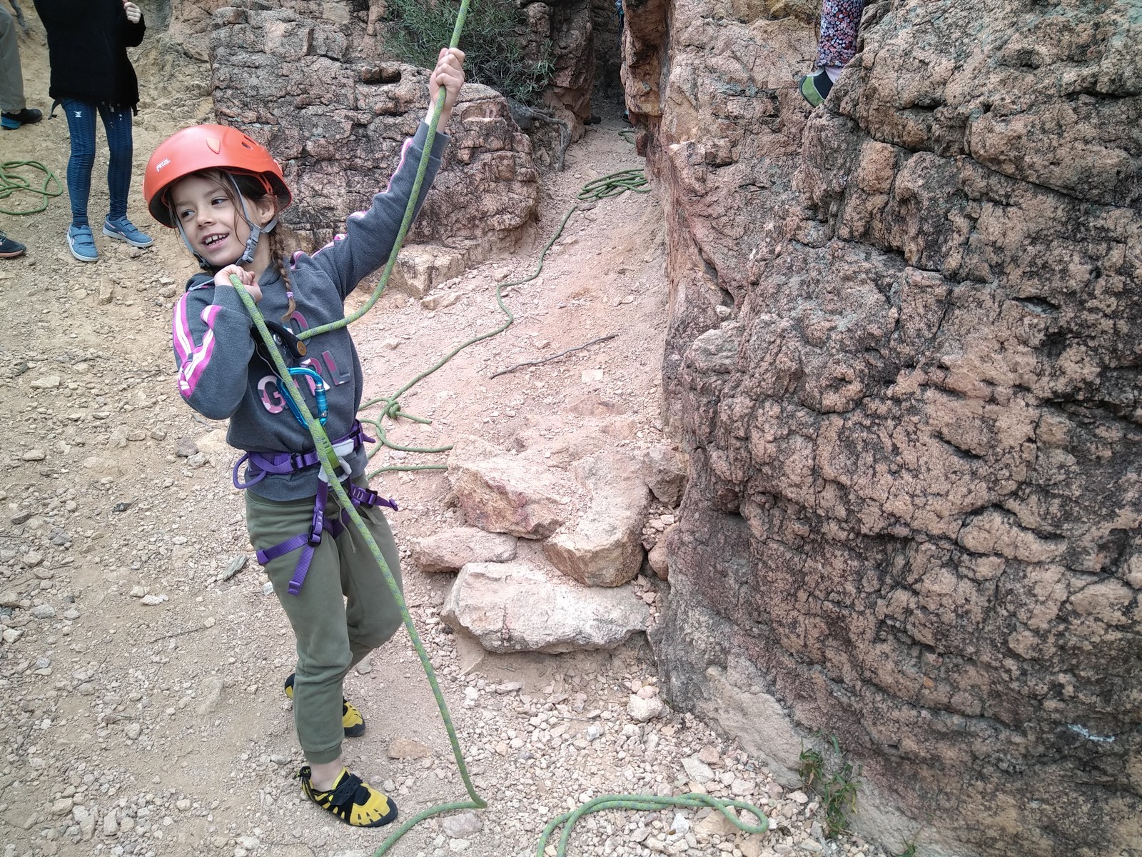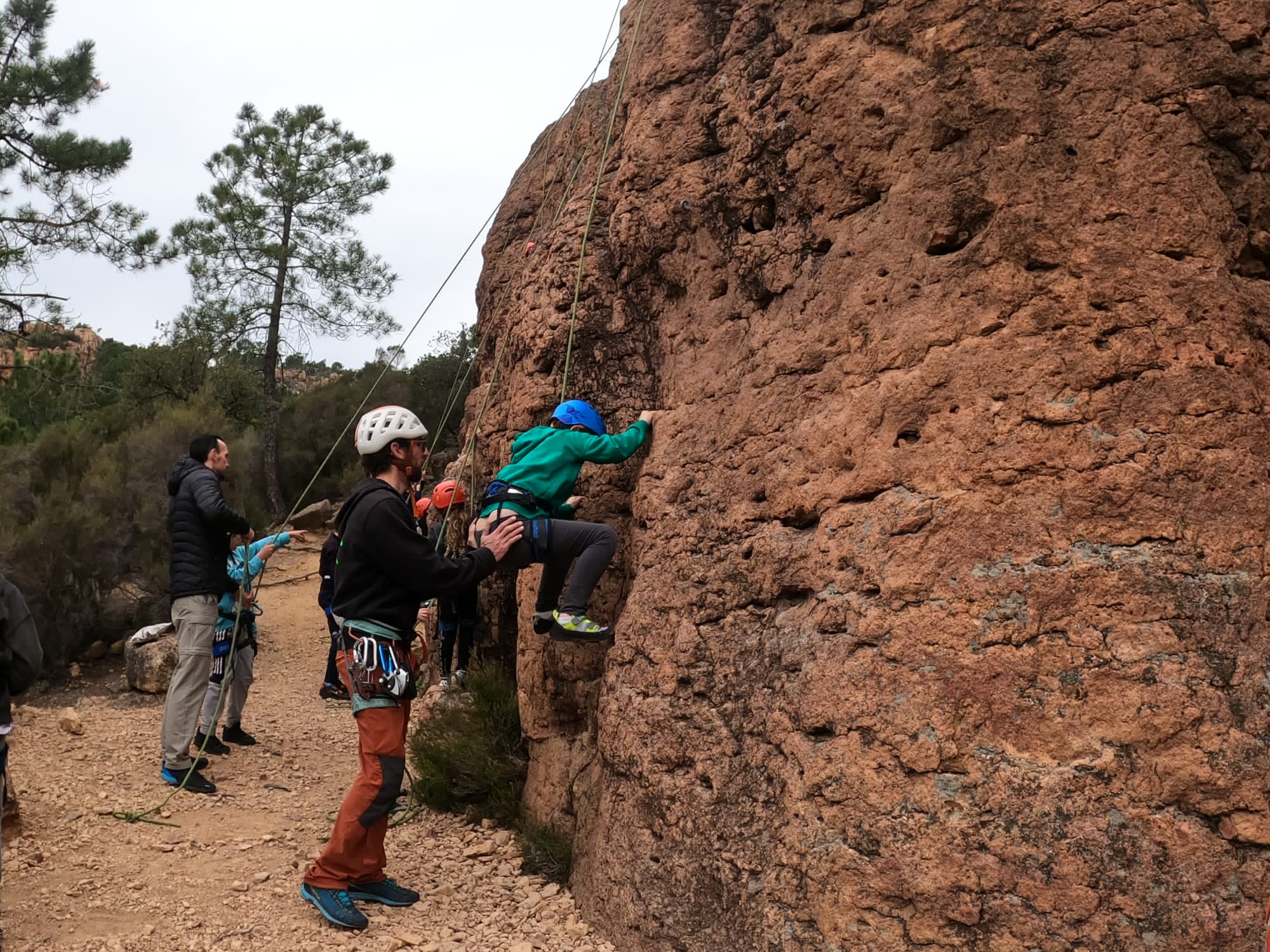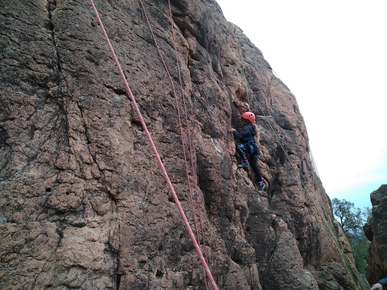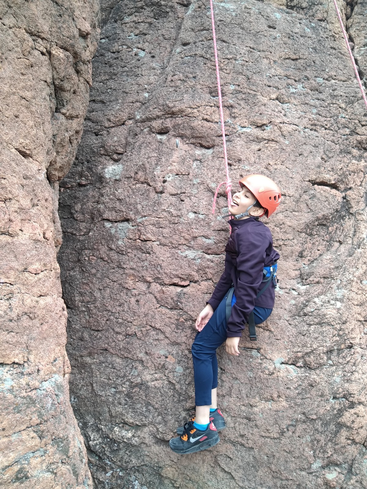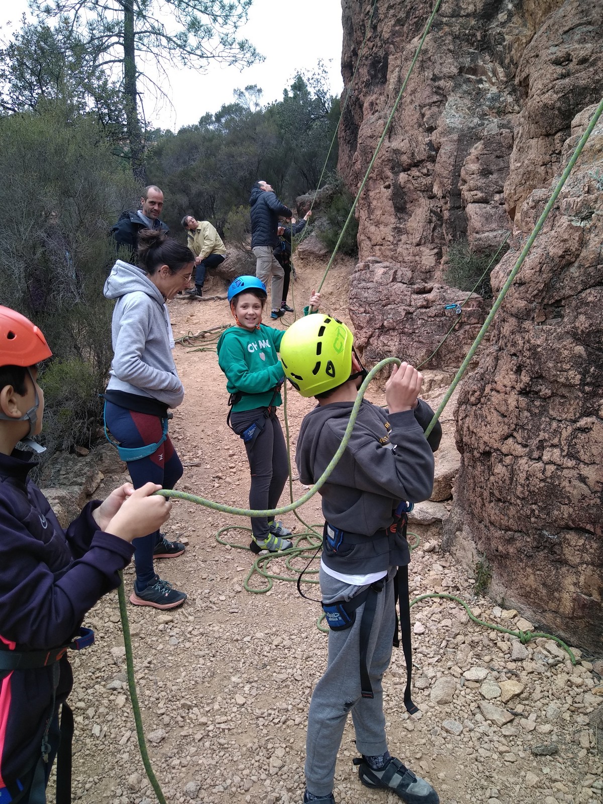 C’est la même voie pour les benjamins et Camille du Ski club part en premier. Ça monte bien mais tombe avant le jeté latéral.