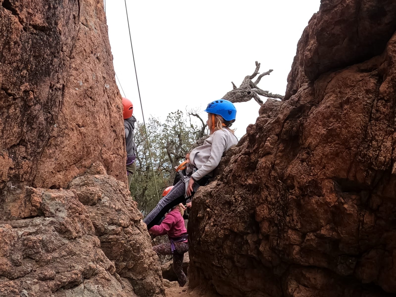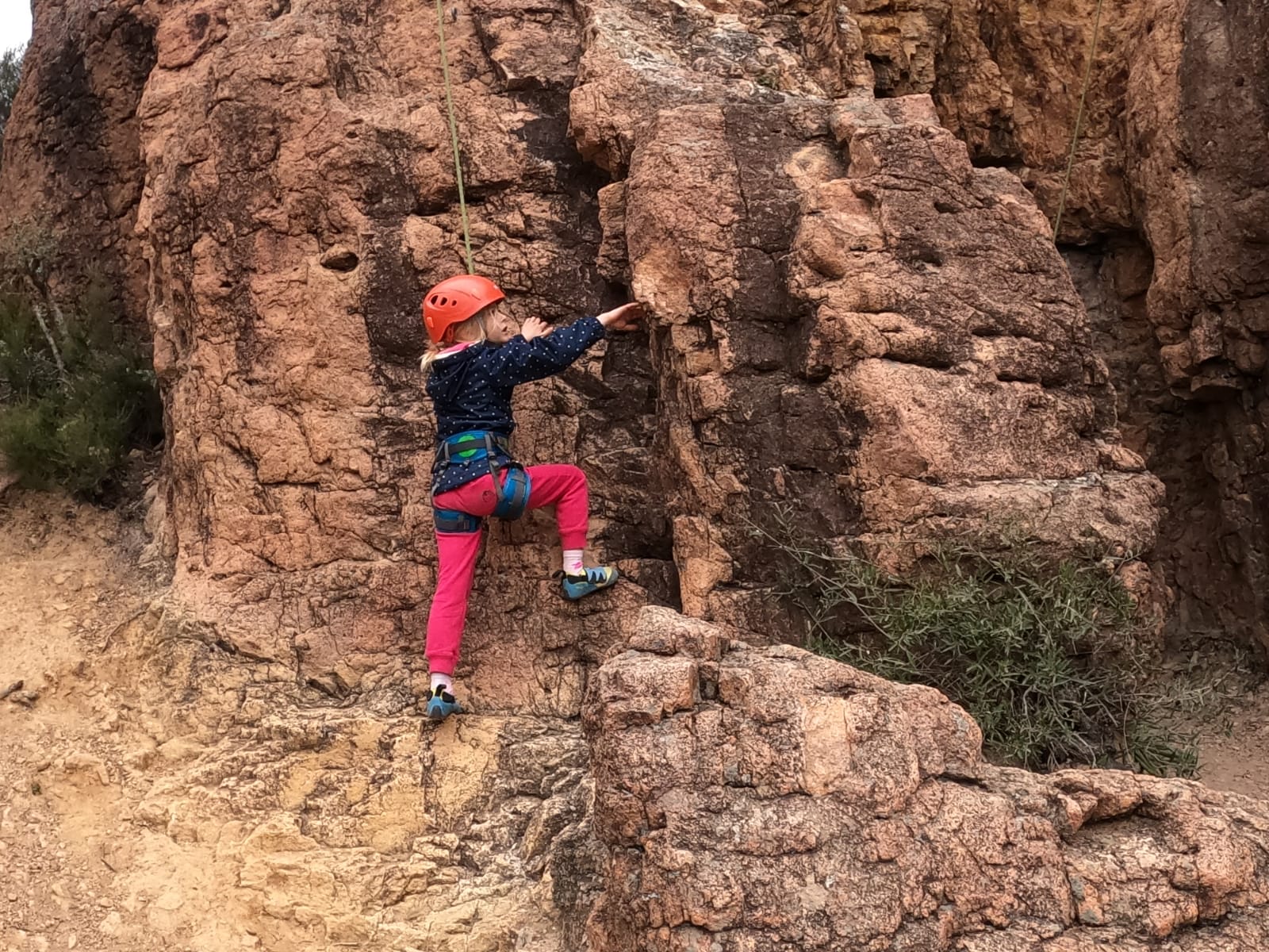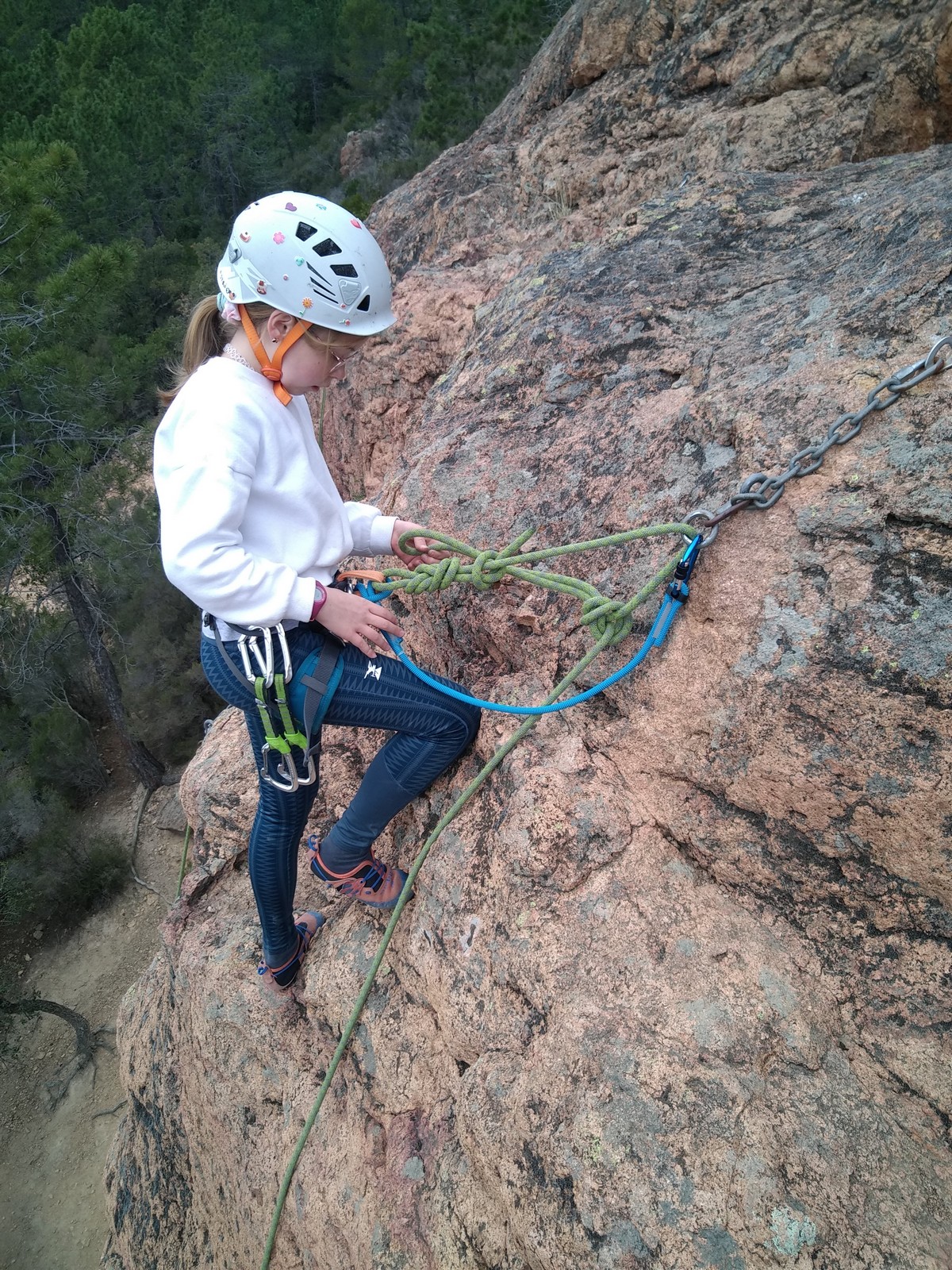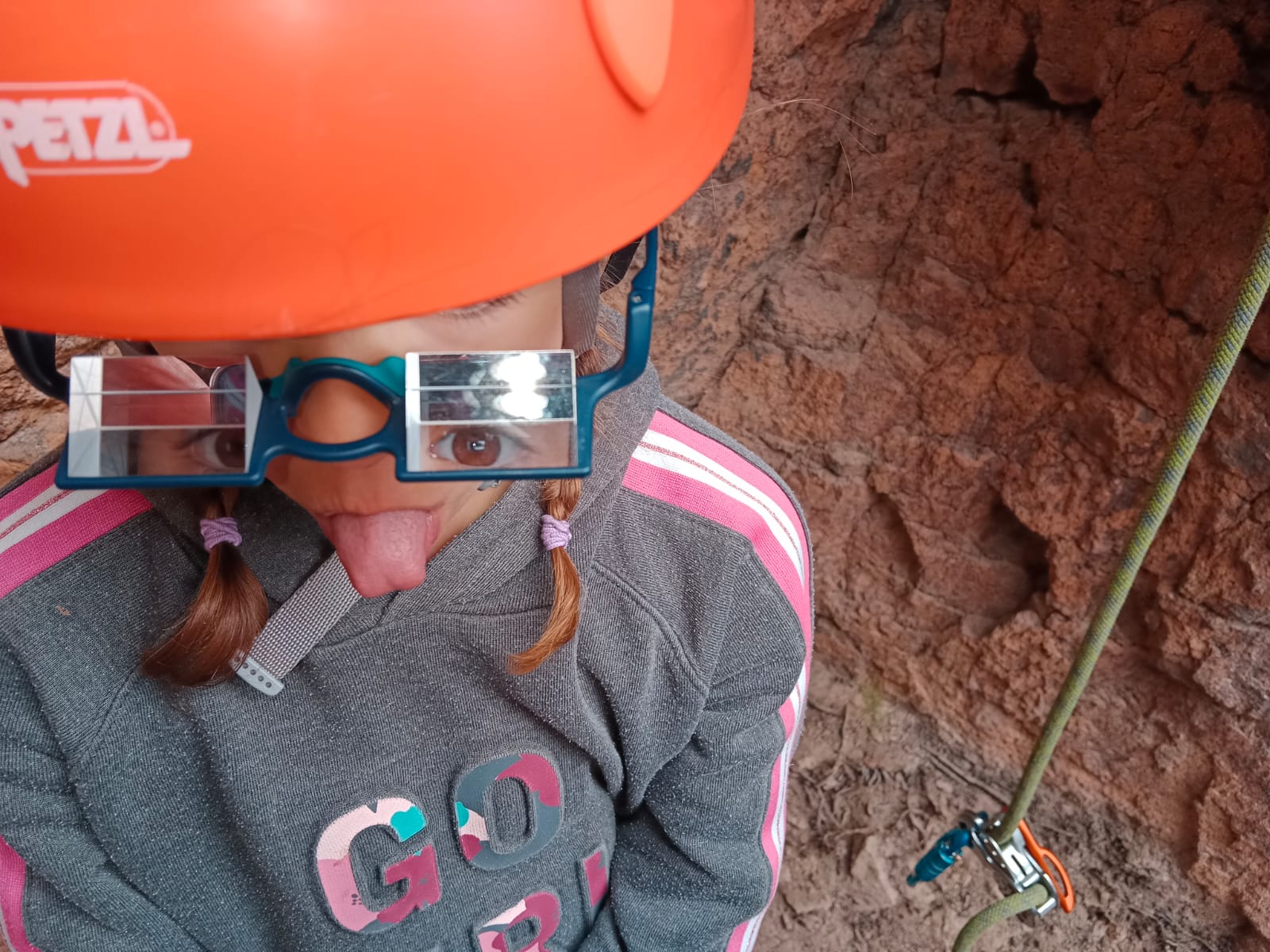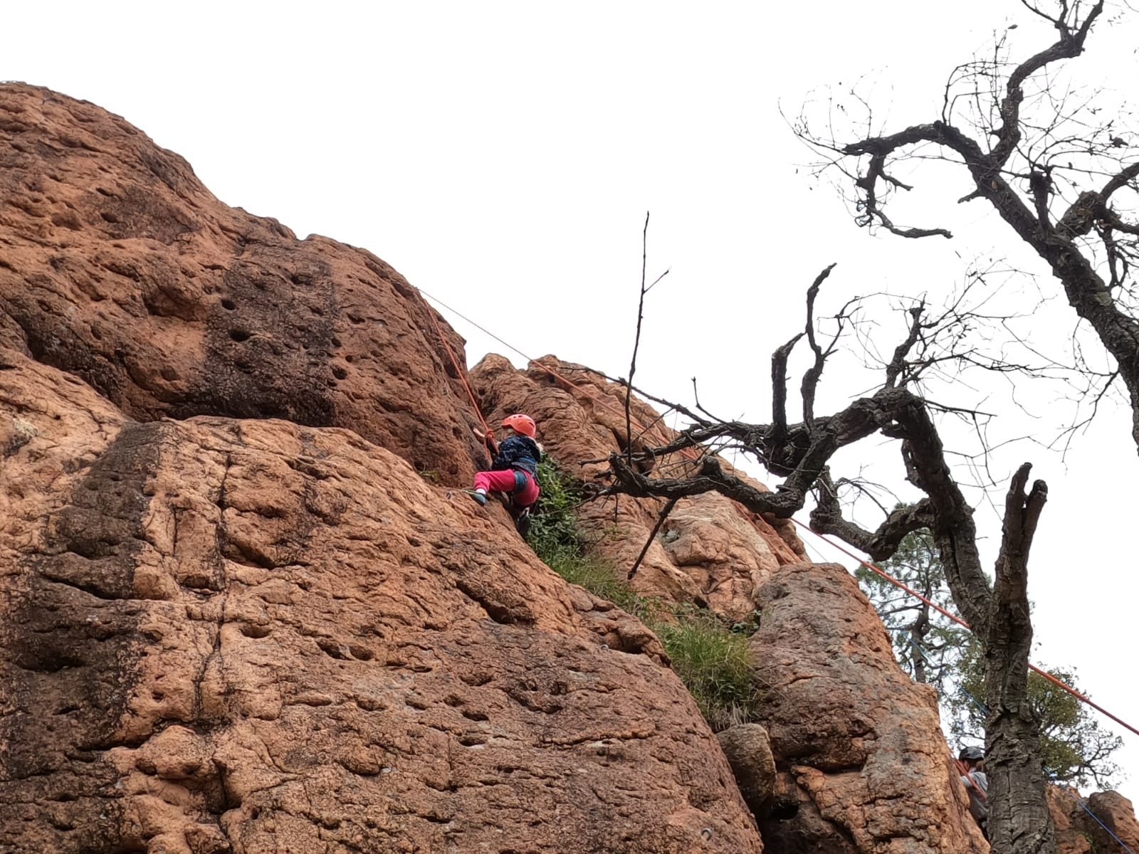 C’est la même voie pour les benjamins et Camille du Ski club part en premier. Ça monte bien mais tombe avant le jeté latéral.