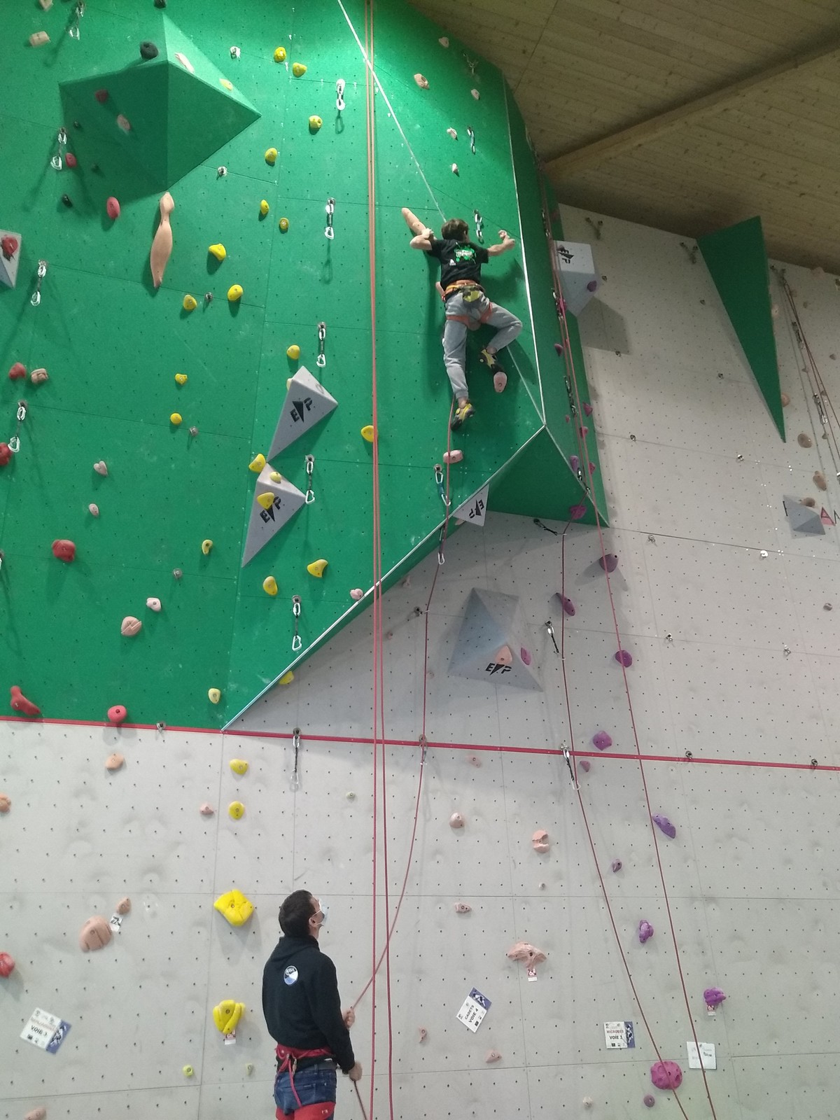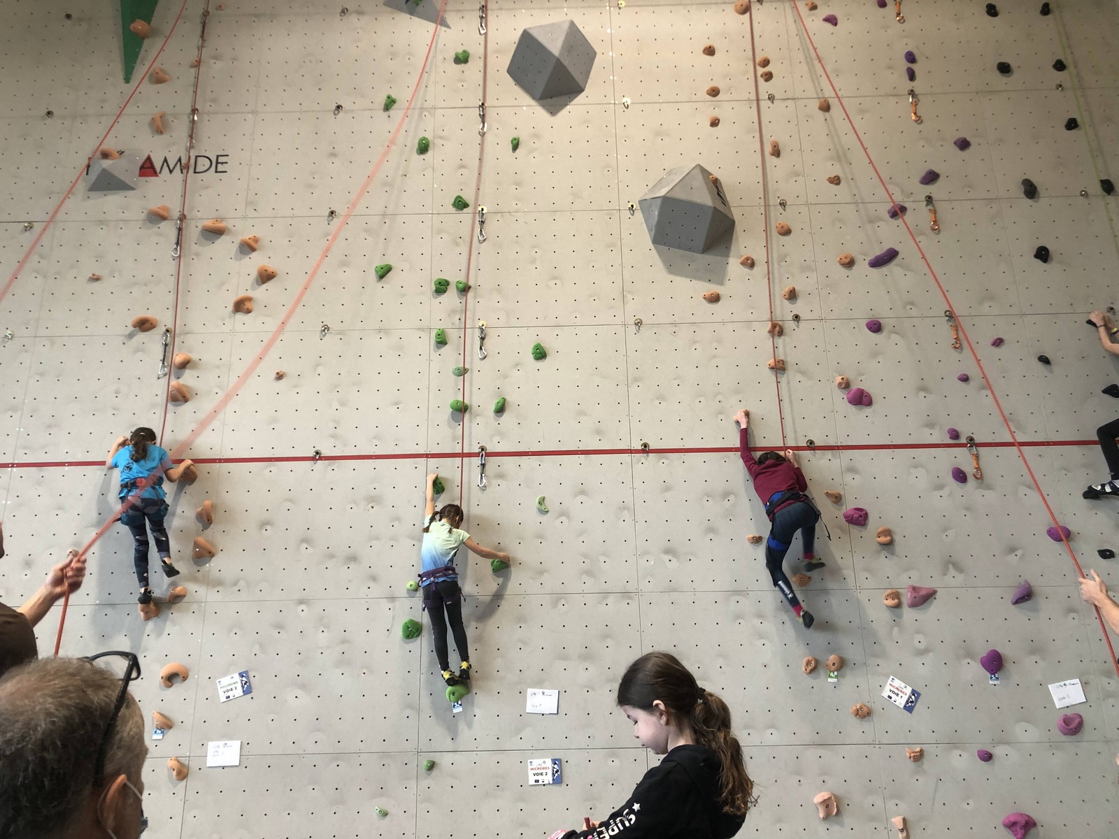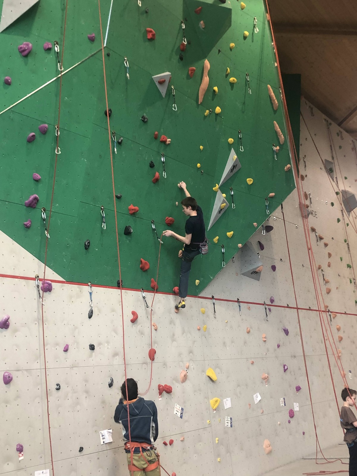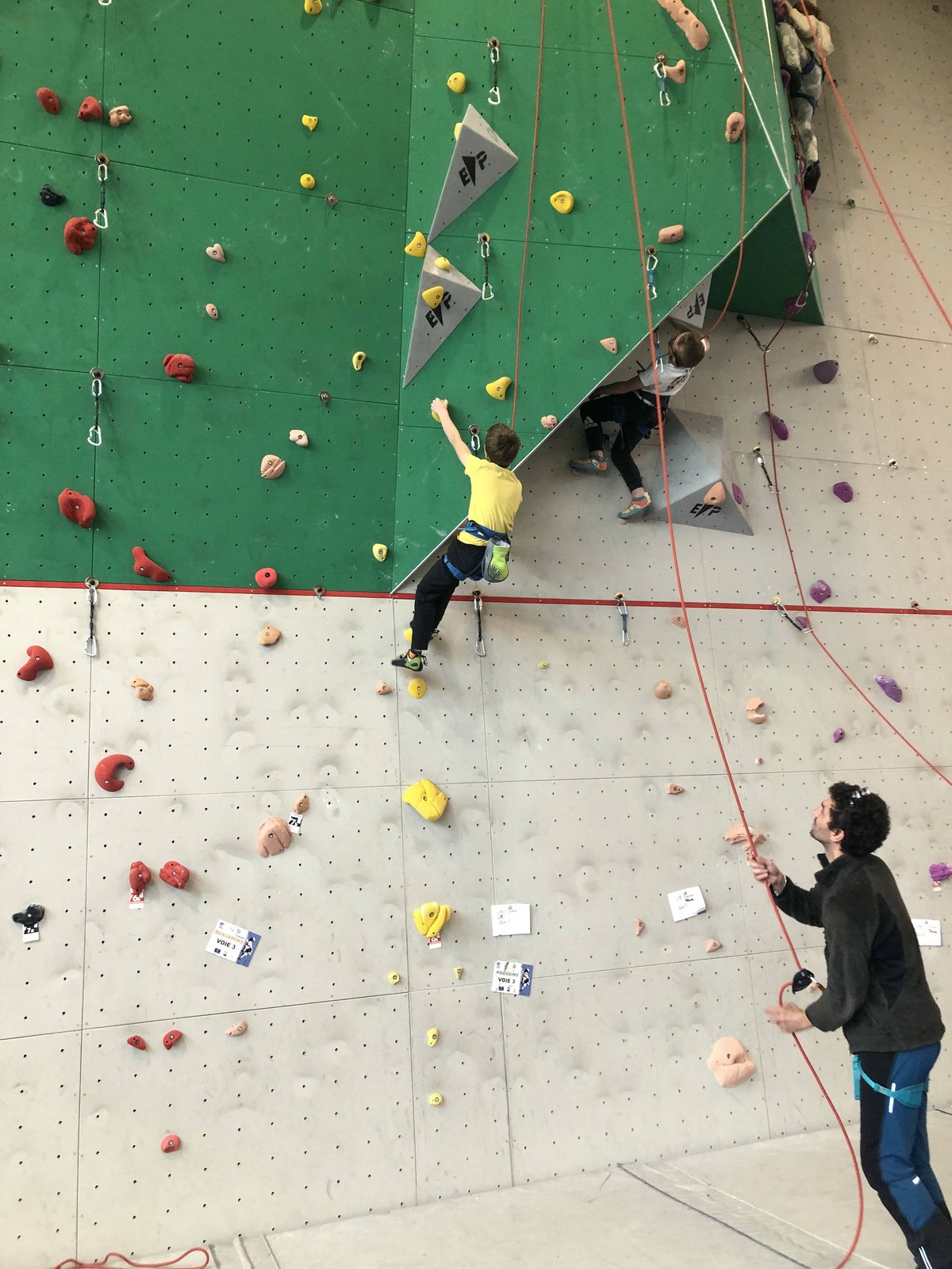 Ils sont donc 6 à s’élancer. Parmi les premiers, Noam de l’ASSA pose le tableau : il tombe à la toute fin de la voie.