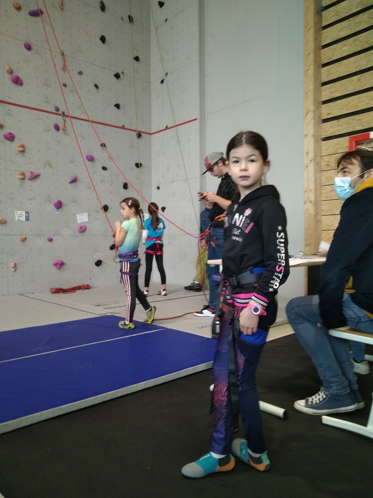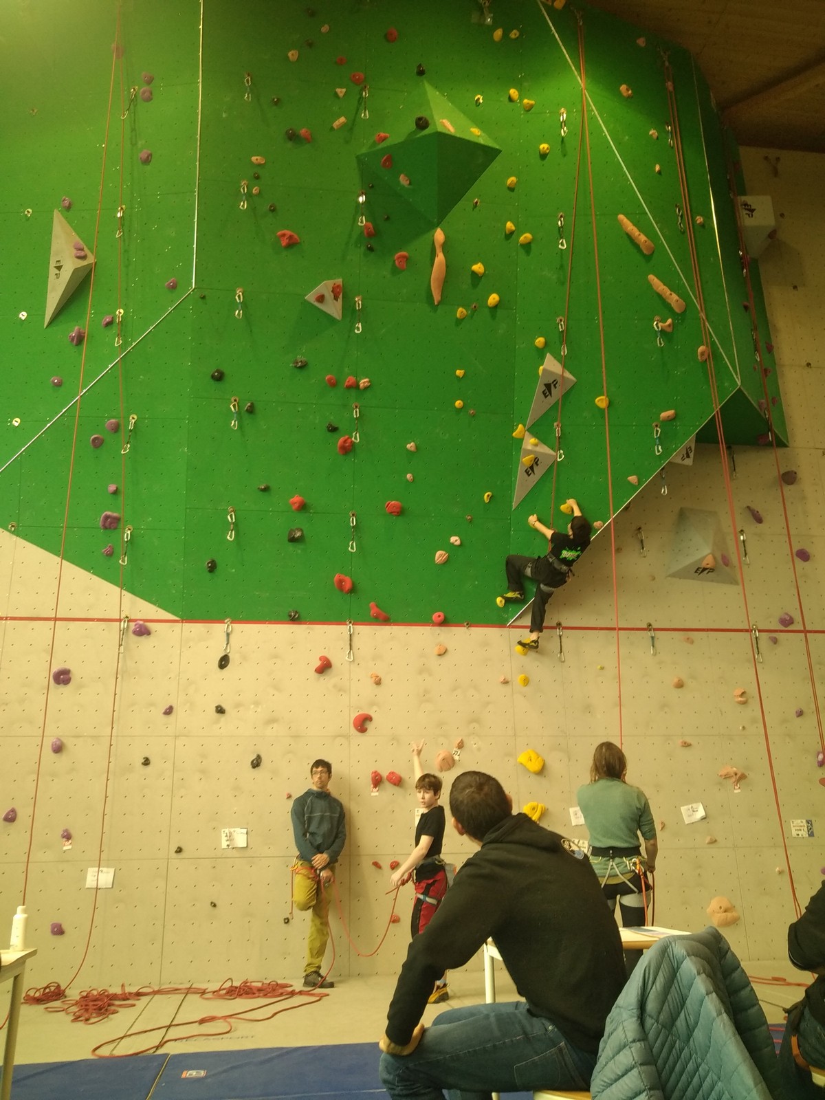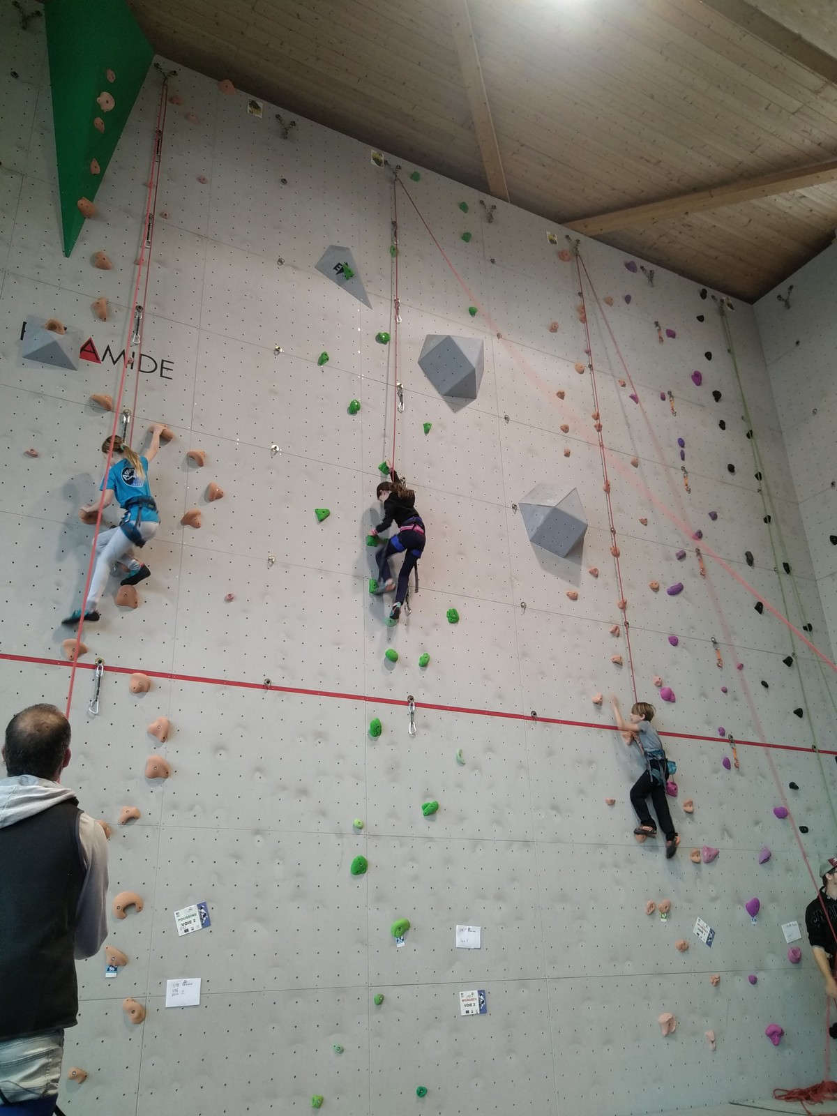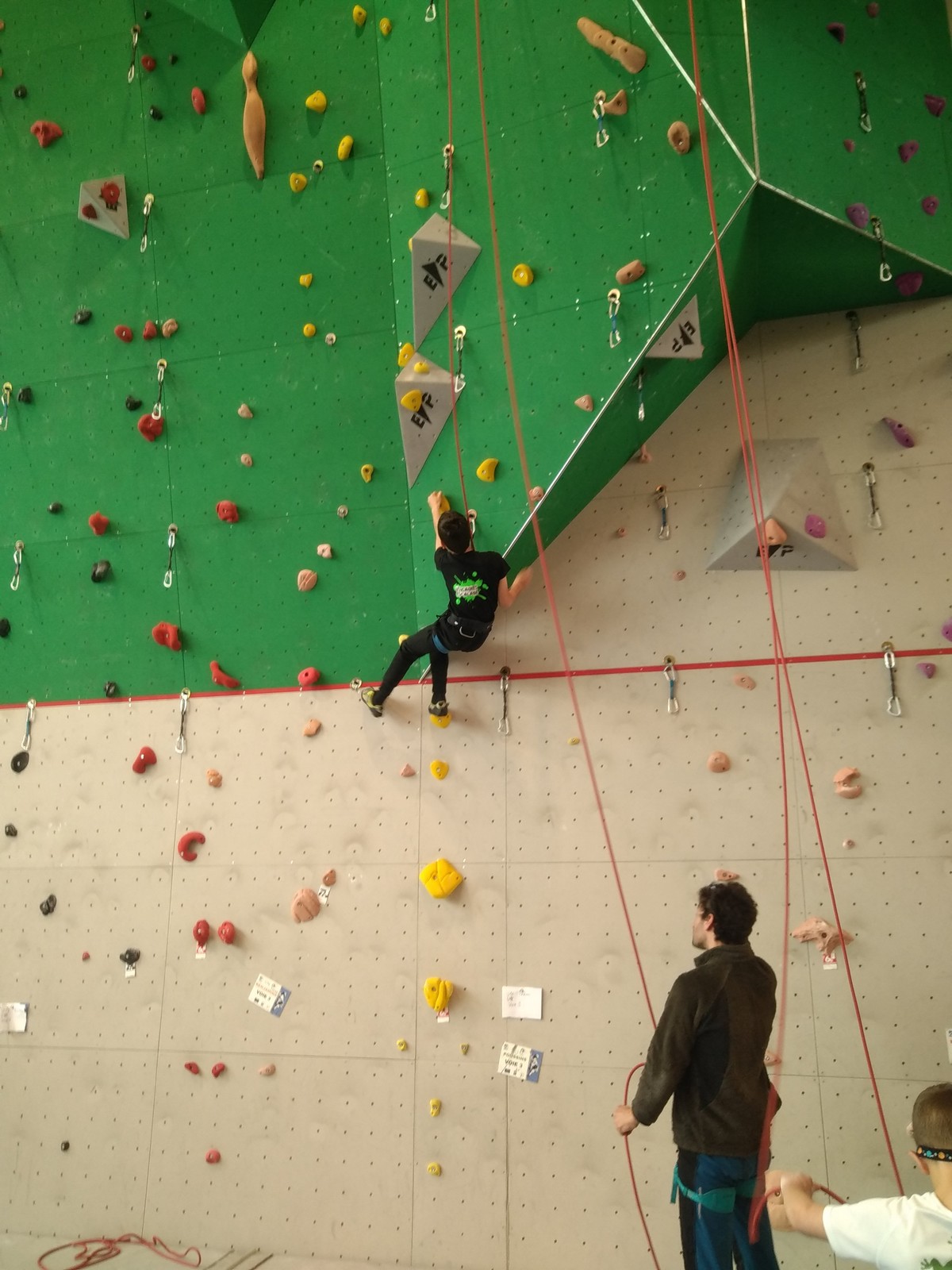 Ils sont donc 6 à s’élancer. Parmi les premiers, Noam de l’ASSA pose le tableau : il tombe à la toute fin de la voie.