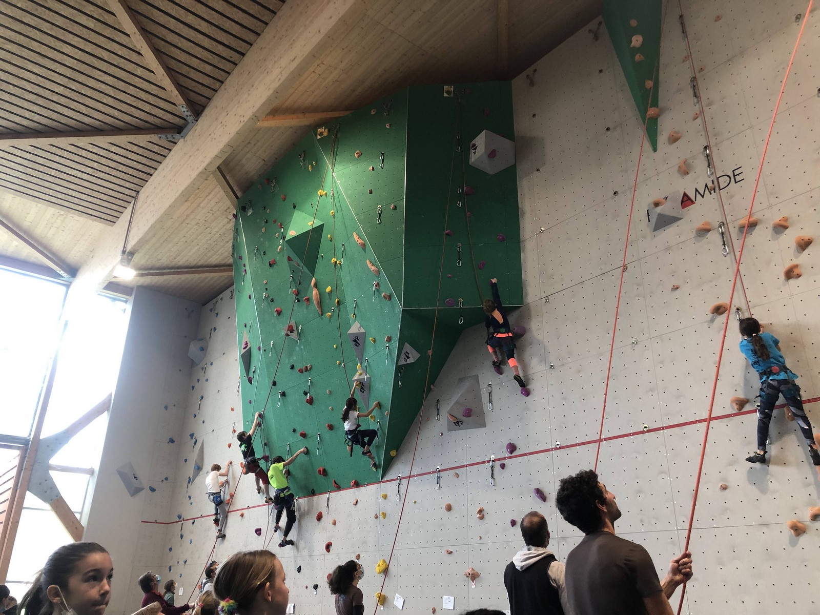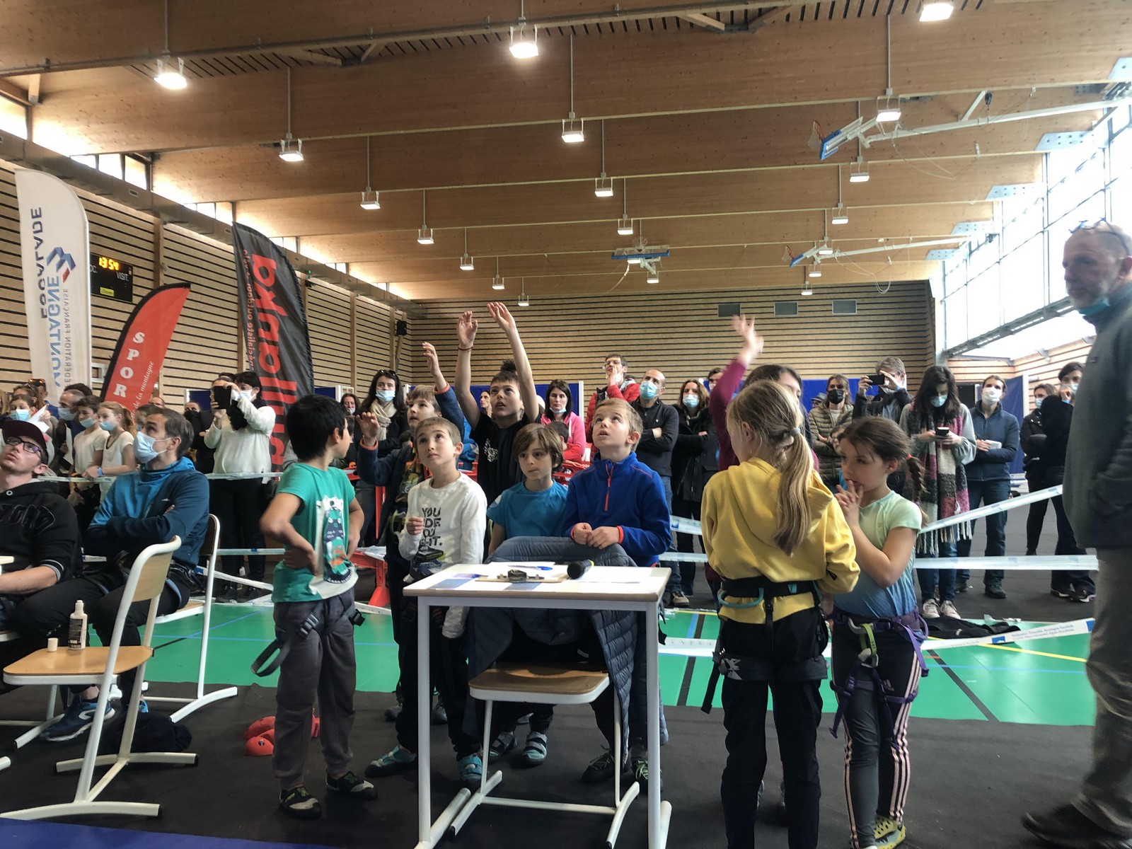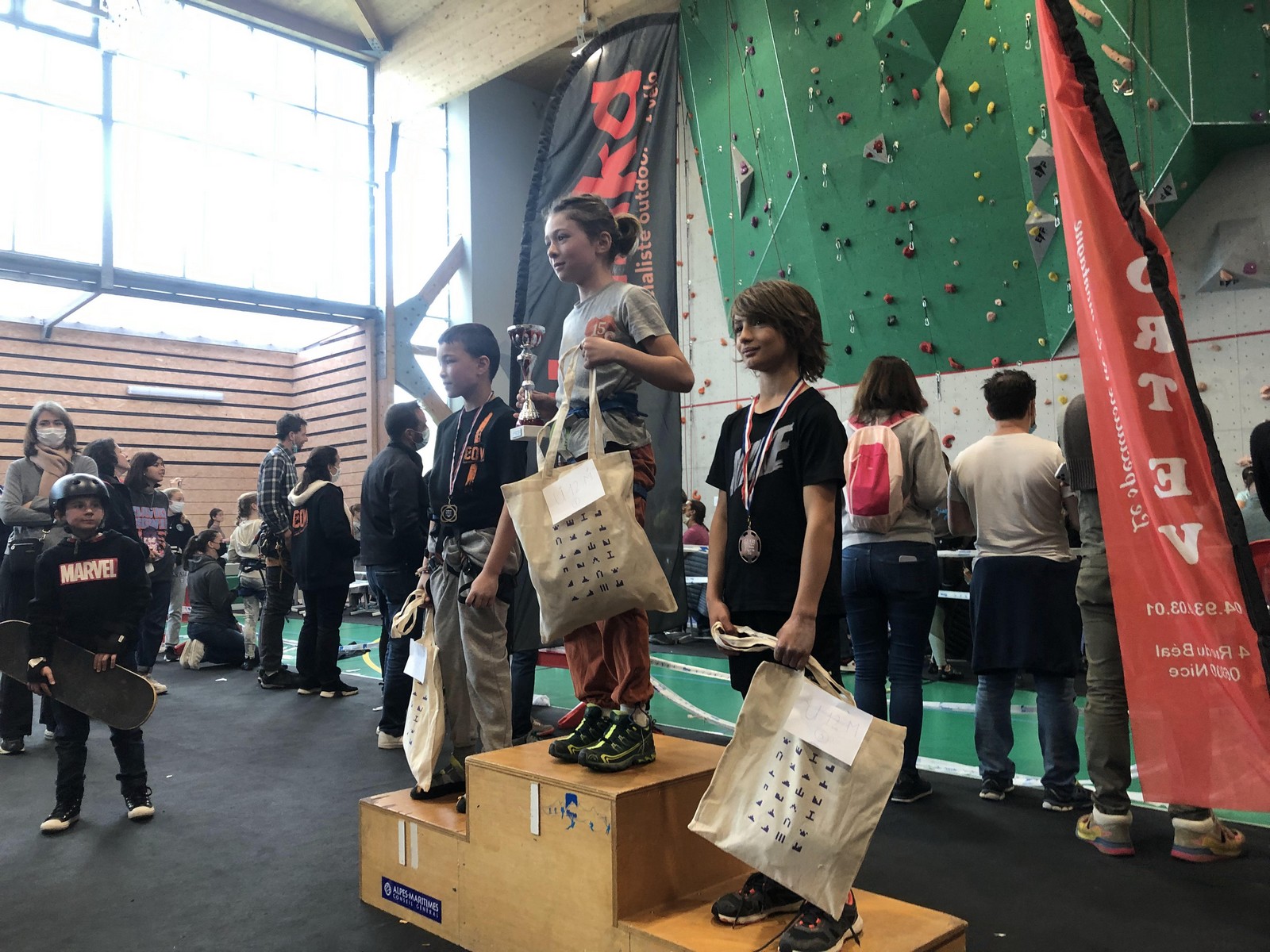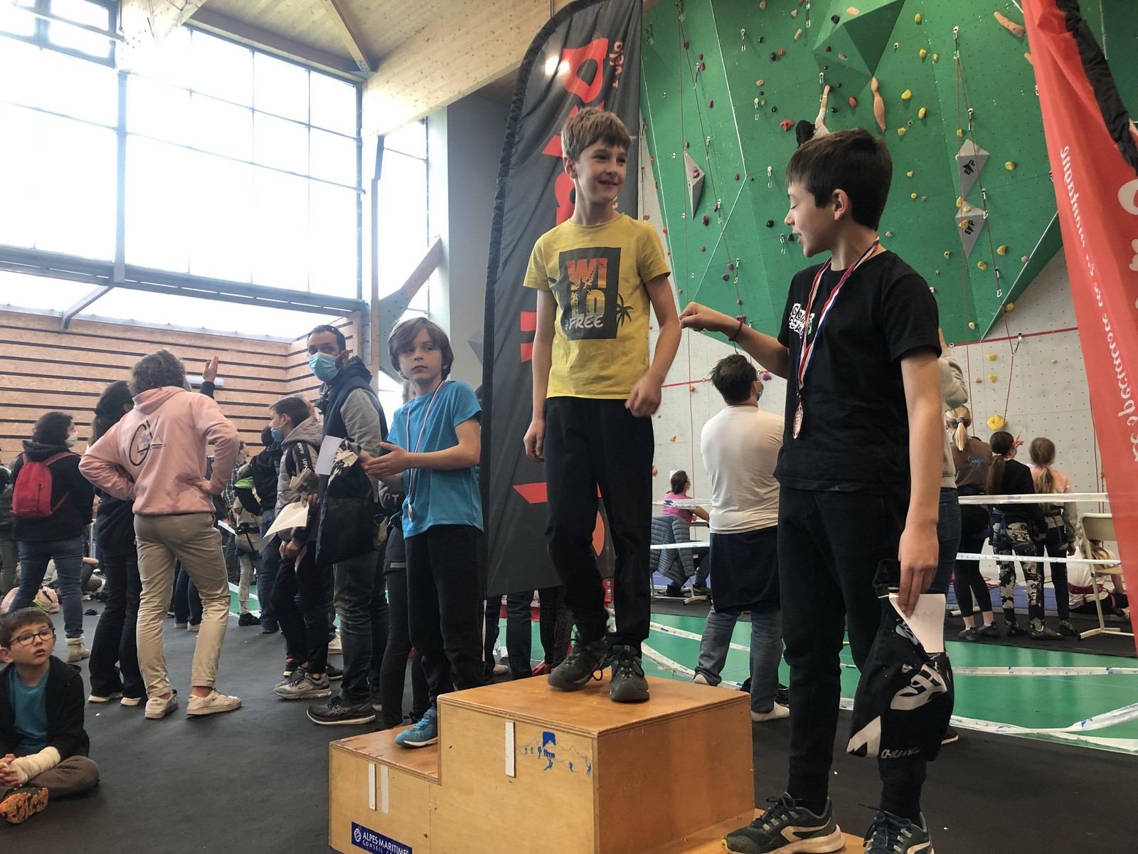 Pendant que Pierre Le Cerf disputait la demi-finale puis la finale du championnat de France de bloc où il termine 7ème après avoir fait une entrée en matière plutôt fracassante en flashant le premier bloc et tenant la tête du classement à la fin du deuxième bloc avant de subir la pression et perdre un peu ses moyens, nous étions avec Sébastien et 35 enfants du club à Pégomas pour la deuxième manche du challenge Berhault au collège Arnaud Beltrame.