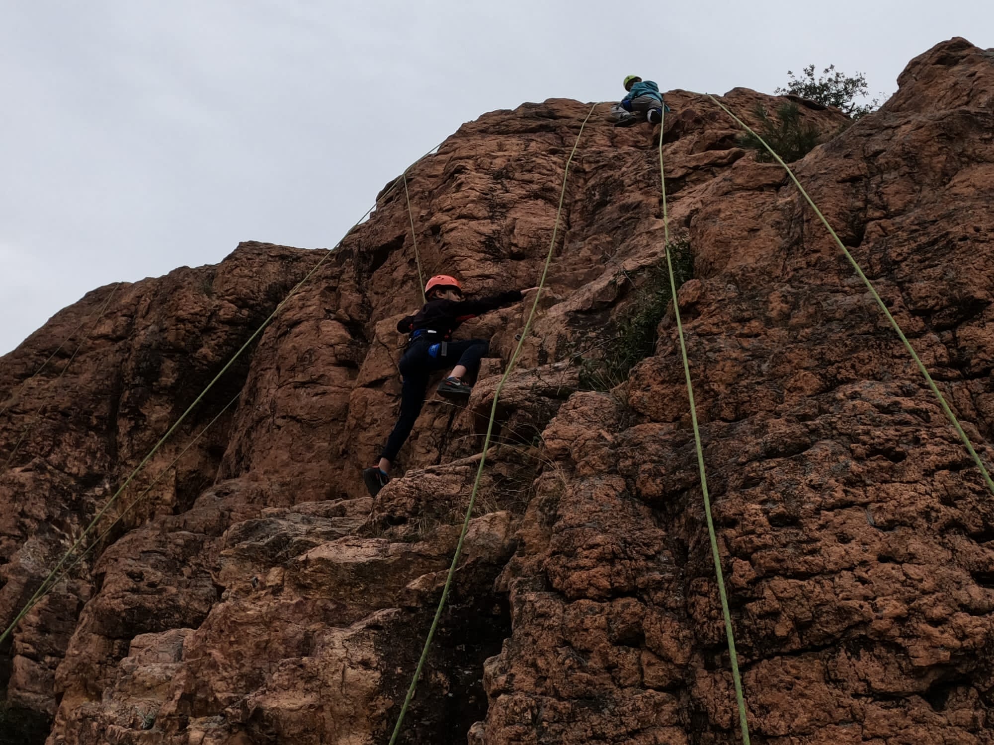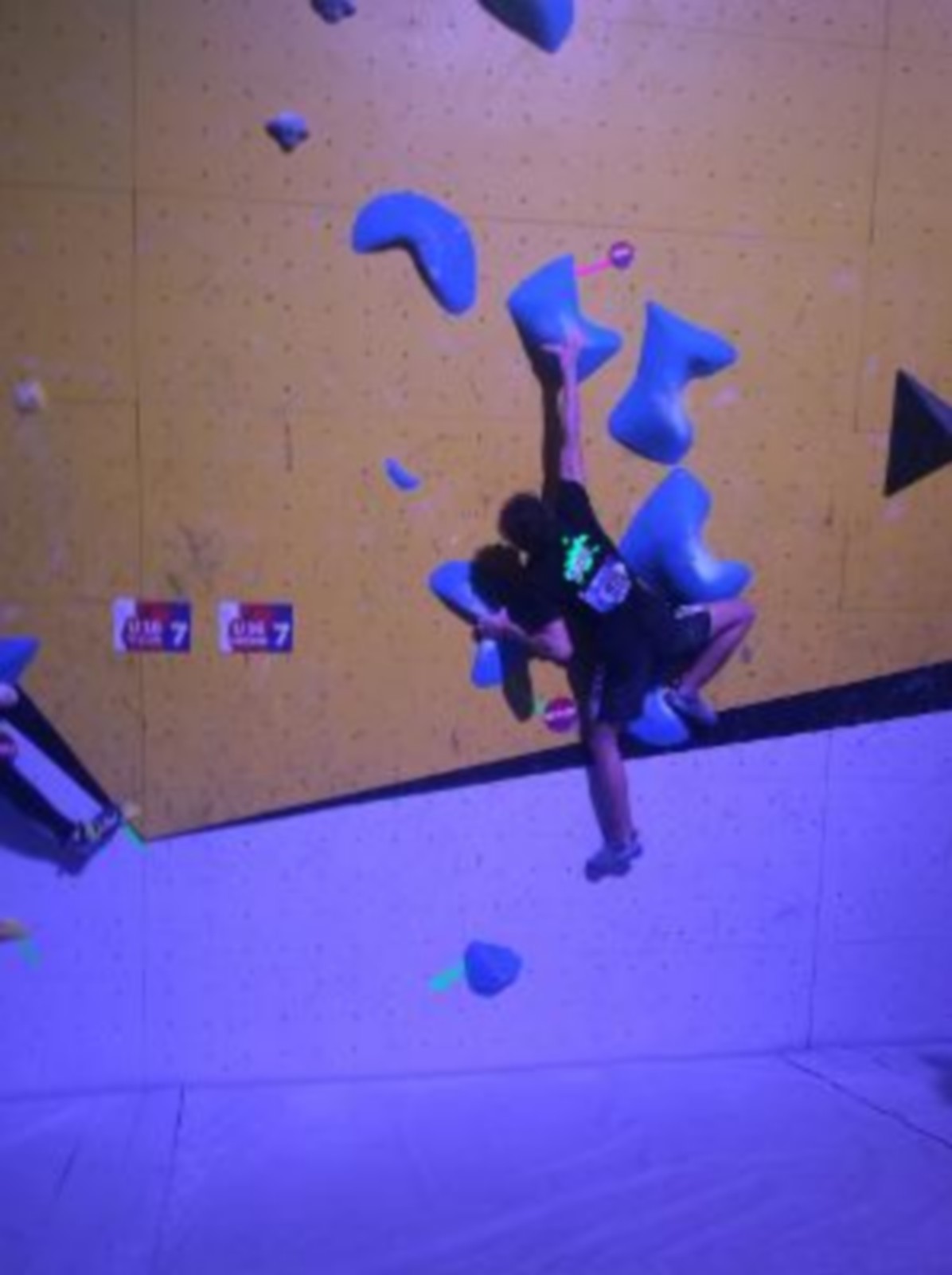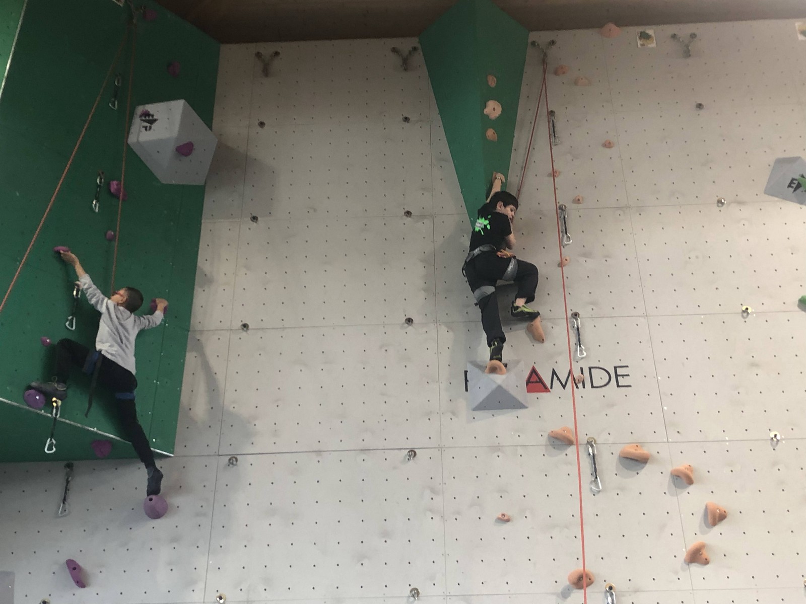Chez nous, Matéo grimpe vraiment bien et tombe au même niveau que Kahestelle précédemment. Timéo, un peu plus brouillon mais très costaud tombe exactement au même endroit. Leur place se joue au temps et c’est Timéo le plus rapide : ils sont 3ème et 4ème.
