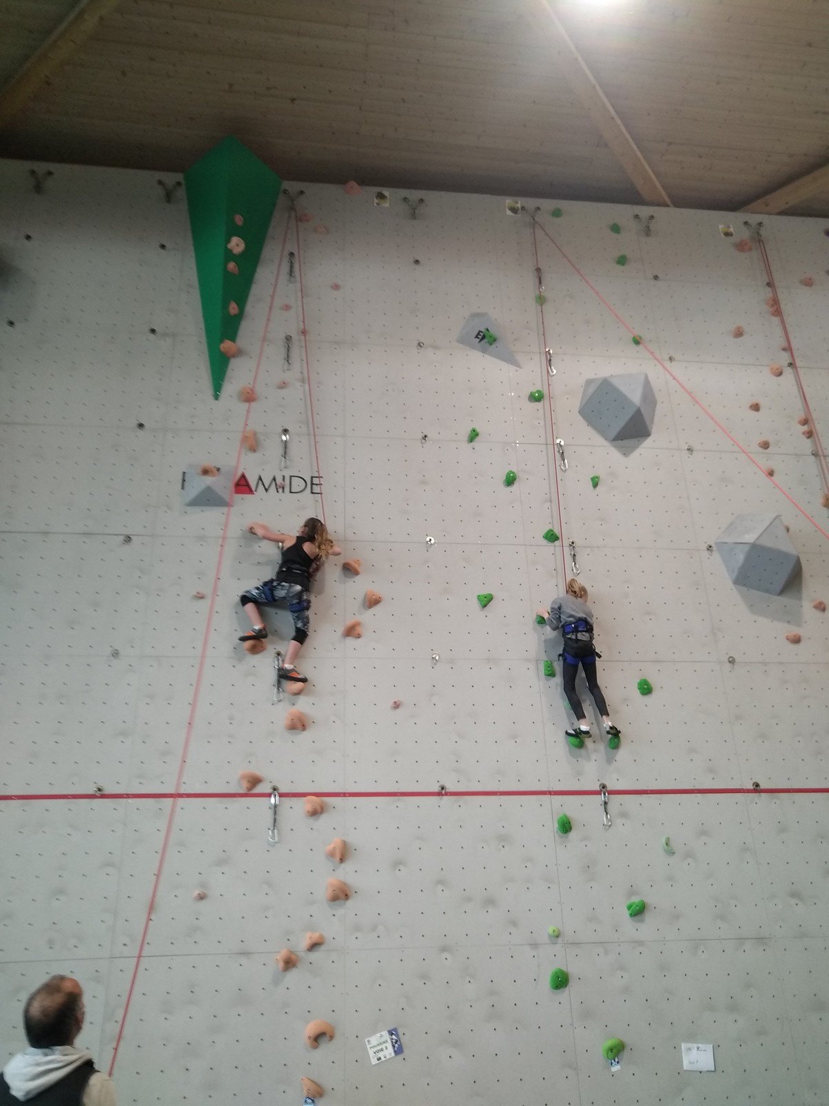 Du côté des filles, nous n’avons que 2 représentantes. Chloé et Noéline enchainent les 2 premières voies et tombent dans le premier crux de la voie 3 au même niveau. Elles terminent 14ème ex-æquo. Pas de jalouse !