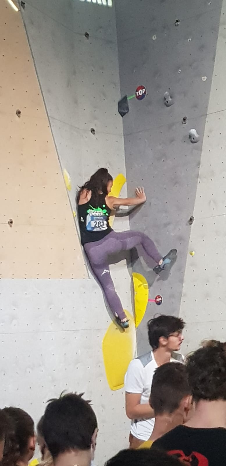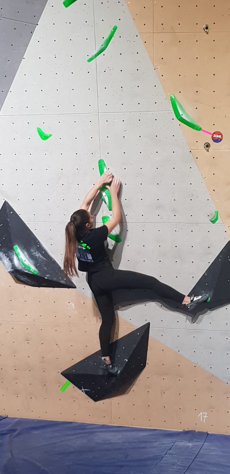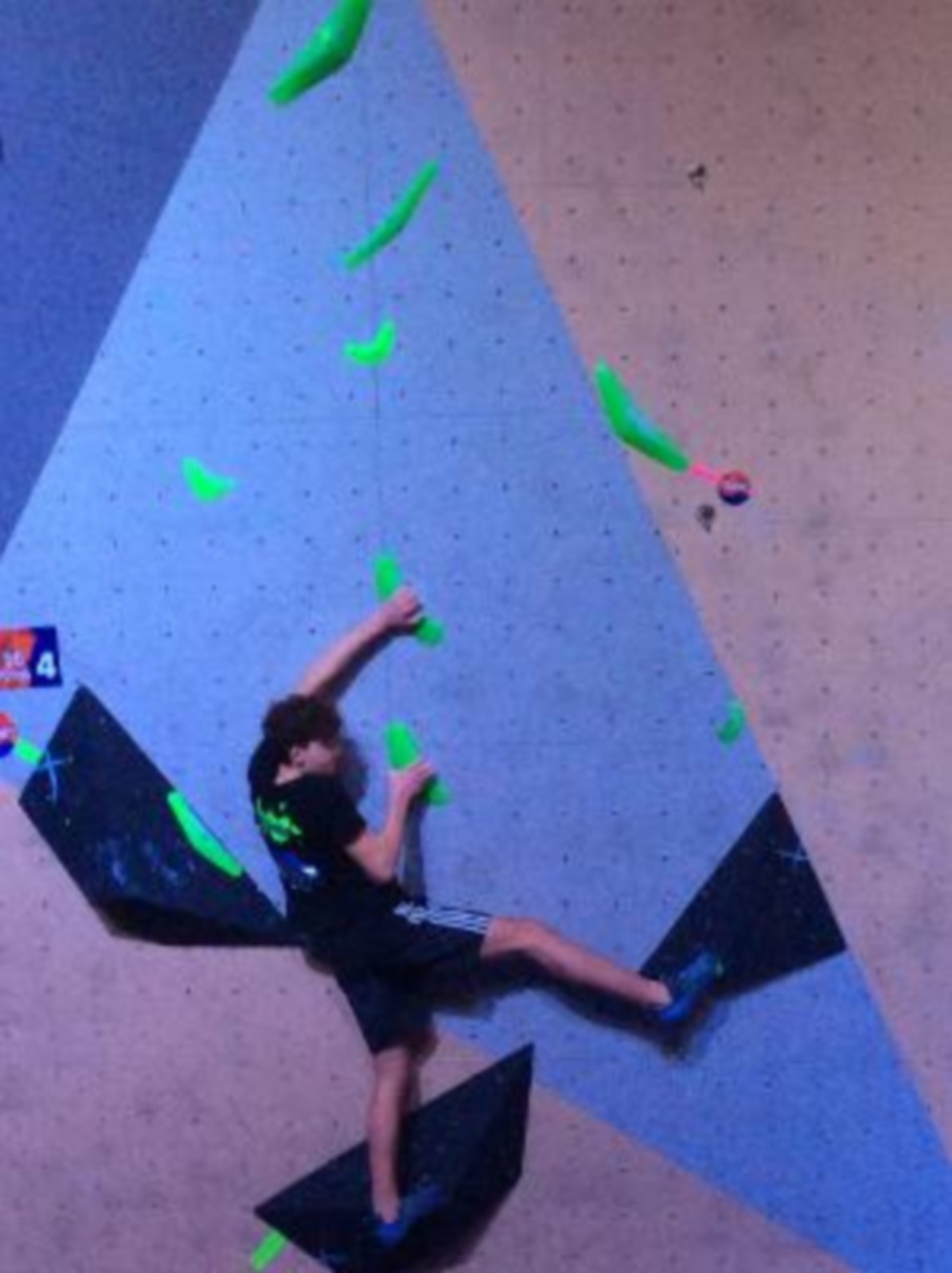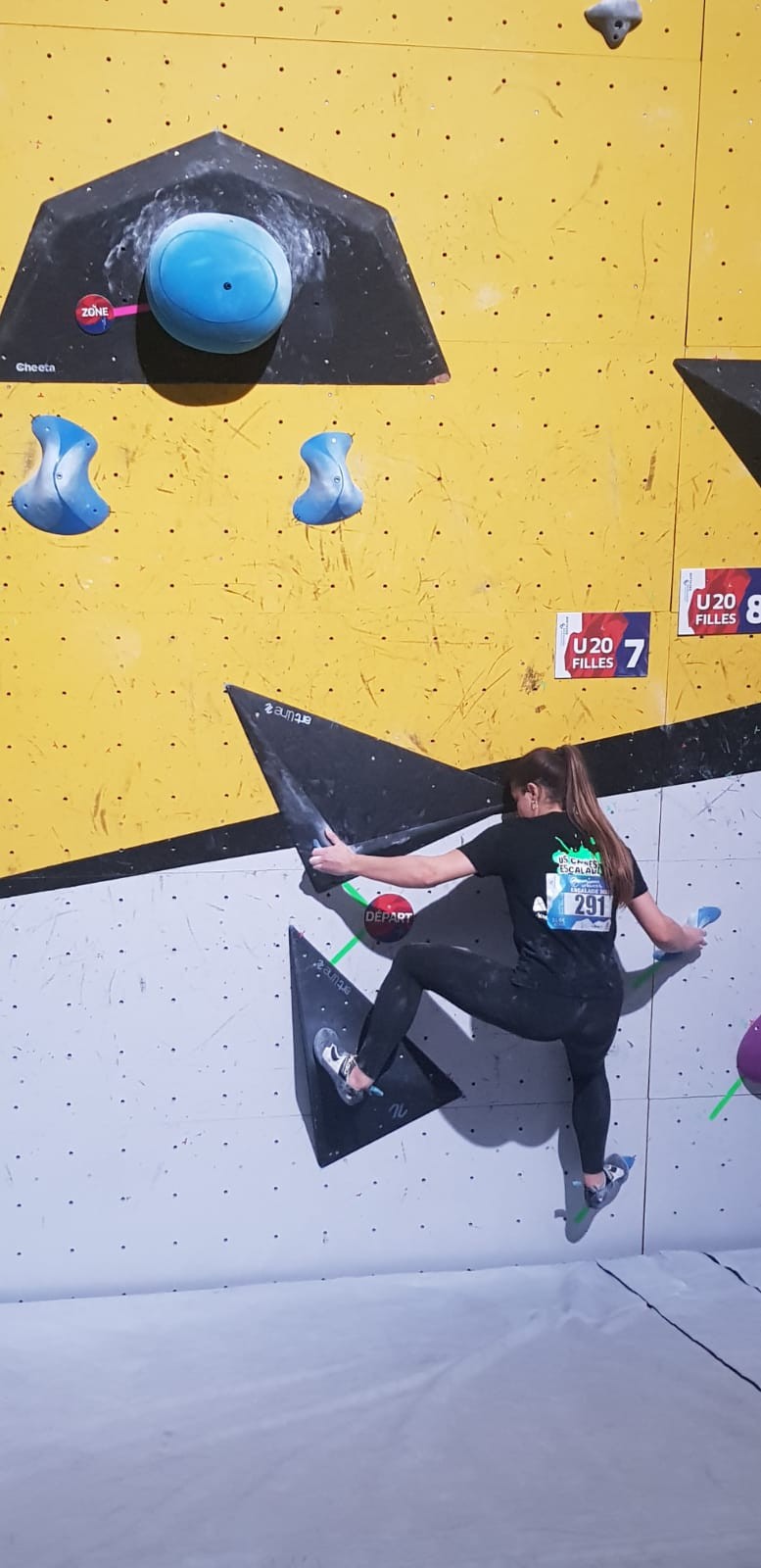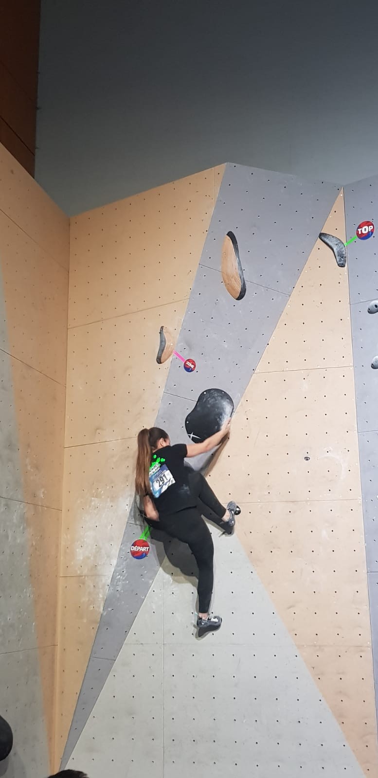 Chez les garçons, Arthur fait une belle prestation dans les 2 premières voies mais le manque d’expérience lui vaudra une chute dans la voie 3 qui lui donne la 15ème place.