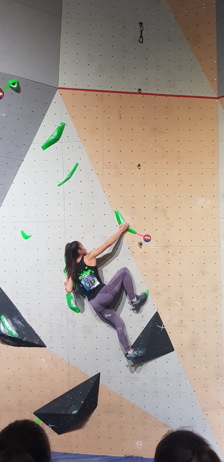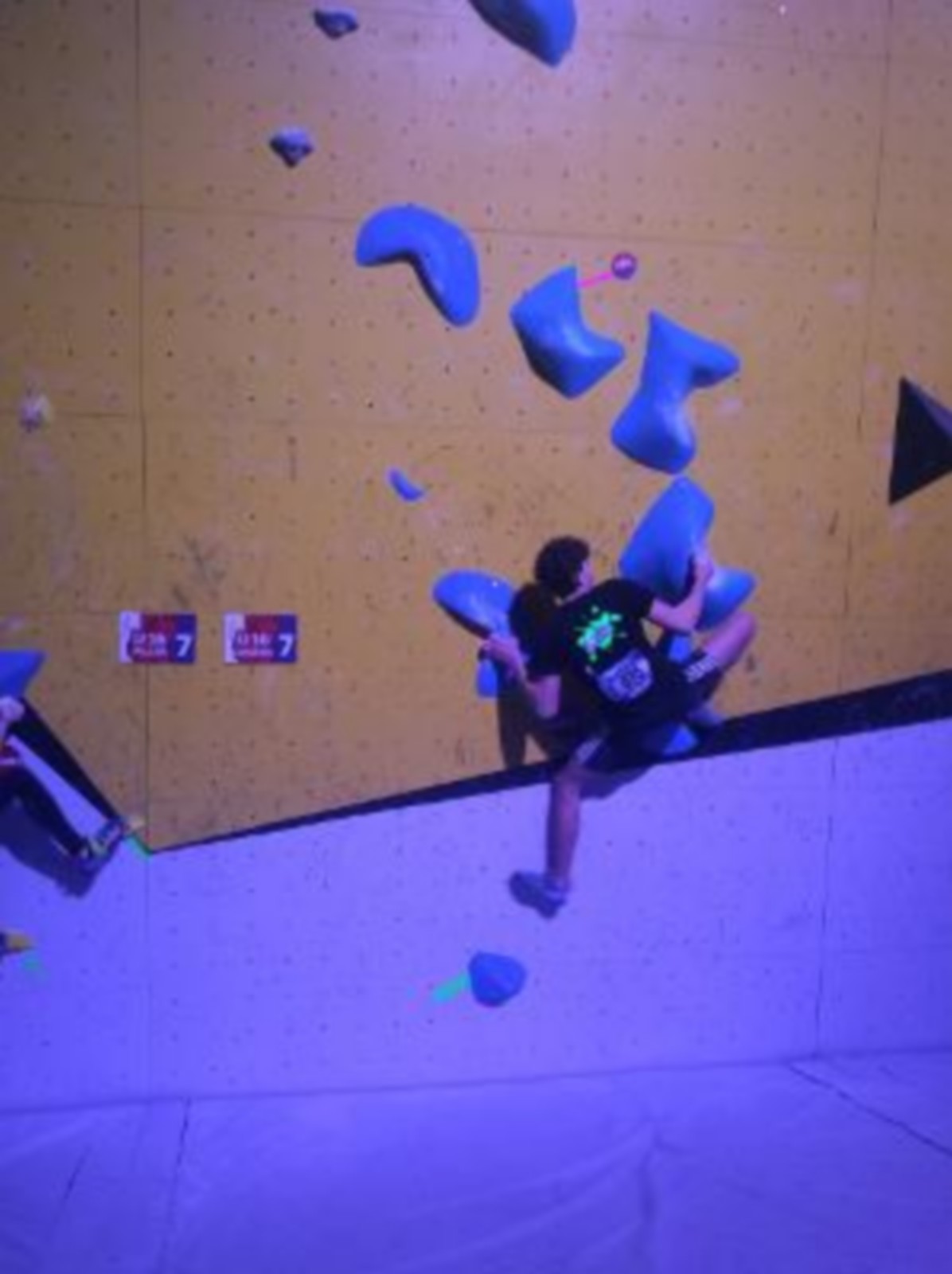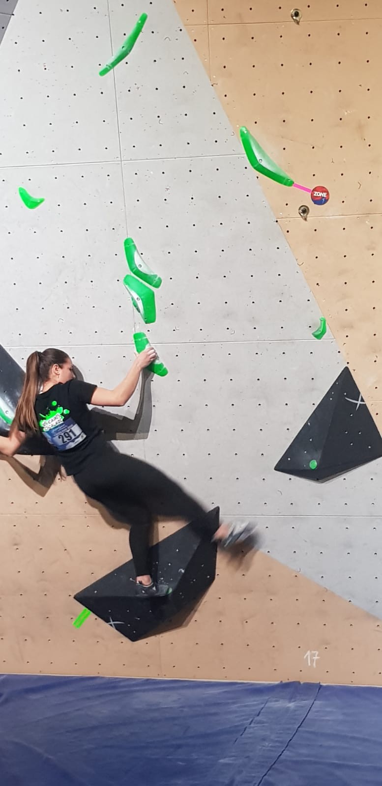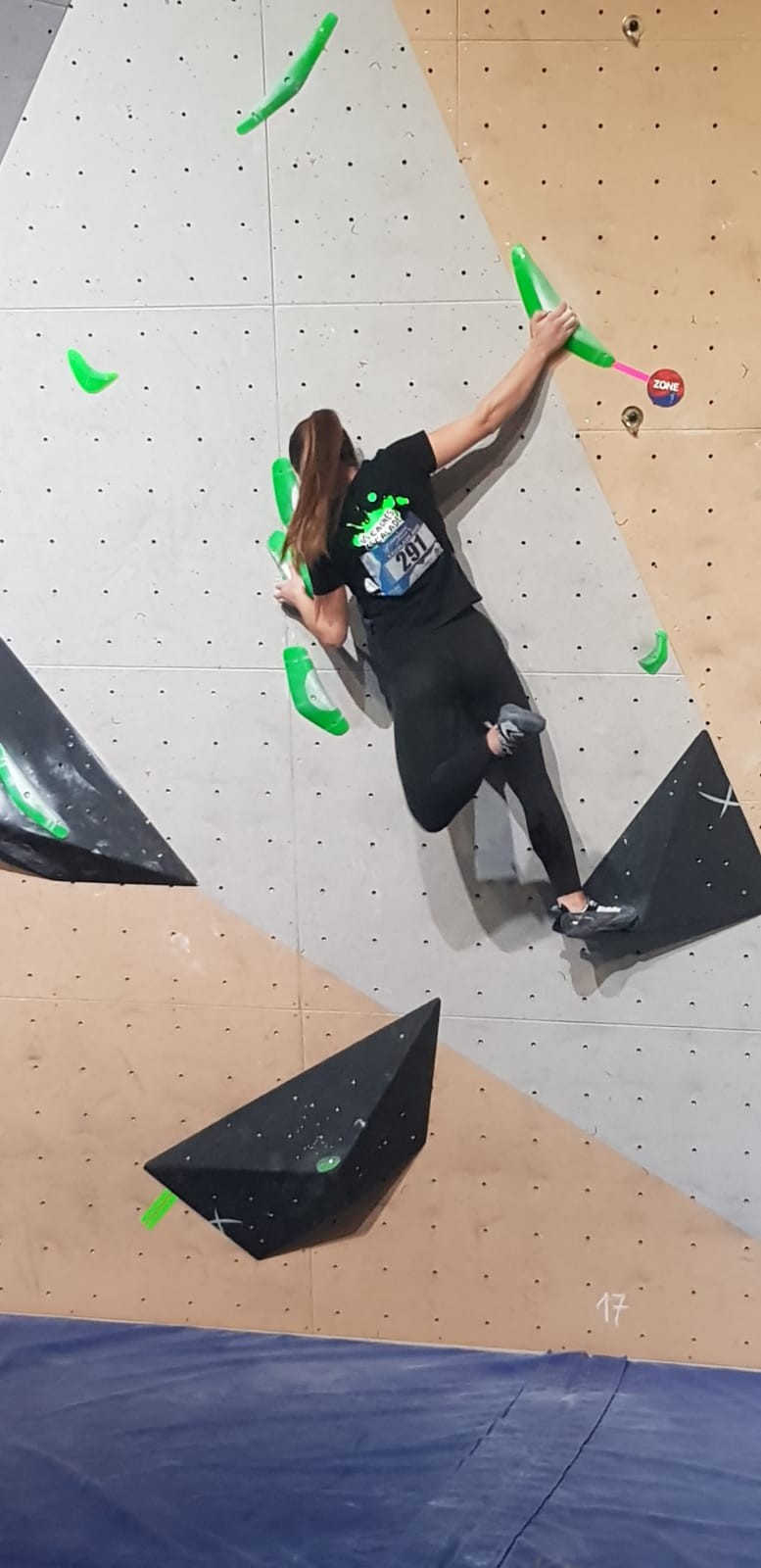 Chez les garçons, Arthur fait une belle prestation dans les 2 premières voies mais le manque d’expérience lui vaudra une chute dans la voie 3 qui lui donne la 15ème place.