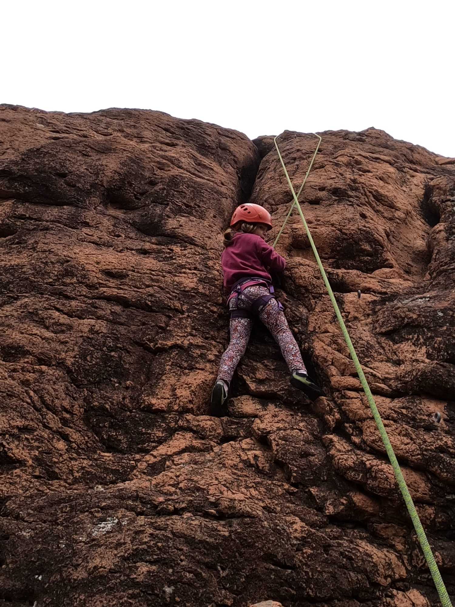 Romane est beaucoup plus petite (elles est de 2014) mais la voie est bien ouverte pour son gabarit. Beaucoup plus posée, elle passe les difficultés les unes après les autres avec brio, sans trop d’erreur et en se réorganisant rapidement quand il faut. Un peu au-dessus de Lya, elle commence à fatiguer et ne parvient pas à fermer le bras suffisamment pour atteindre les dernières prises. Bravo Romane, de l’escalade tout en maturité, de la graine de championne !