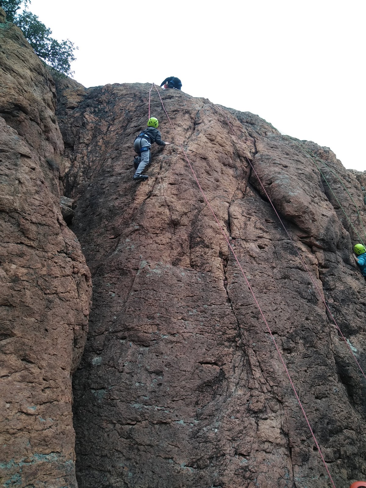 Chez les garçons c’est une autre paire de manche. Quentin s’en sort plutôt bien jusqu’à la 3ème voie, un peu au-dessus de son niveau et prend la 15ème place. Esteban et Antoine passent les 2 premiers crux et échouent en haut de la voie 3, le premier à bout de force, le second par peur de la chute. Il faut dire que ces deux-là ne grimpent qu’en bloc. Ils n’ont pas l’habitude de grimper sur corde, en encore moins en tête.