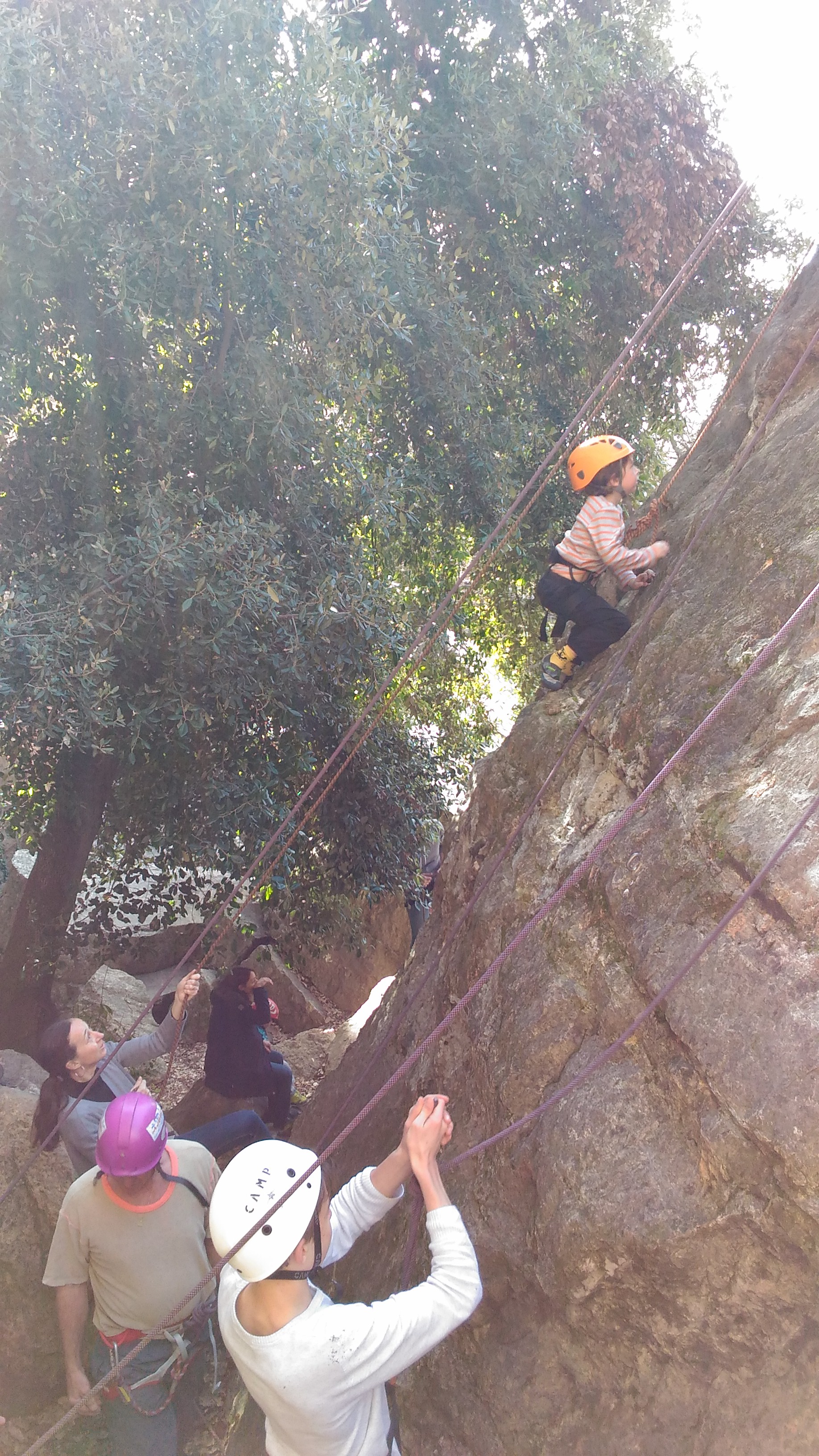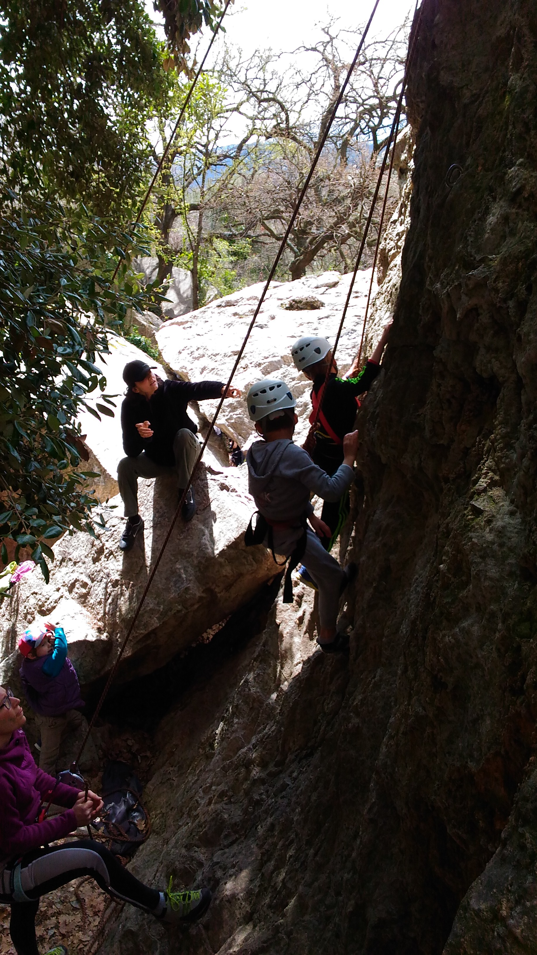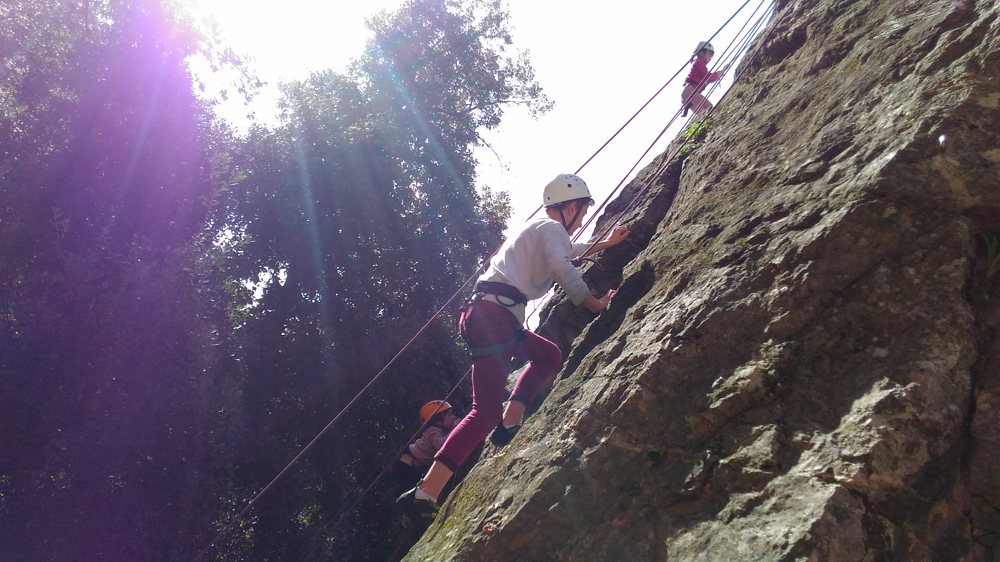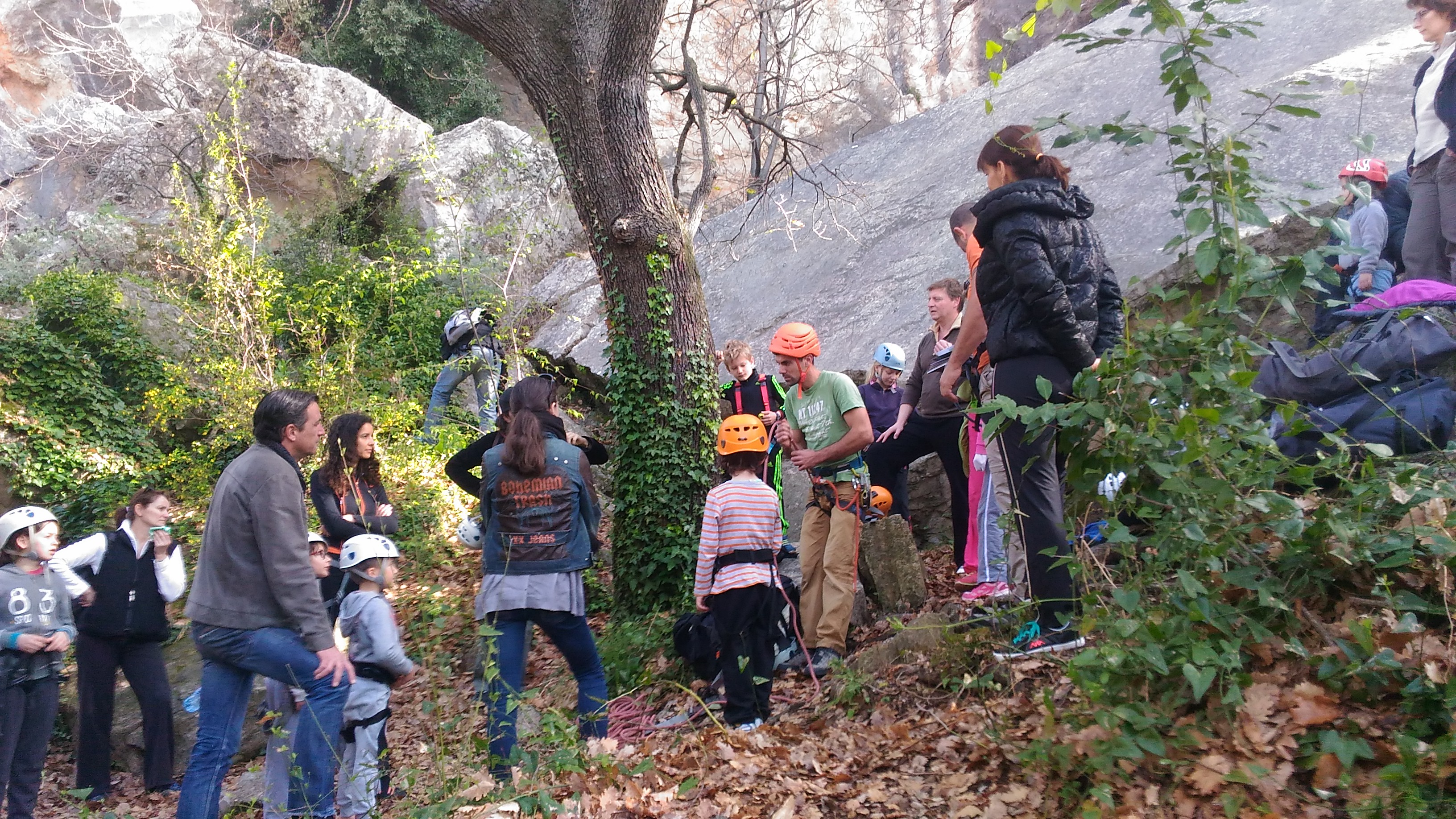 Ce type de sortie est l’occasion pour les parents de voir grimper leurs enfants en dehors du cadre de la salle, dans un environnement bien différent… Les prises, la façon dont on grimpe, le type d’effort, tout change ! Certains enfants adhèrent très facilement à cette partie de l’activité, d’autres ont un peu plus de mal, parfois surpris par la hauteur, l’ampleur des voies, la difficulté à trouver les prises de mains et surtout de pieds. Pour les plus petits, il est fréquent que la position de descente soit difficile à mettre en place et nécessite de les rassurer pour qu’ils prennent confiance et qu’ils commencent à faire confiance au matériel et à leur assureur.