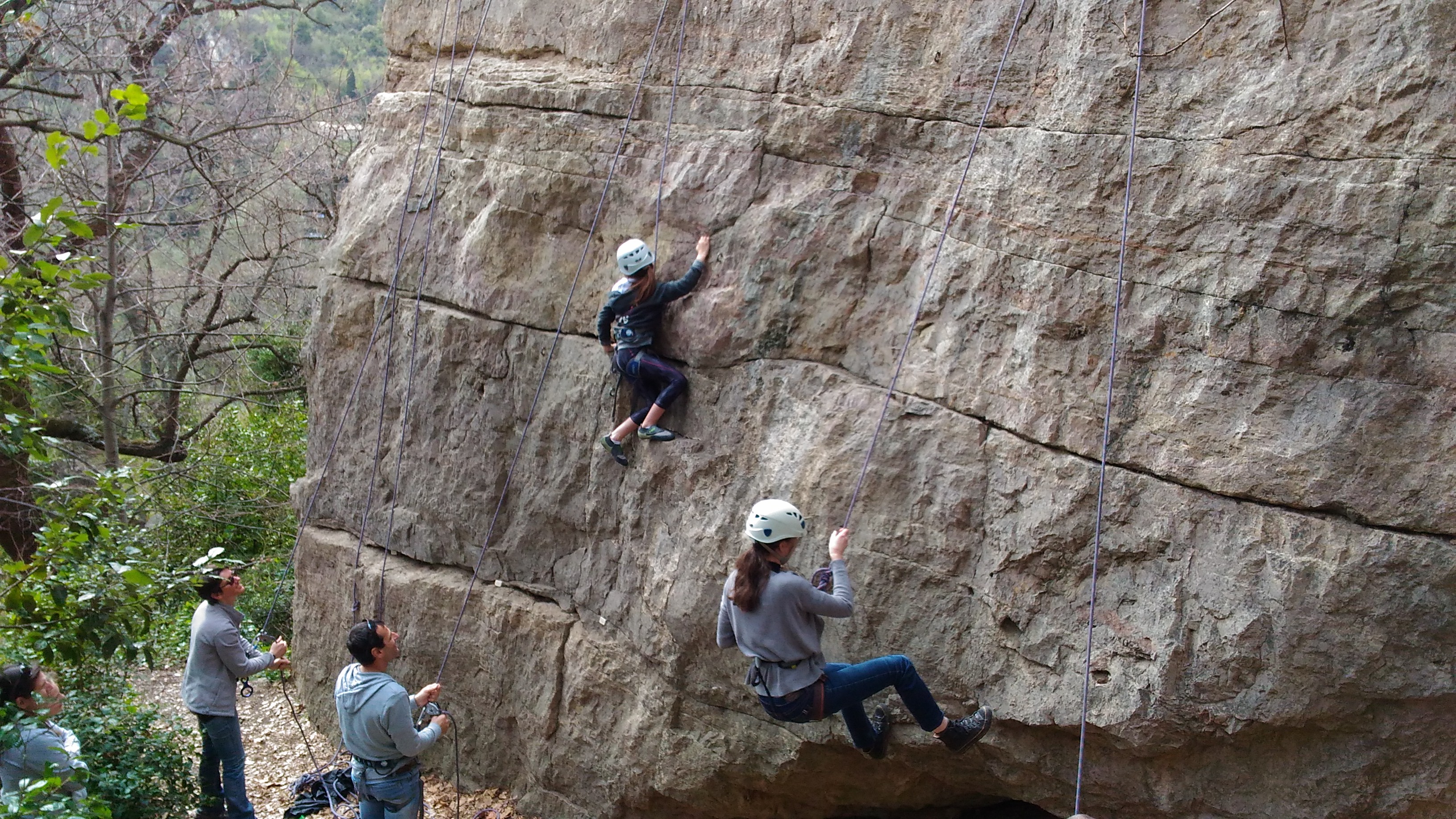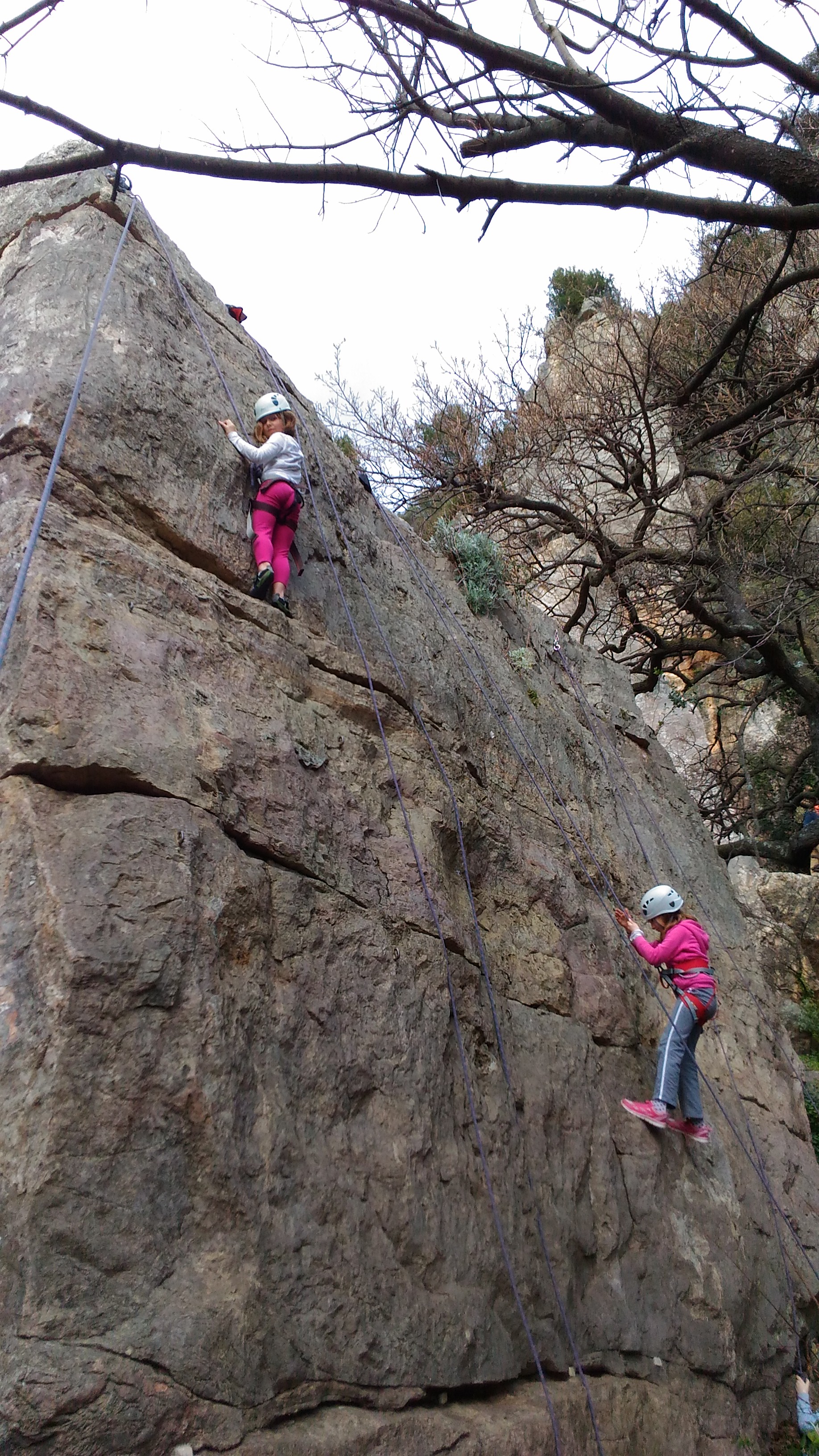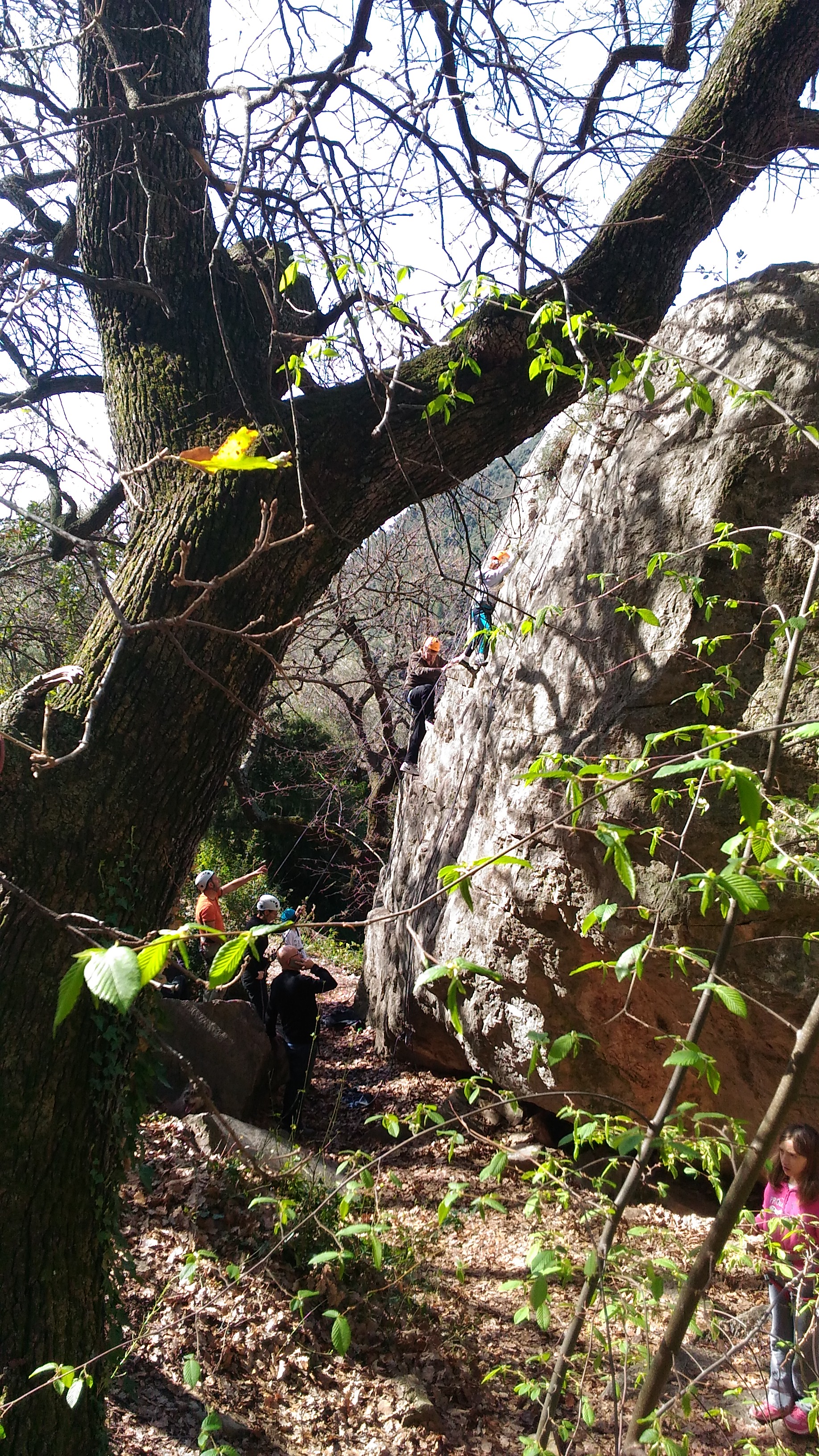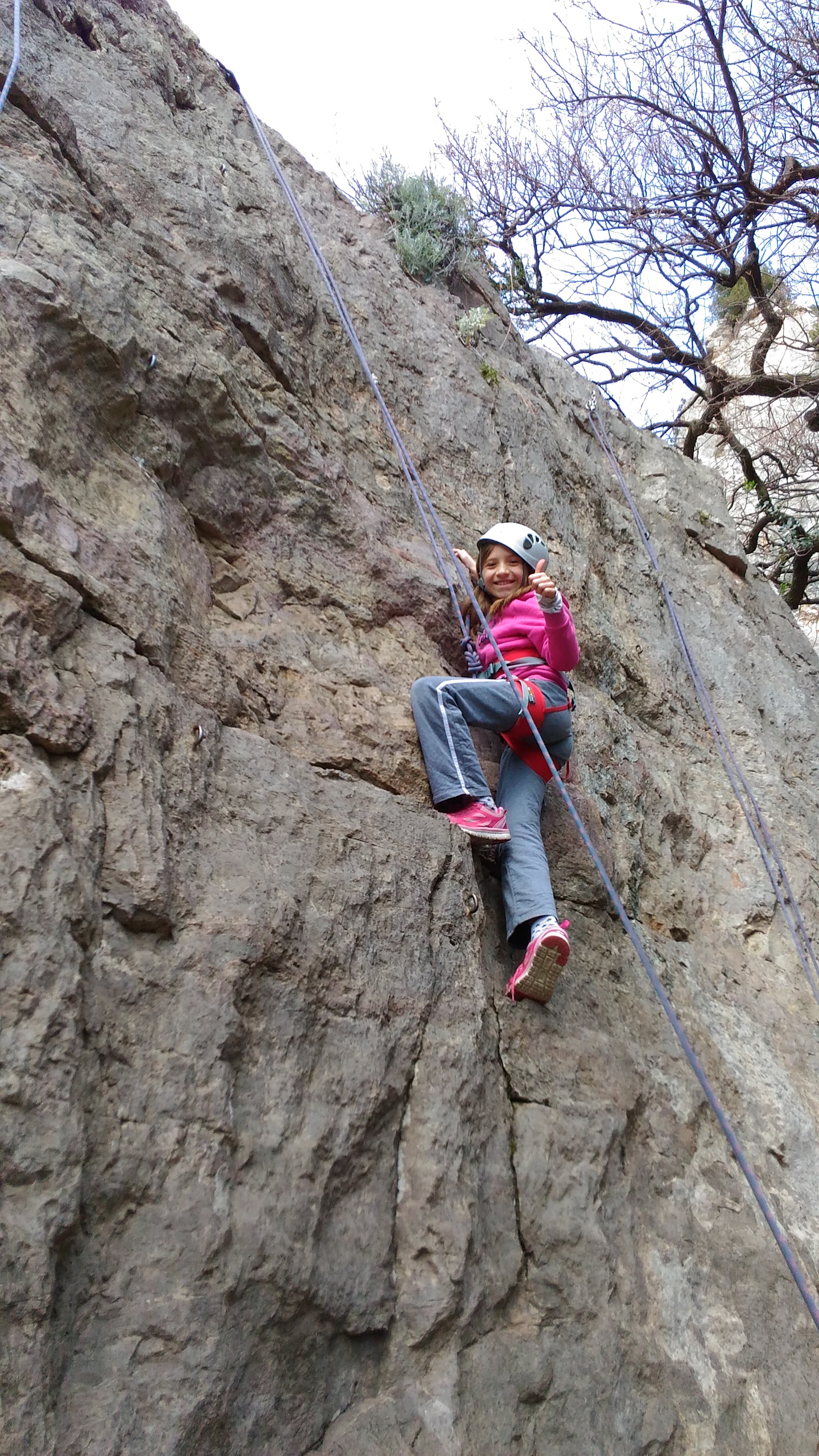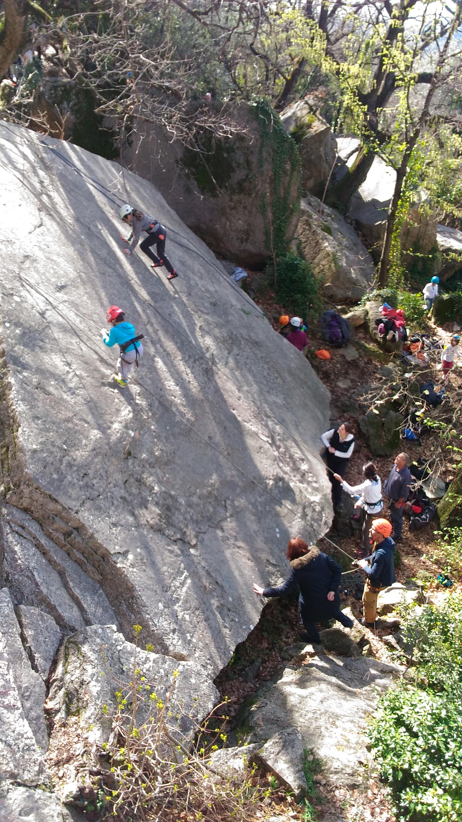 Ce type de sortie est l’occasion pour les parents de voir grimper leurs enfants en dehors du cadre de la salle, dans un environnement bien différent… Les prises, la façon dont on grimpe, le type d’effort, tout change ! Certains enfants adhèrent très facilement à cette partie de l’activité, d’autres ont un peu plus de mal, parfois surpris par la hauteur, l’ampleur des voies, la difficulté à trouver les prises de mains et surtout de pieds. Pour les plus petits, il est fréquent que la position de descente soit difficile à mettre en place et nécessite de les rassurer pour qu’ils prennent confiance et qu’ils commencent à faire confiance au matériel et à leur assureur.
