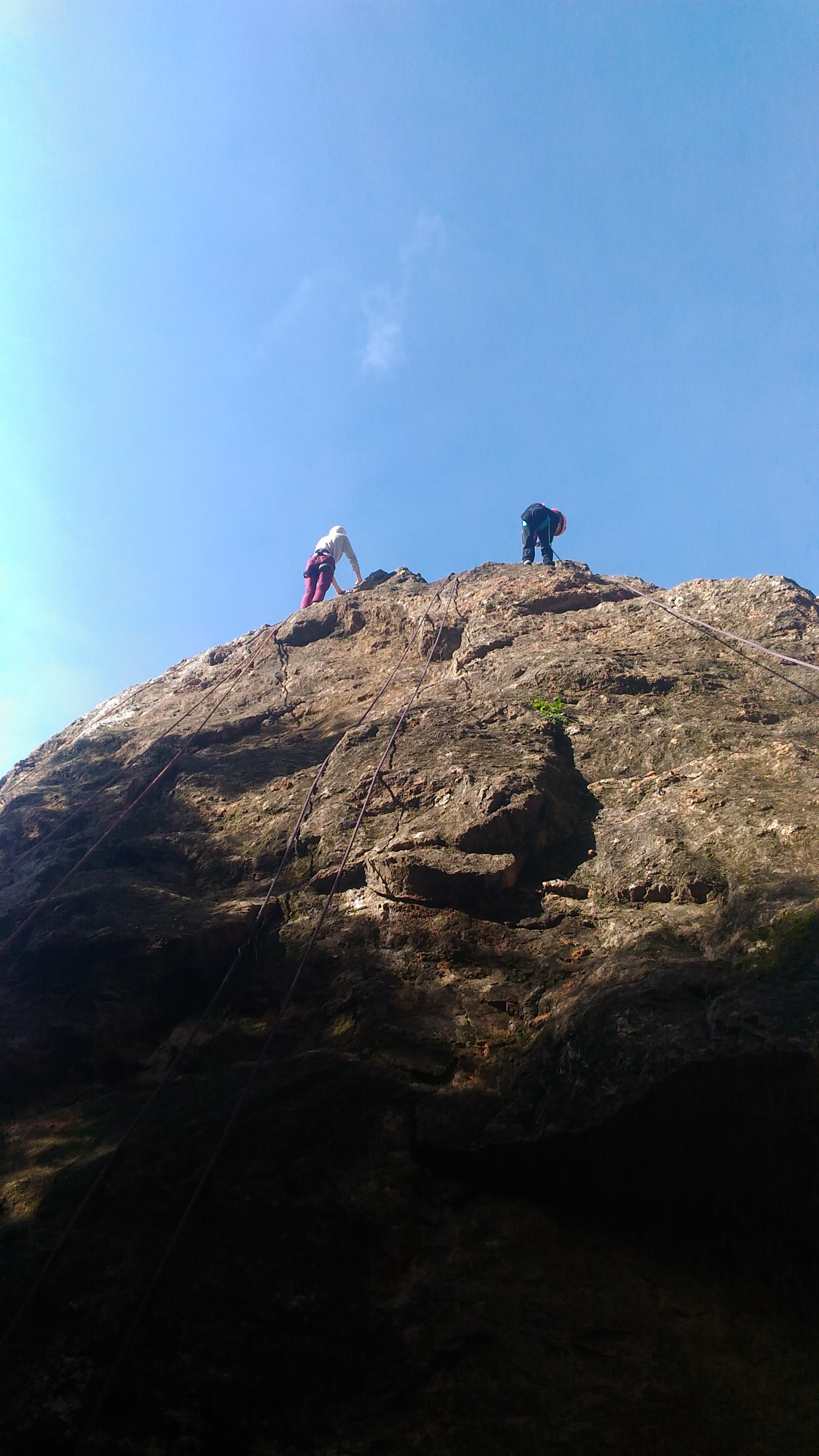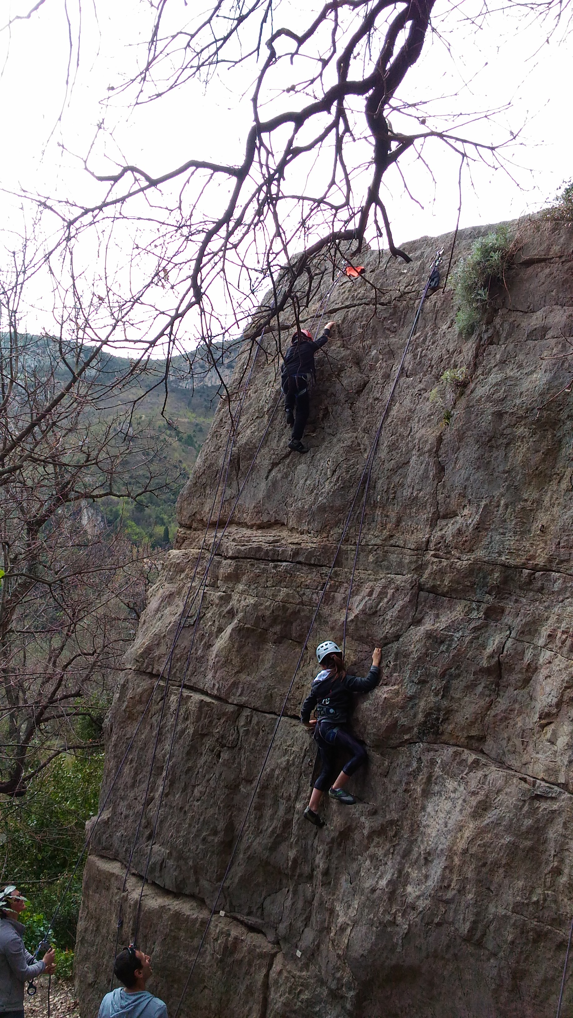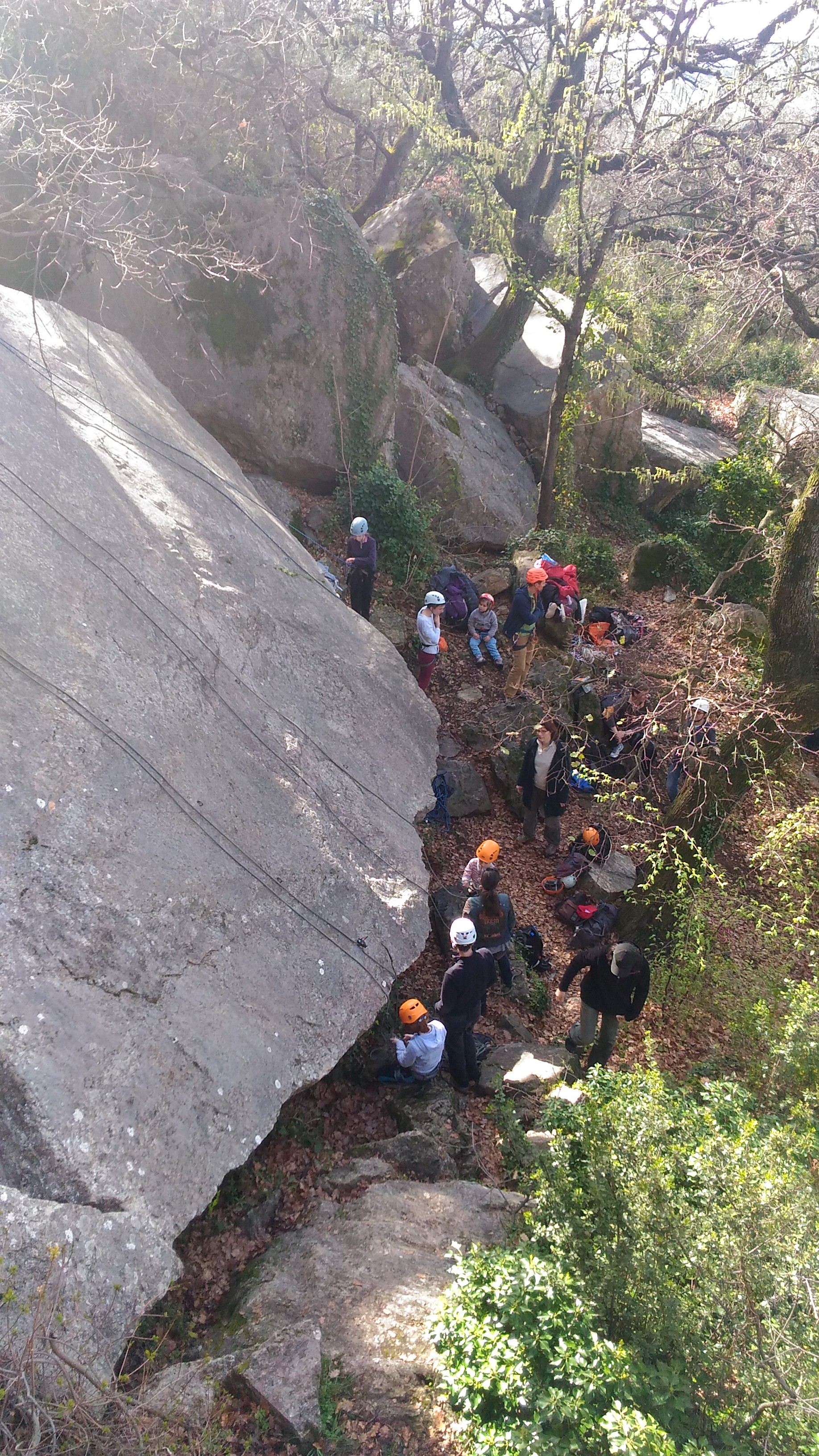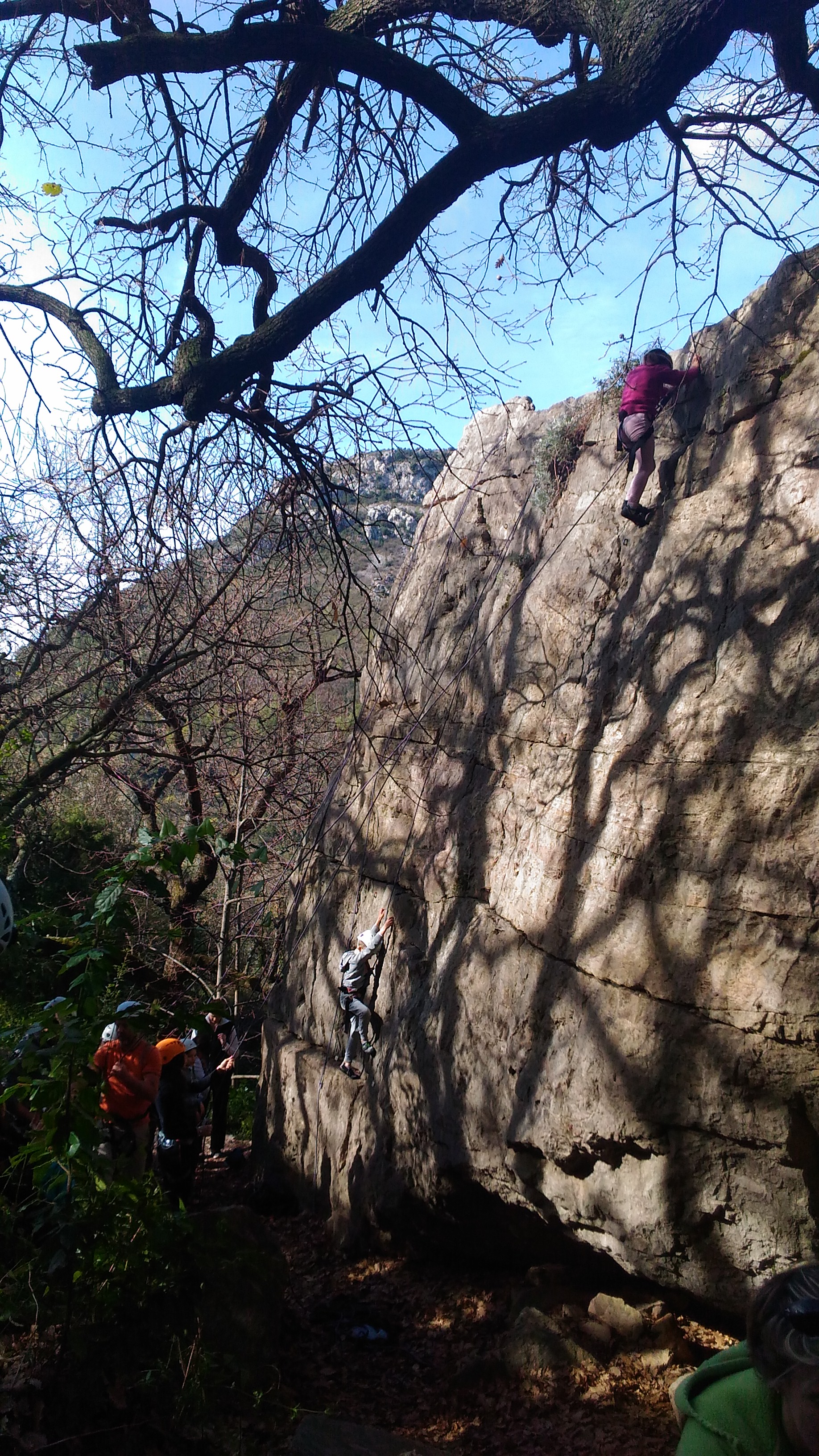 Je tire mon chapeau aux parents, à chaque sortie falaise je me rends compte qu’un grand nombre d’entre eux savent maintenant assurer en toute sécurité. Attention toute fois pour les novices à ne pas hésiter à faire appel à un référent afin qu’il vienne s’assurer de la bonne mise en place de l’appareil d’assurage ainsi que du nœud de huit et confirme le départ. Cette participation active a permis aux enfants d’en profiter un maximum, et même certains parents se sont pris au jeu d’essayer quelques voies. Parfois avec des chaussons qui ont été ressorti du placard après plusieurs années !