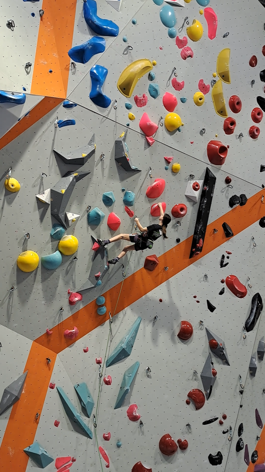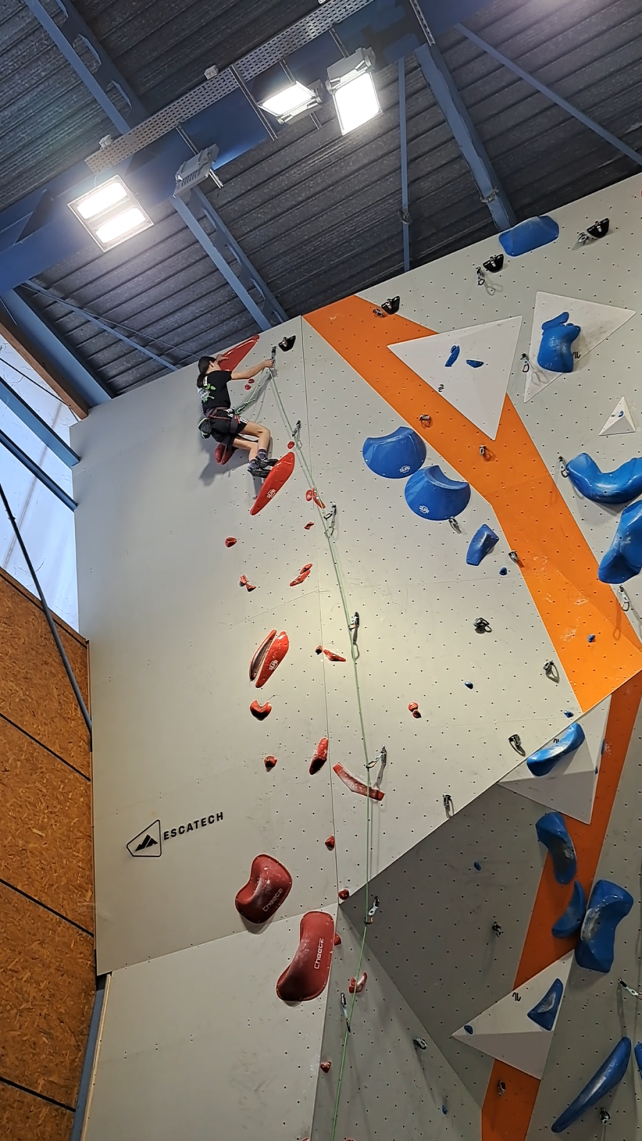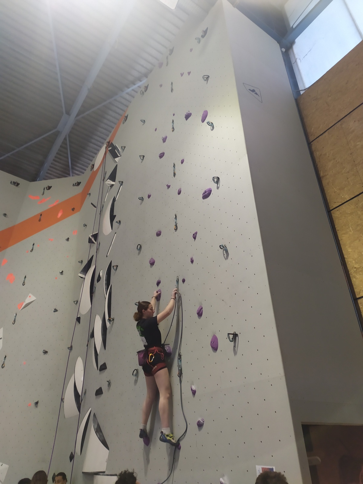 La dernière concurrente à s’élancer est Léane, et tous les espoirs reposent sur elle pour nous faire découvrir la suite de la voie. Avec sa désinvolture habituelle, elle nous donne quelques sueurs froides, mais contrôle le jeté fatidique et continue à avancer dans la voie jusqu’à un autre mouvement où elle n’envoie pas assez fort. Peu importe, le titre de championne départementale est dans la poche, et le spectacle un peu sauvé !