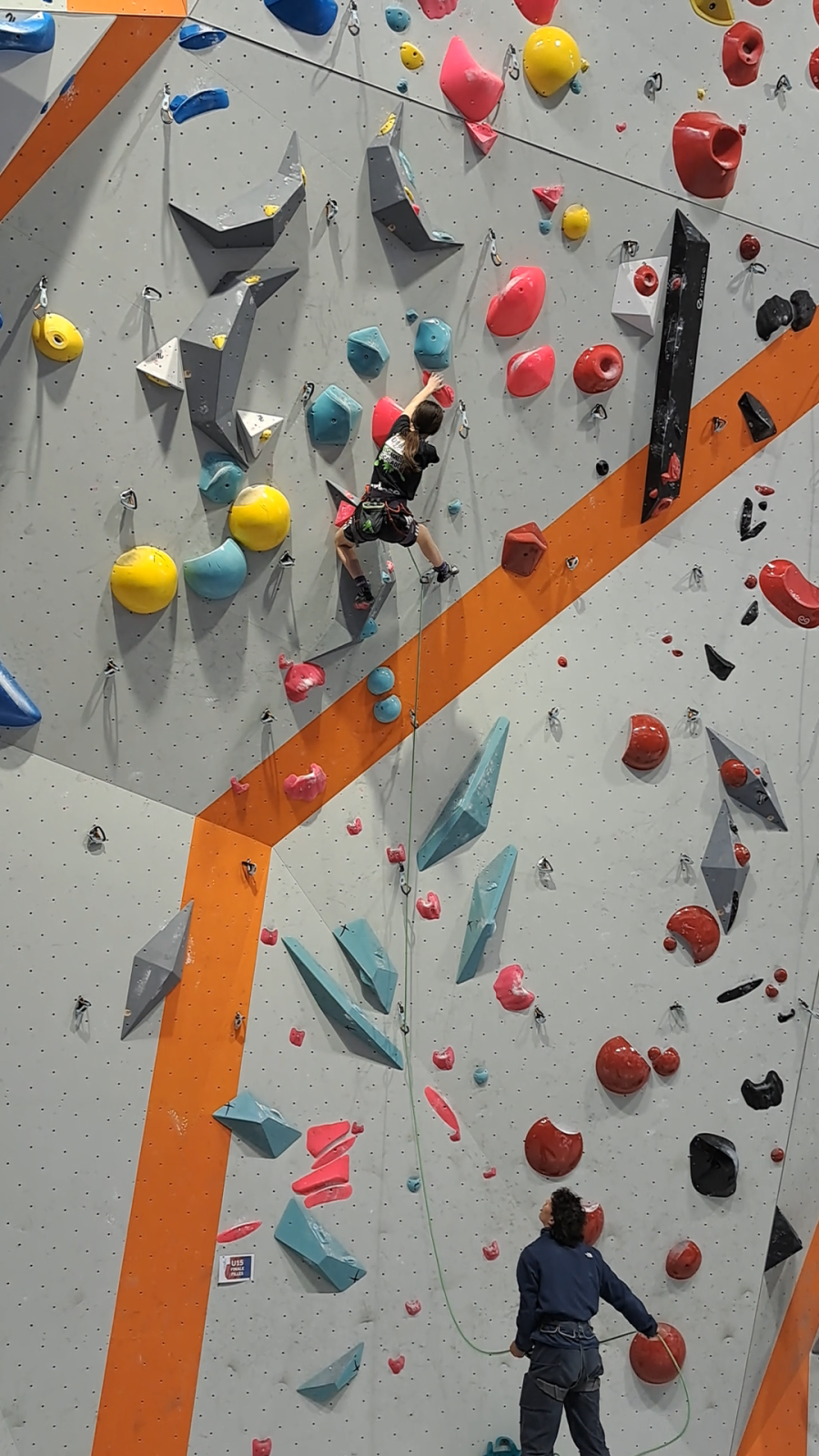Notre dévoué stagiaire Milan était donc là pour coacher les grimpeurs, présence particulièrement appréciée chez les plus jeunes grimpeurs, pas tous habitués à ce genre d’échéance et à la hauteur du mur.