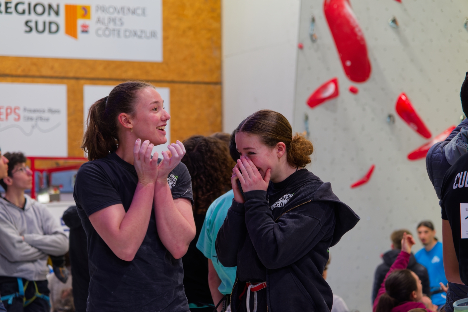 Pour Rose, c’est la même voie 6 qui lui coûte des places. Elle s’emmêle un peu dans la corde et tombe alors qu’elle espérait pouvoir aller plus haut. Il y a eu des phases de découragement, mais aussi de beaux combats et de l’engagement et c’est surtout ce qui est à retenir, il y a une très belle progression à ce niveau ces derniers mois. Rose termine 8° de la compétition, et 6° du 06. Toutes nos pensées pour elle, dont la saison est mise entre parenthèses suite à une fracture de la main.