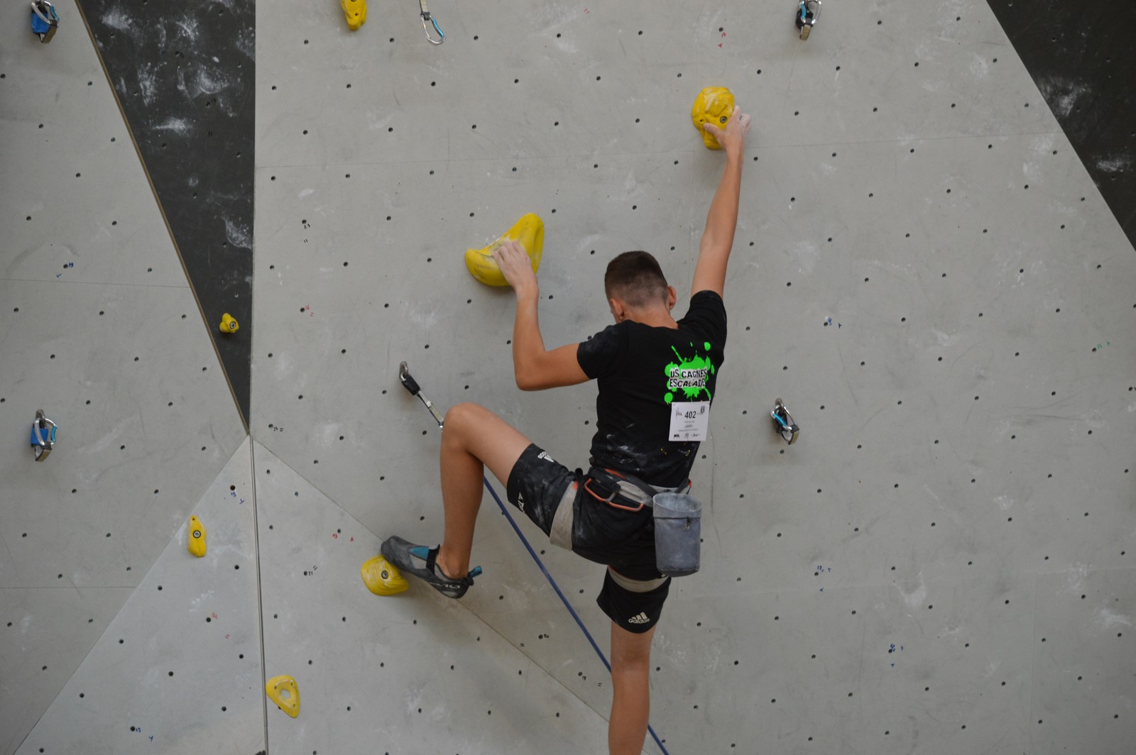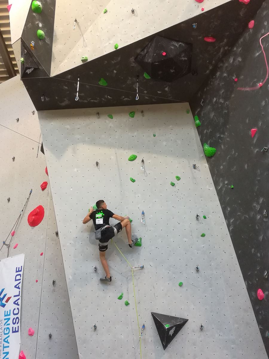 Lors des qualifications le samedi, Lenny, Nicolas I, Prune et Jules topent tous leurs 2 voies, et prennent ainsi sans problème leur ticket pour les demi-finales du lendemain. Ca passe également pour Bastien, et pour Nicolas H. qui monte assez haut dans la voie 2 des juniors au final bien exigeant et accède ainsi à sa 1ère demi-finale. La compétition s’arrête là en revanche pour Mathias, qui butte à la 27° place, à un petit plus des qualifiés en demi, ainsi que pour Lisa qui termine 36°, encore une fois un peu déçue.