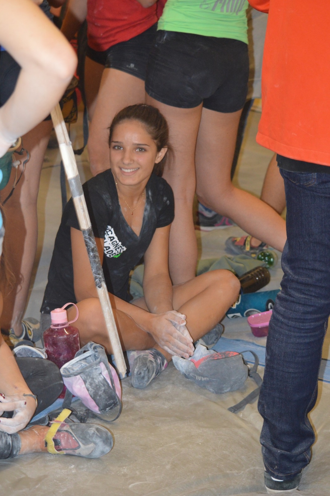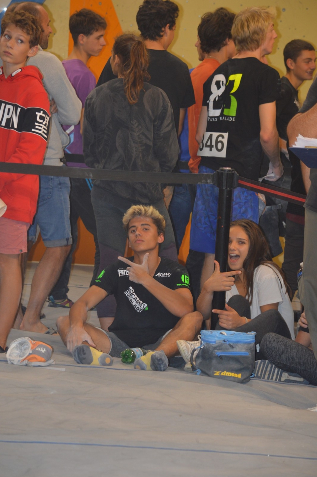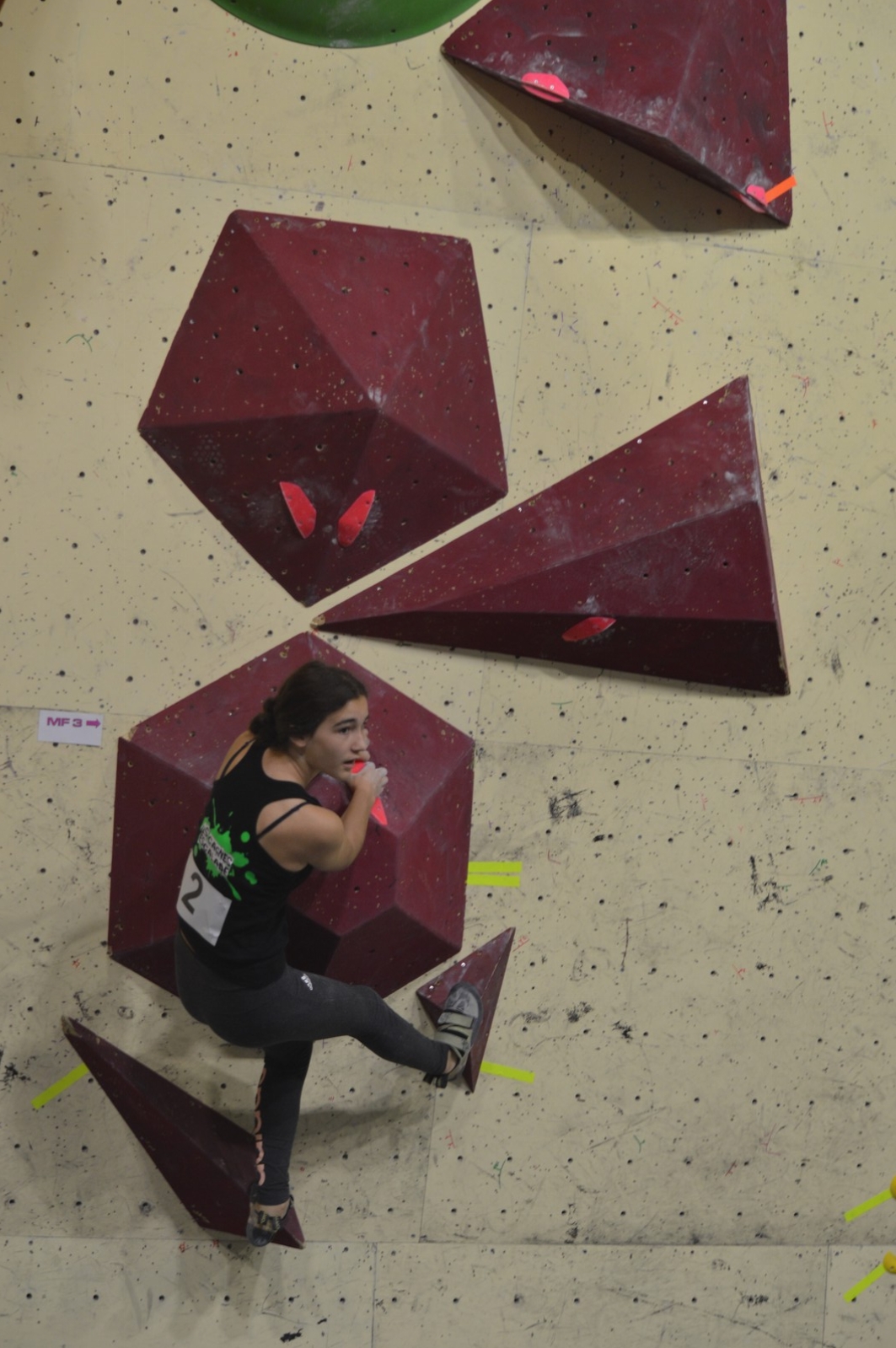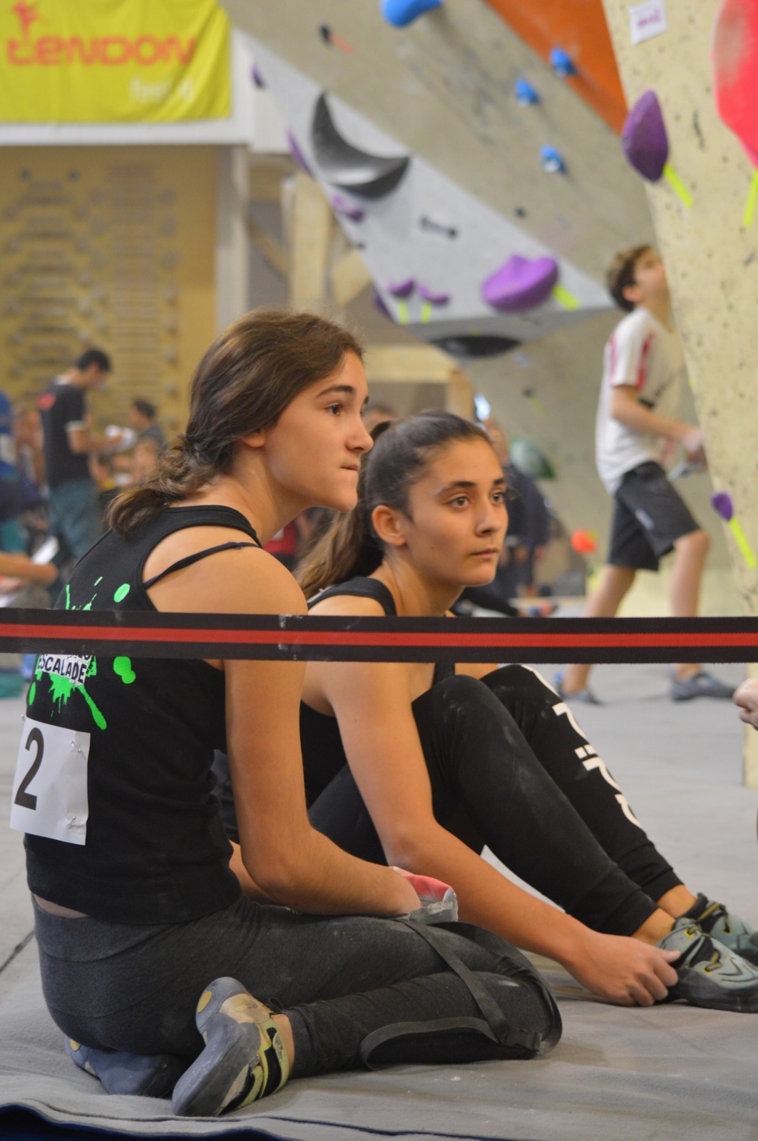 Chez les cadettes, Océane progresse, avec 7 blocs au compteur, elle empoche une belle 14ème place, coachée par Lisa, Juliette, Ethan et Pauline.