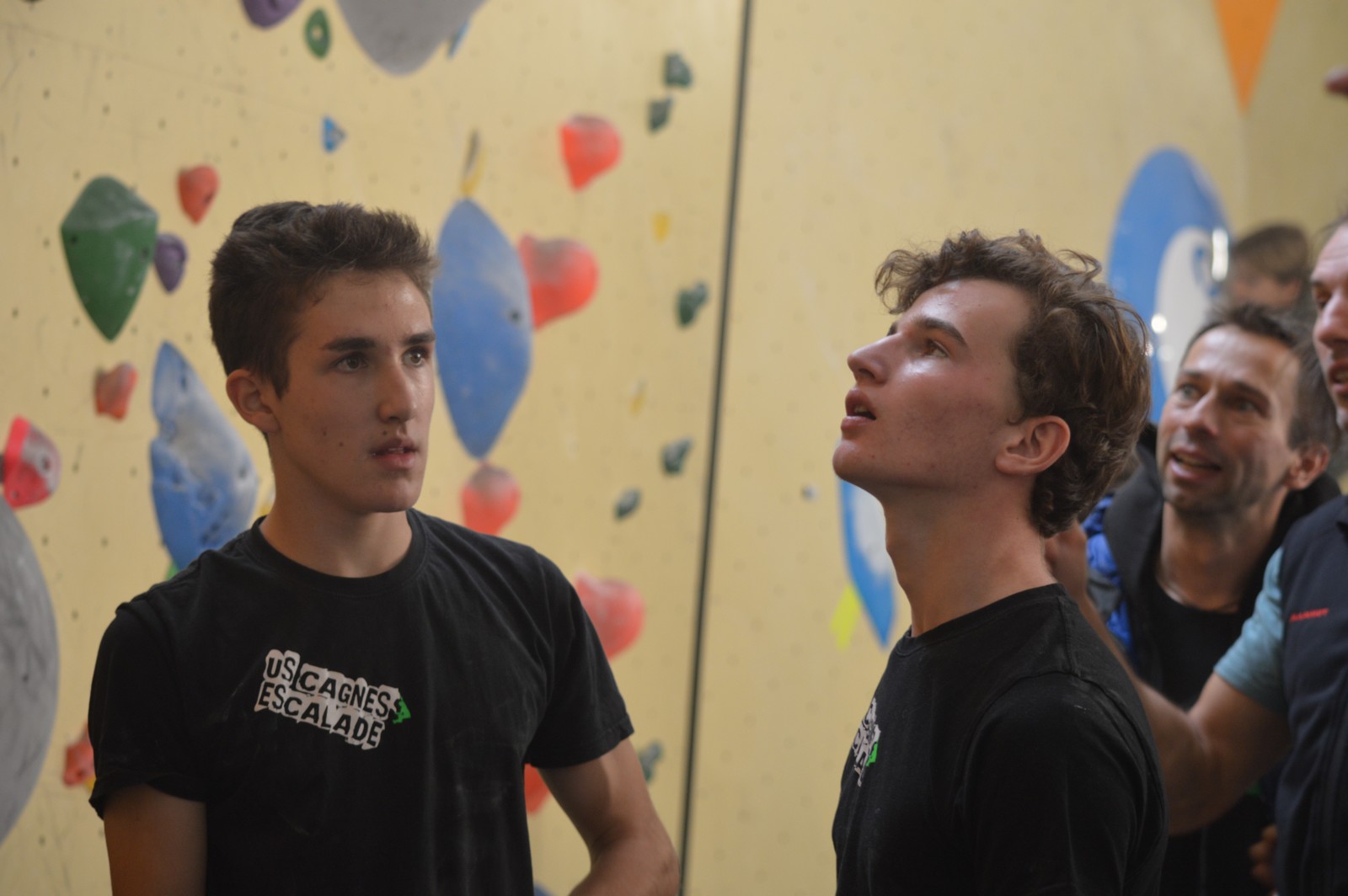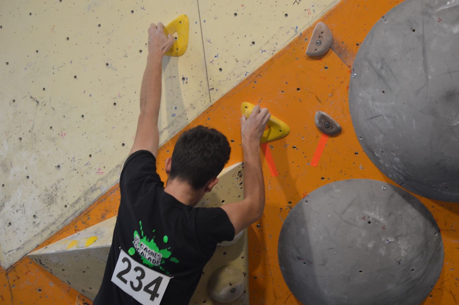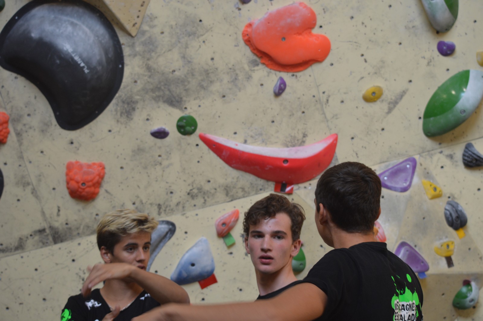 La finale est serrée pour les juniors garçons. Les trois premiers réalisent 2 blocs. Ils se départagent aux nombres de