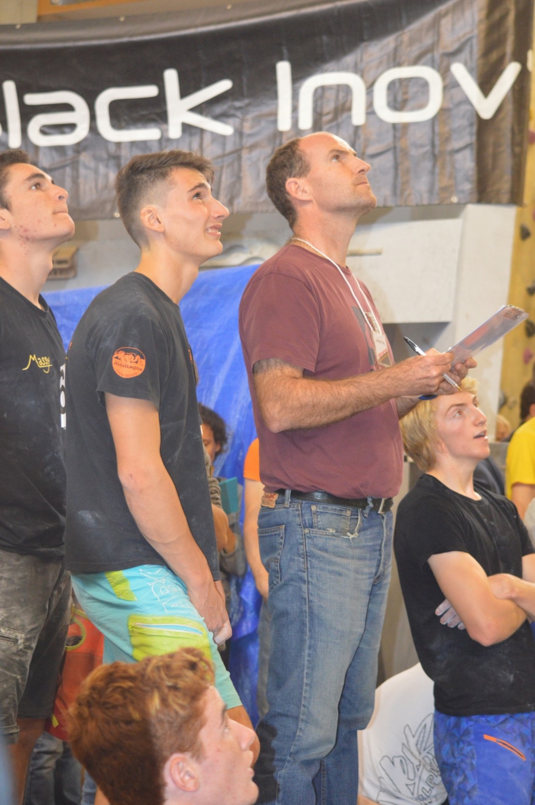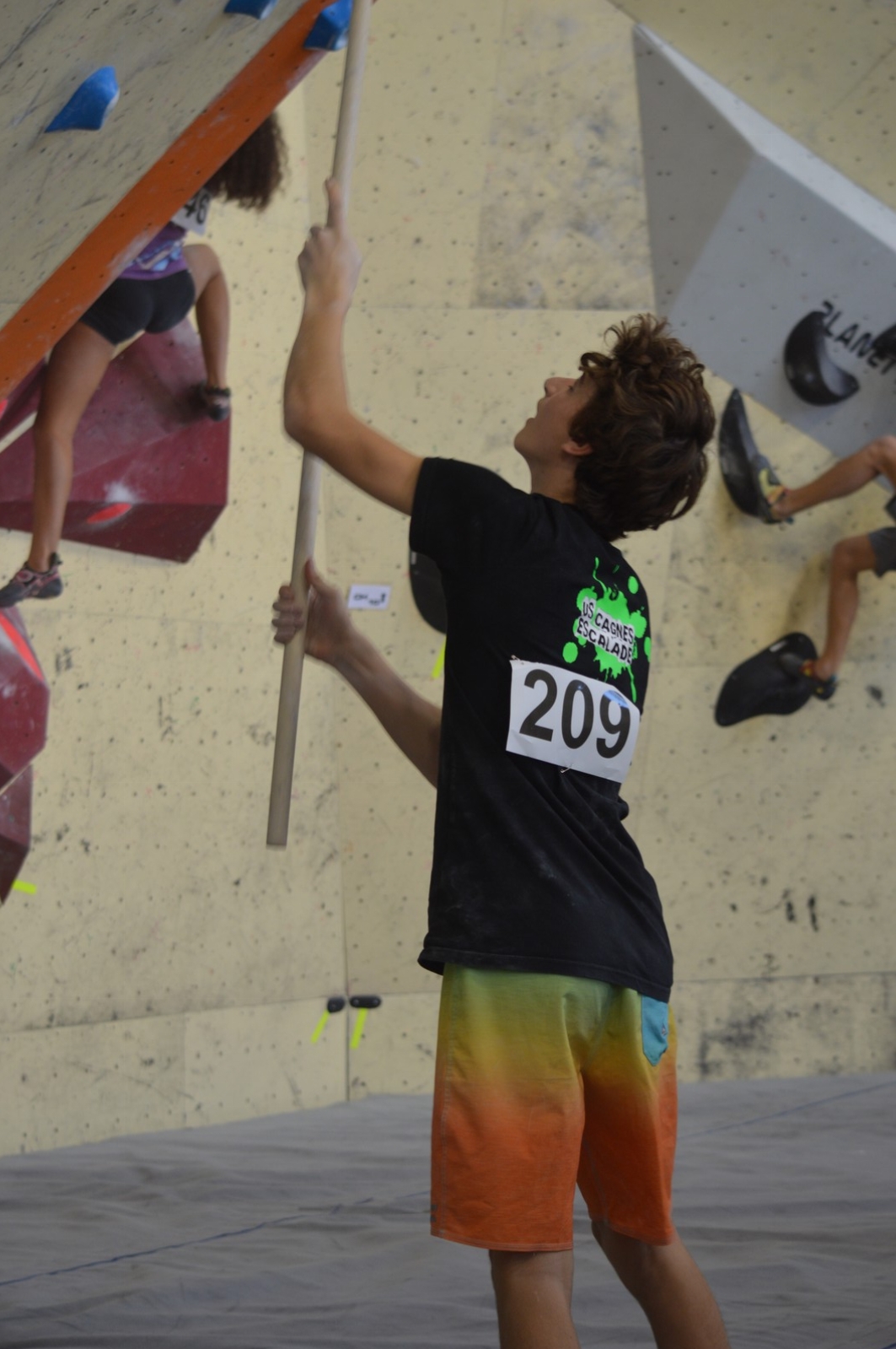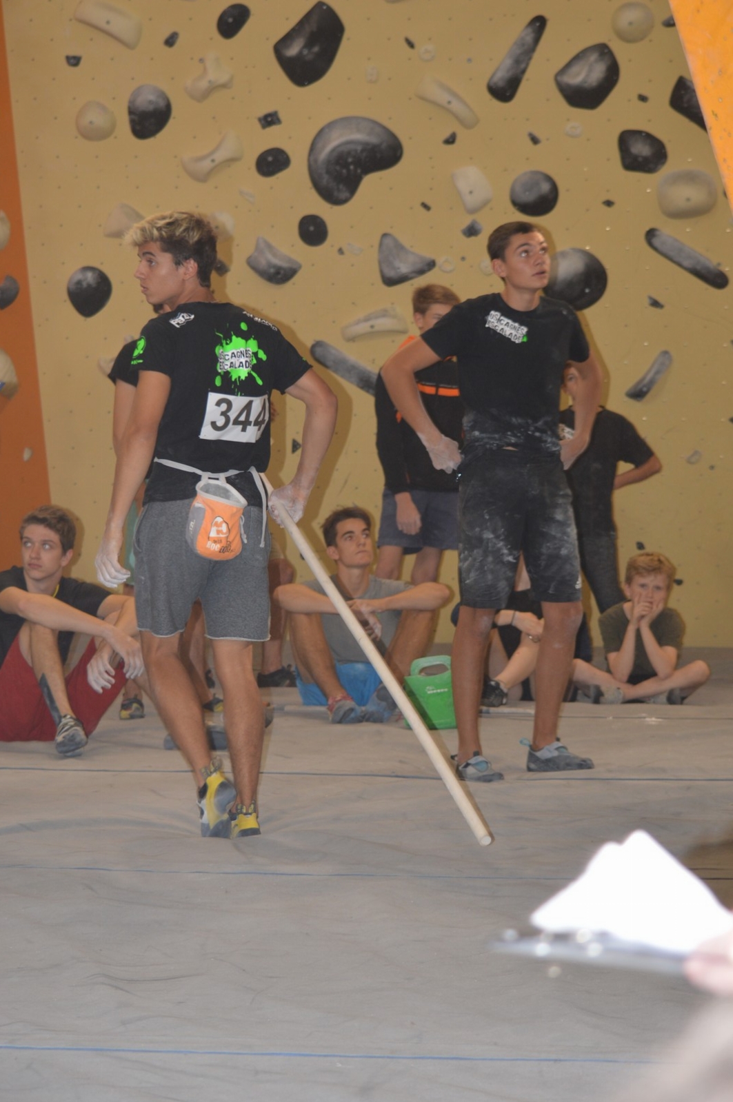 La finale est serrée pour les juniors garçons. Les trois premiers réalisent 2 blocs. Ils se départagent aux nombres de