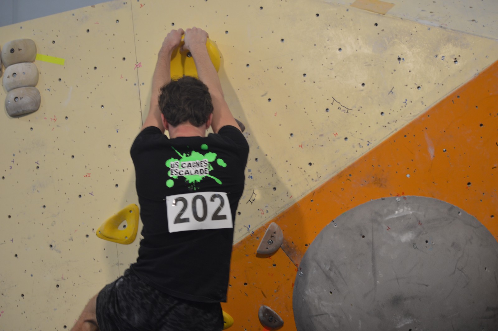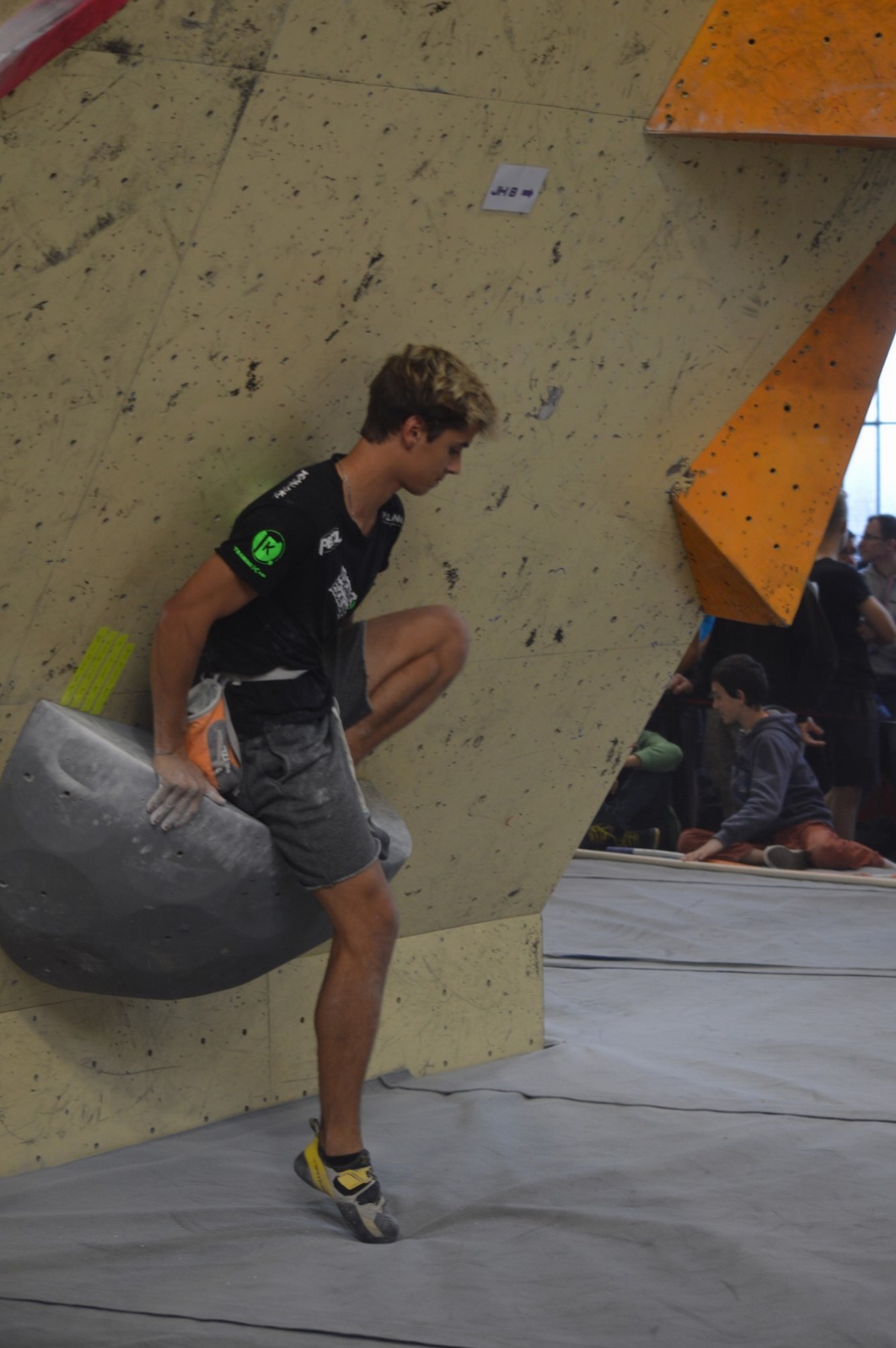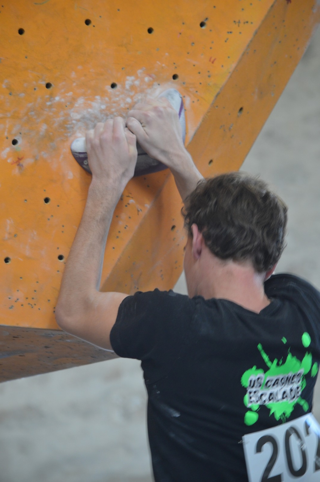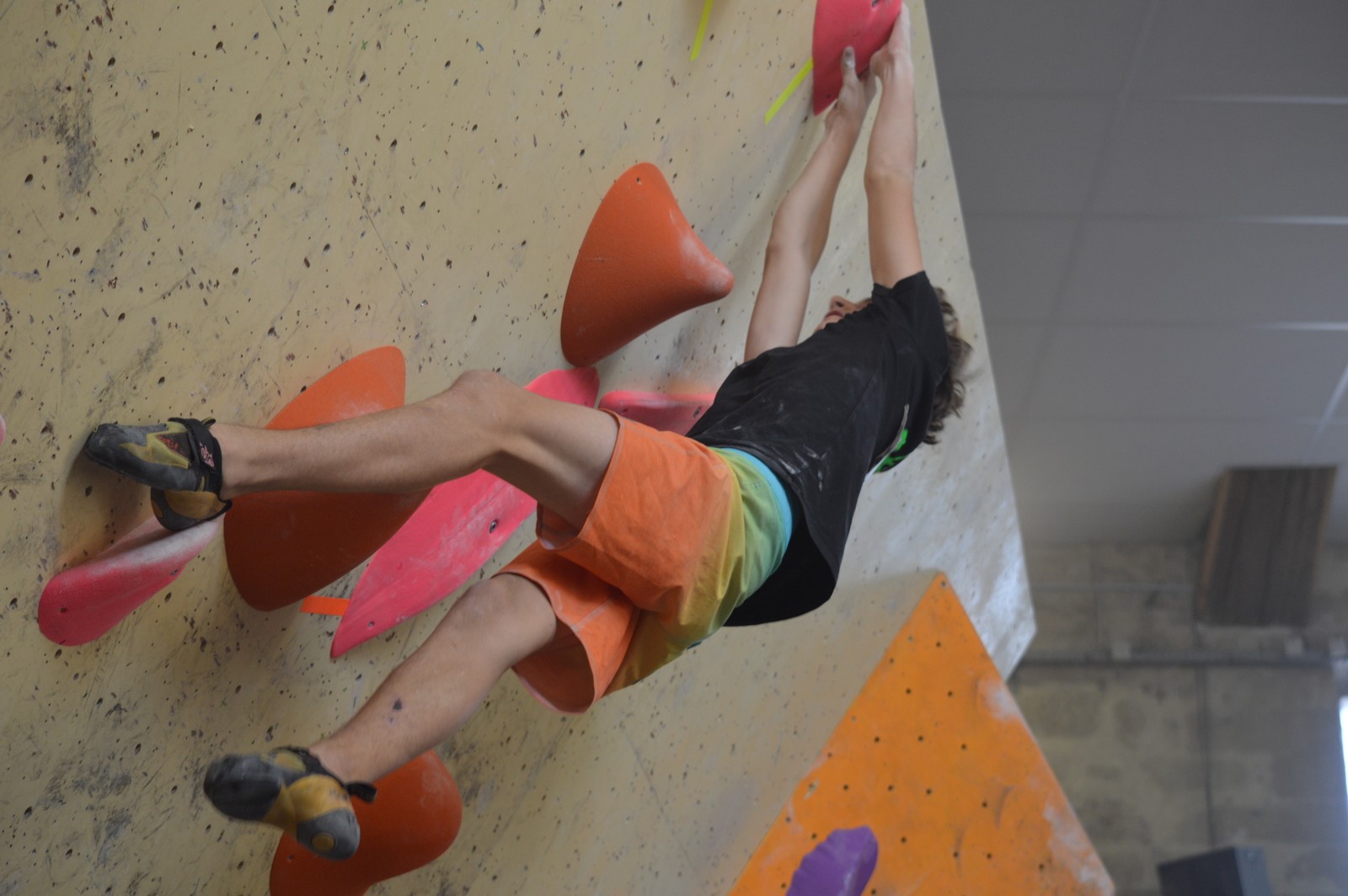 Ce sera beaucoup plus dur pour les cadets garçons qui se frottent à des 2èmes années très musclés, ils sont concentrés et appliqués mais ça ne suffit pas. Seul Nicolas arrivera à tirer son épingle du jeu en cochant un 6ème bloc dans les 5 dernières minutes. Il termine ainsi à la 34ème place. Mathias se classe 39ème et Lenny 44ème.